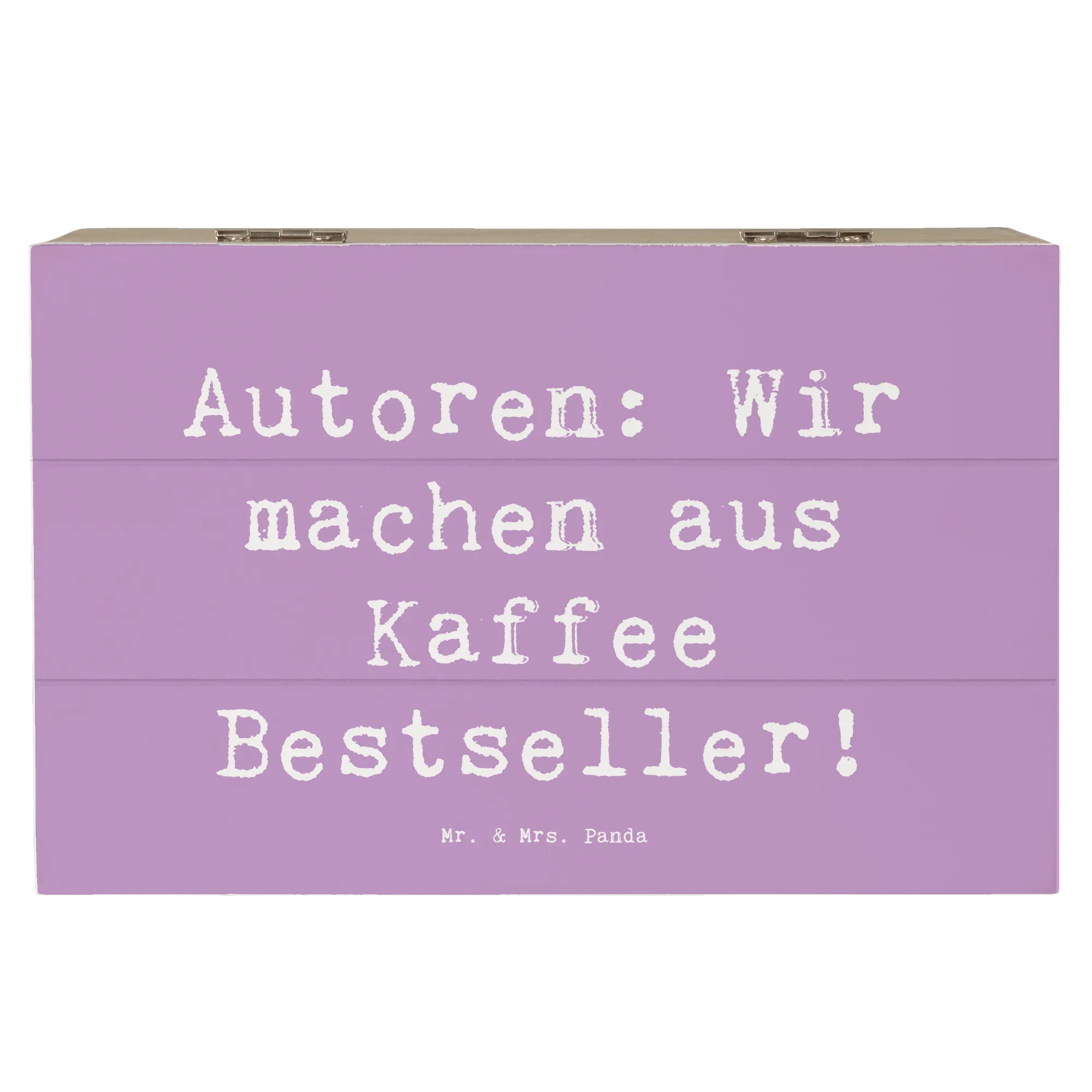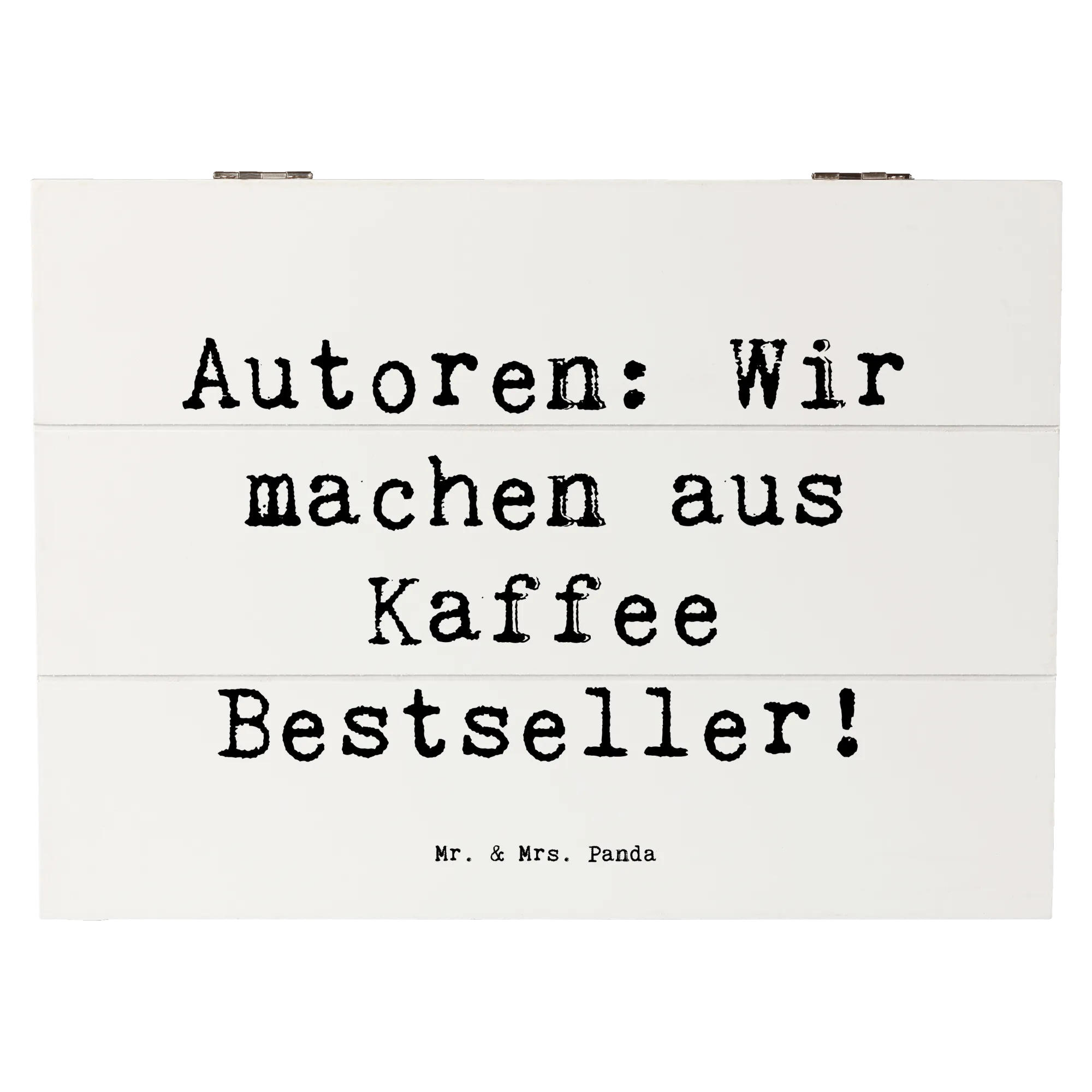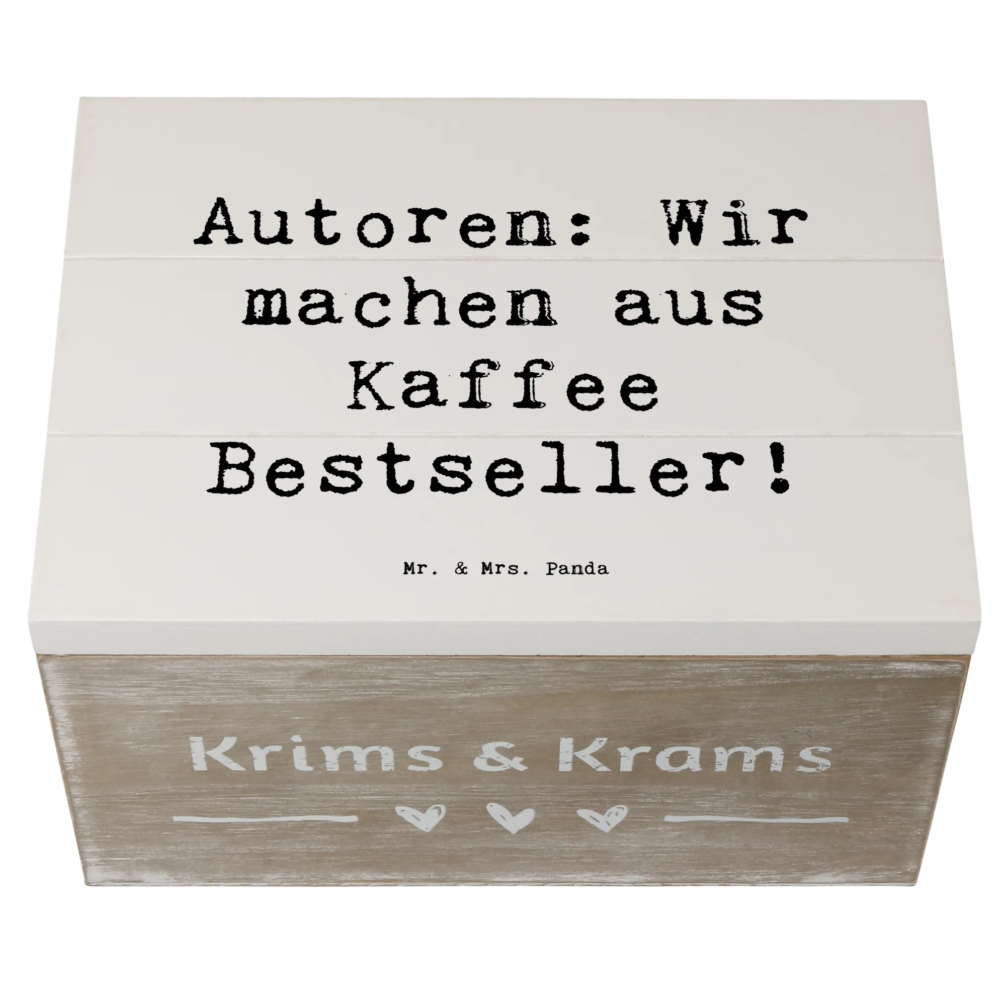 Du suchst nach dem perfekten Geschenk für eine Autorin oder einen Buchliebhaber? Dann ist die Holzkiste "Autorin" von Mr. & Mrs. Panda genau das richtige für dich! Diese wunderschöne Aufbewahrungsbox ist nicht nur ein praktischer Ort, um all die kostbaren Erinnerungen, Notizen oder kleine Schätze zu verstauen, sondern auch eine liebevoll gestaltete Erinnerungskiste, die das Herz jedes kreativen Kopfes höher schlagen lässt. Mit dem ikonischen Spruch "Autoren: Wir machen aus Kaffee Bestseller!" wird sie zum idealen Begleiter für jeden Schreibprozess.