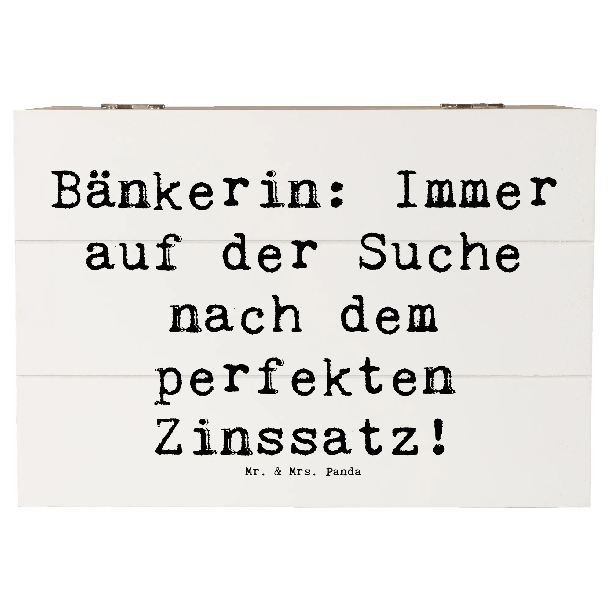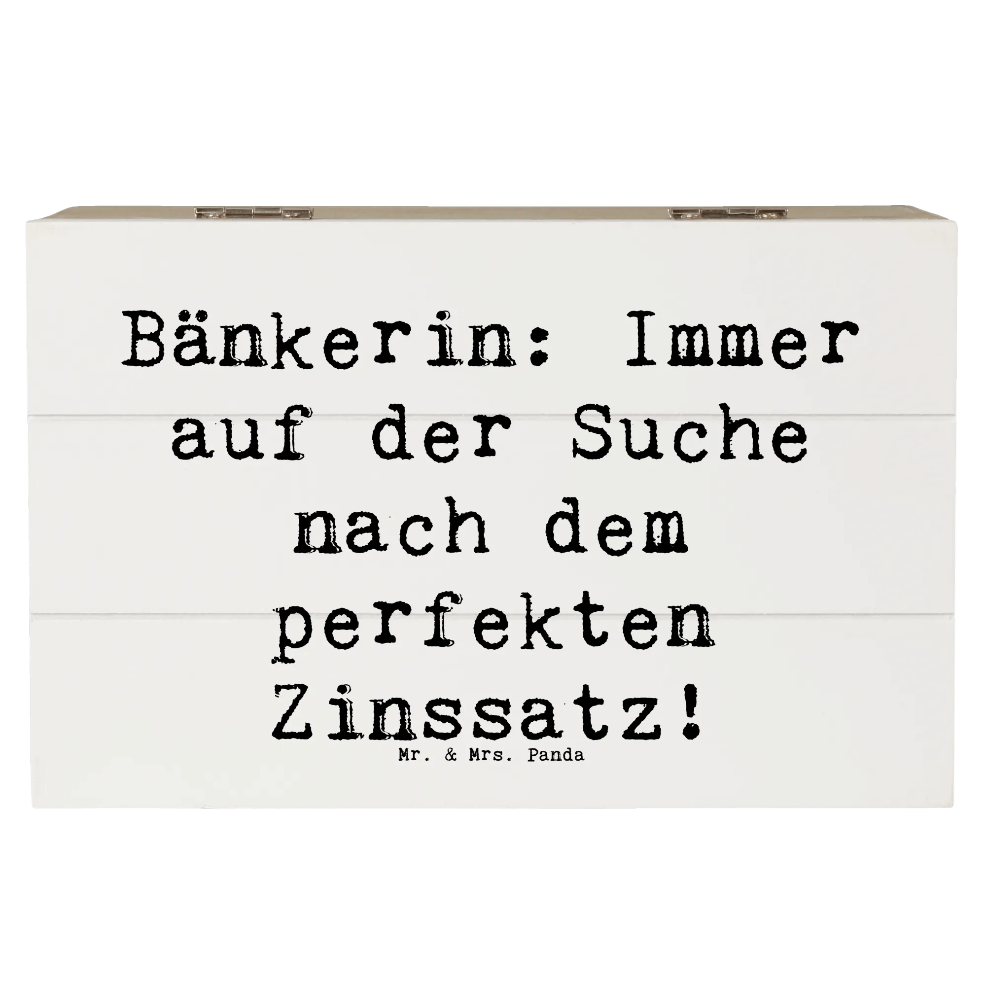 Holzkiste Spruch Bänkerin Zinssatz - 22 x 15 cm - Weiß