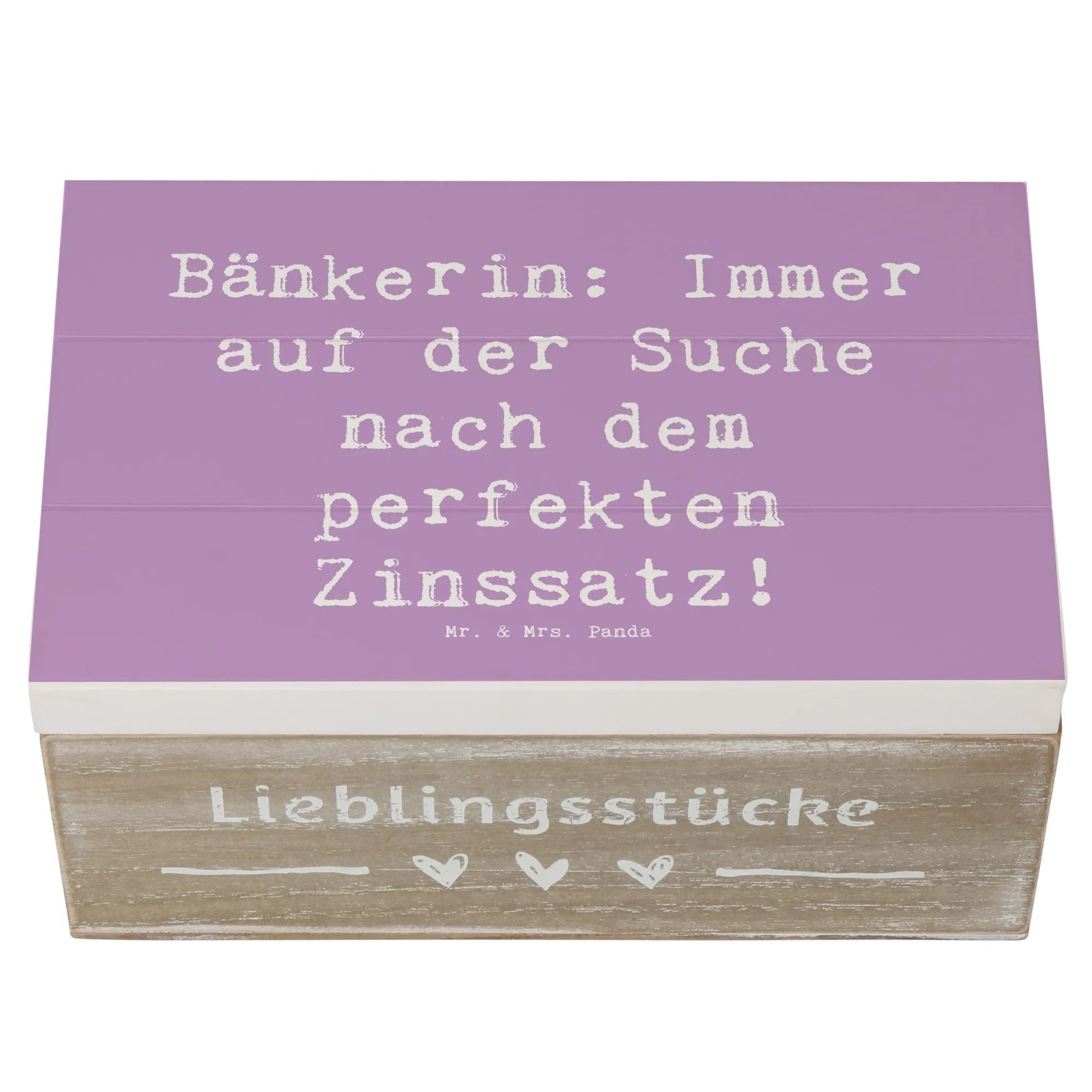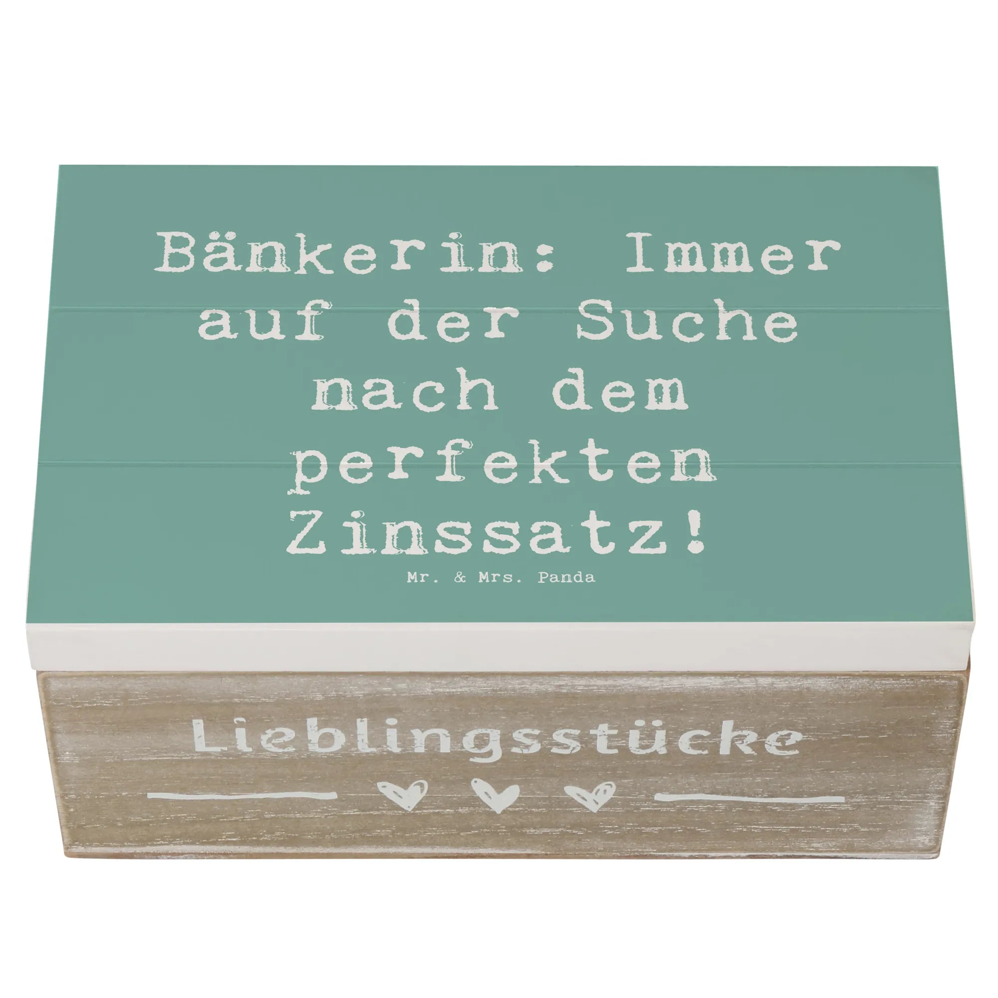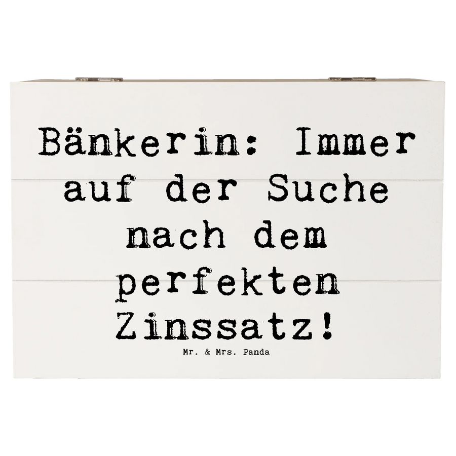 Die wunderschöne Holzkiste "Bänkerin" von Mr. & Mrs. Panda ist das perfekte Geschenk für alle, die sich leidenschaftlich mit ihrem Beruf auseinandersetzen. Ob zum Geburtstag, zu einem Berufsabschluss oder einfach nur, um jemandem eine Freude zu machen – diese Erinnerungskiste, aus robuster Premium Hartfaser gefertigt, bringt nicht nur praktische Eigenschaften mit sich, sondern überzeugt auch durch ihr charmantes Design. Mit dem liebevollen Spruch "Bänkerin: Immer auf der Suche nach dem perfekten Zinssatz!" ist diese Kiste eine stimmungsvolle Art, das eigene Berufsleben zu zelebrieren und Erinnerungen zu bewahren.