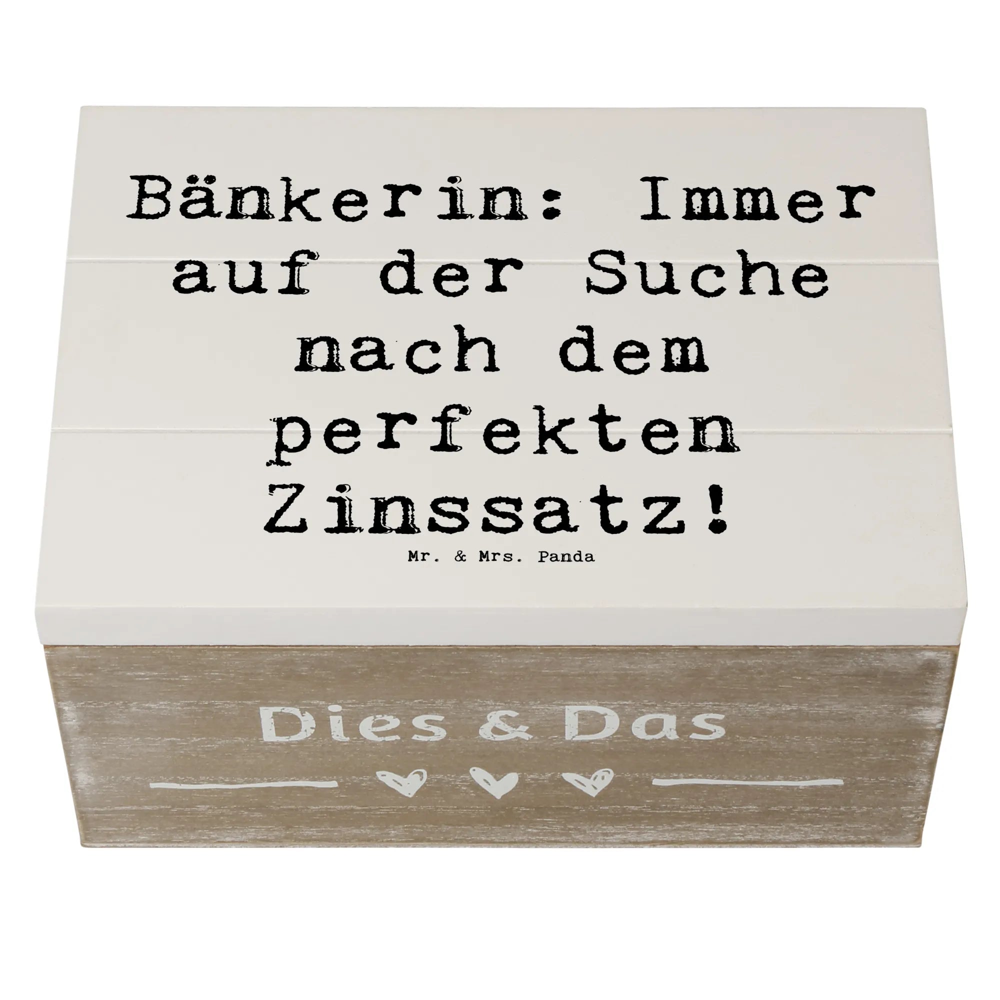 Mit dem witzigen Spruch "Bänkerin: Immer auf der Suche nach dem perfekten Zinssatz!" bringt sie jedem ein Lächeln ins Gesicht. Die Kiste ist aus robuster Premium Hartfaser gefertigt und bietet dir die Möglichkeit, deine wertvollen Schätze sicher aufzubewahren.