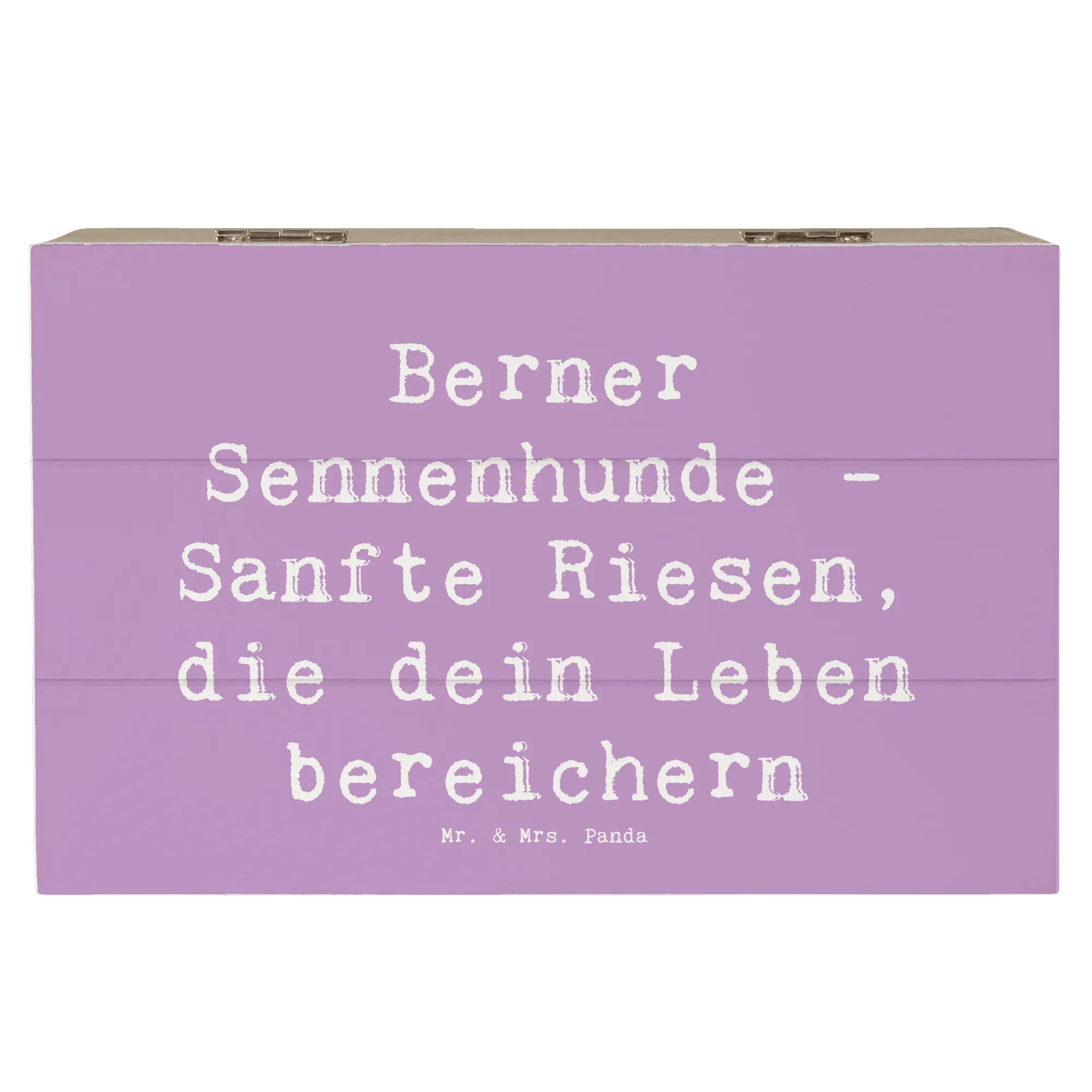 Entdecke die wundervolle Holzkiste von Mr. & Mrs. Panda mit dem bezaubernden Motiv des Berner Sennenhundes!
