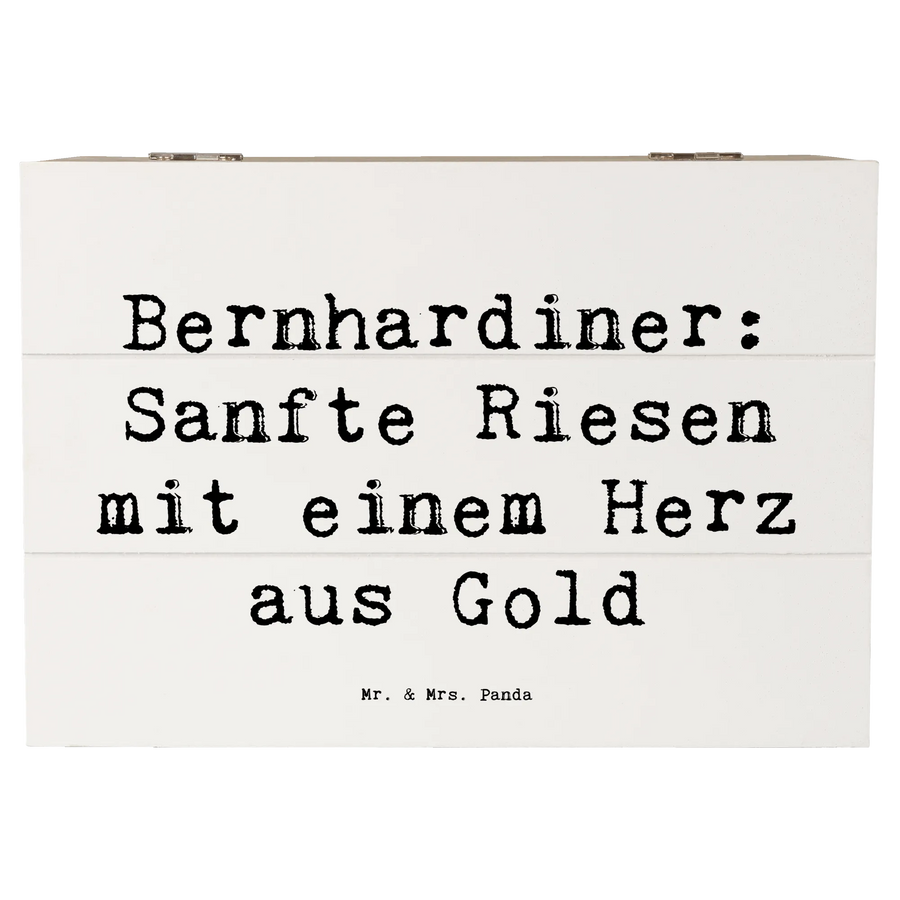 Mit der zauberhaften Holzkiste von Mr. & Mrs. Panda mit dem speziellen Motiv "Bernhardiner: Sanfte Riesen mit einem Herz aus Gold" schaffst Du ein ganz besonderes Erinnerungsstück! Diese wunderschöne Kiste ist nicht nur praktisch, sondern auch ein toller Hingucker in jedem Zuhause. Ob als Aufbewahrungsbox für wertvolle Schätze, als Geschenkbox für besondere Anlässe oder einfach als liebevolles Deko-Element – diese Holzkiste ist vielseitig einsetzbar und bringt Freude in jeden Raum.