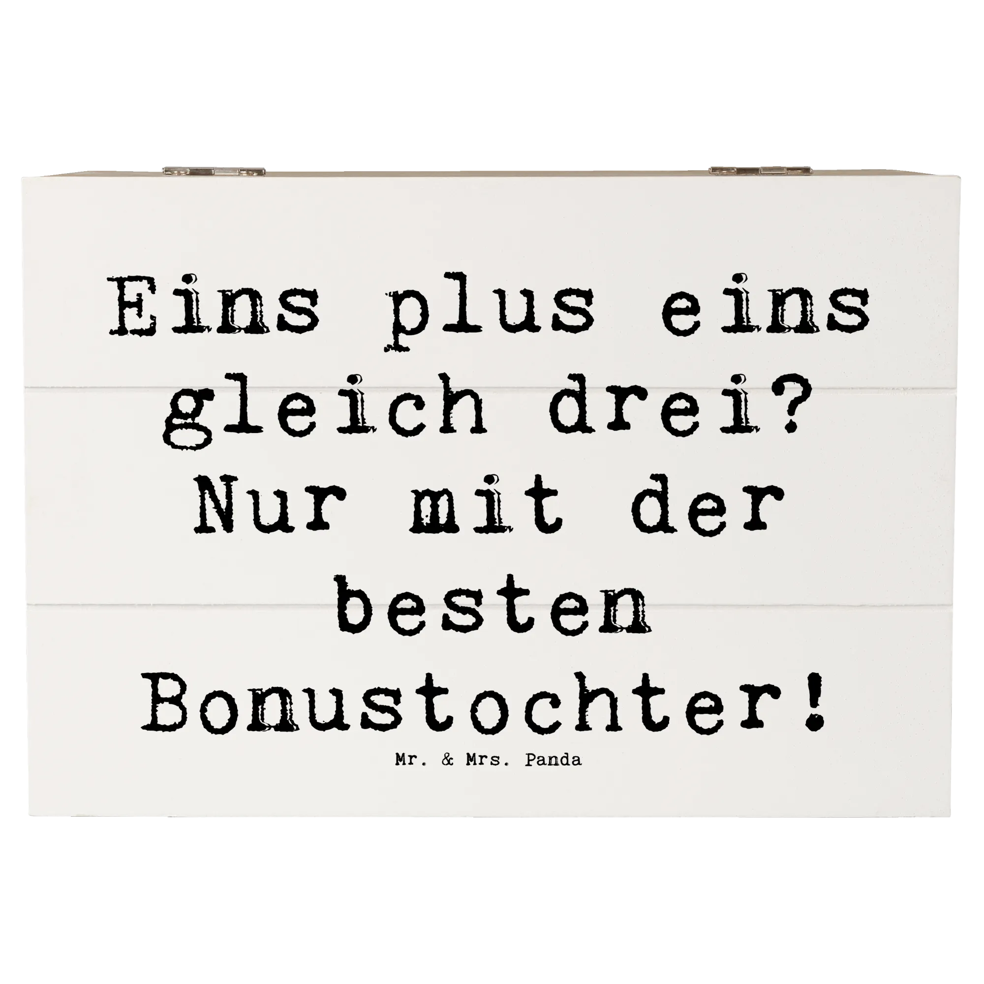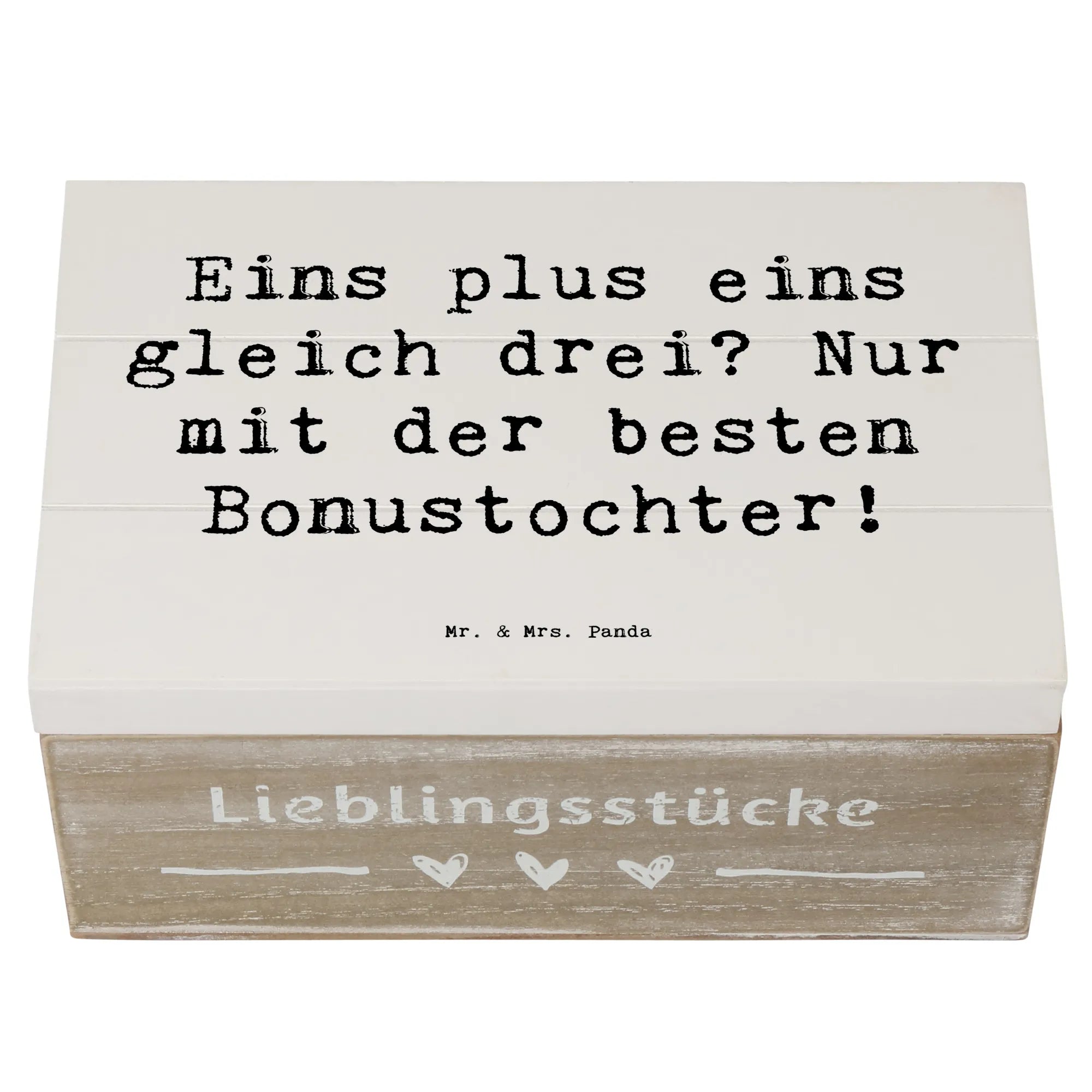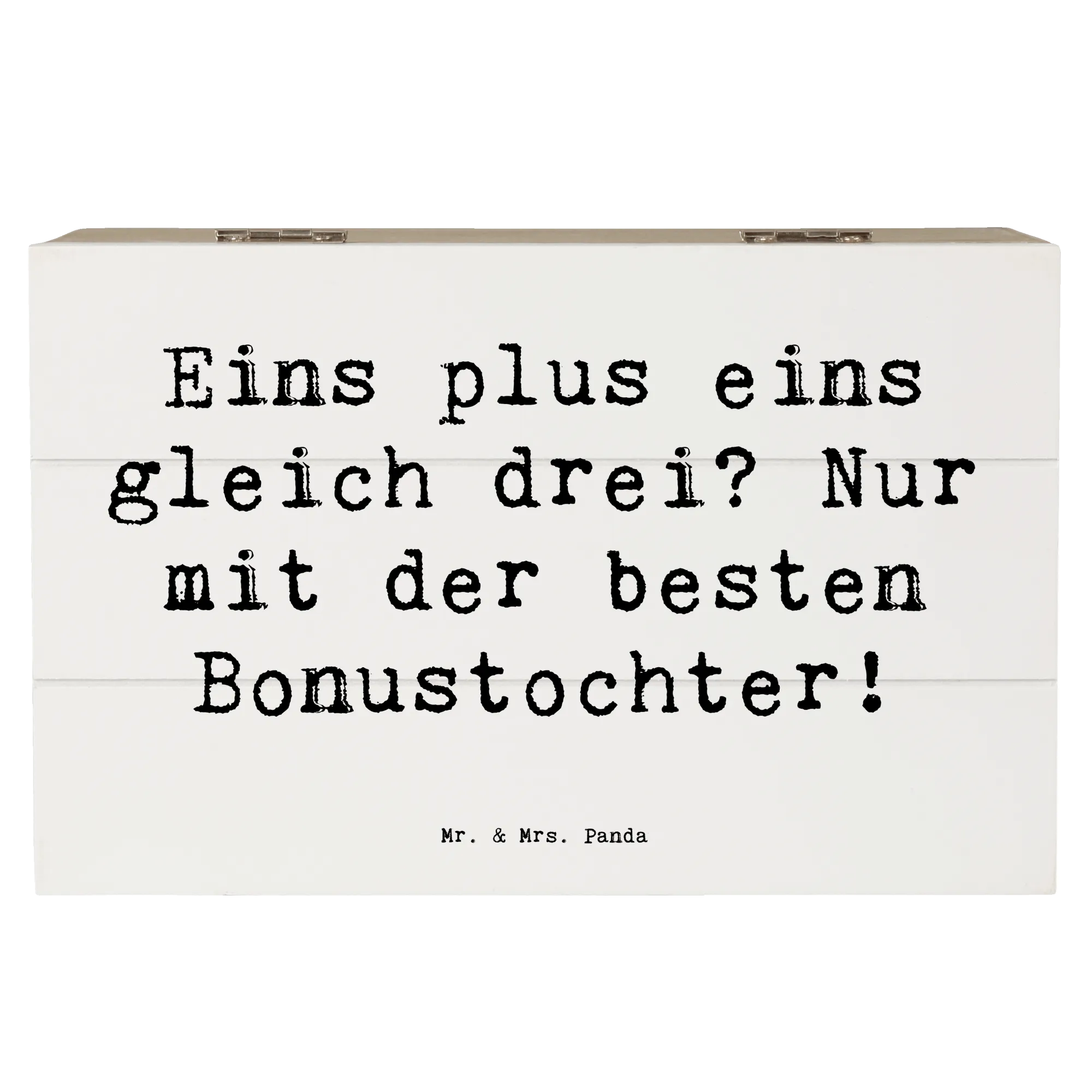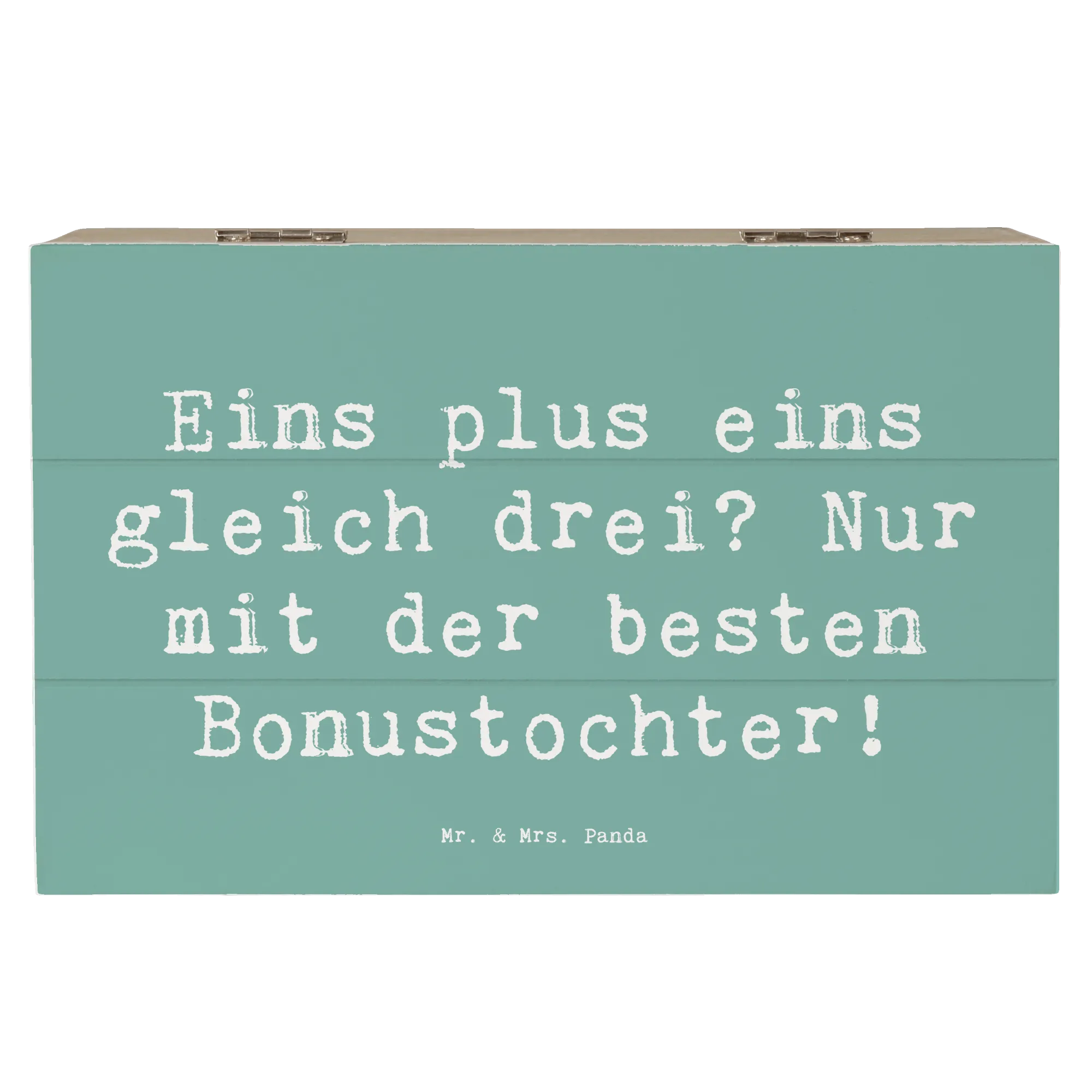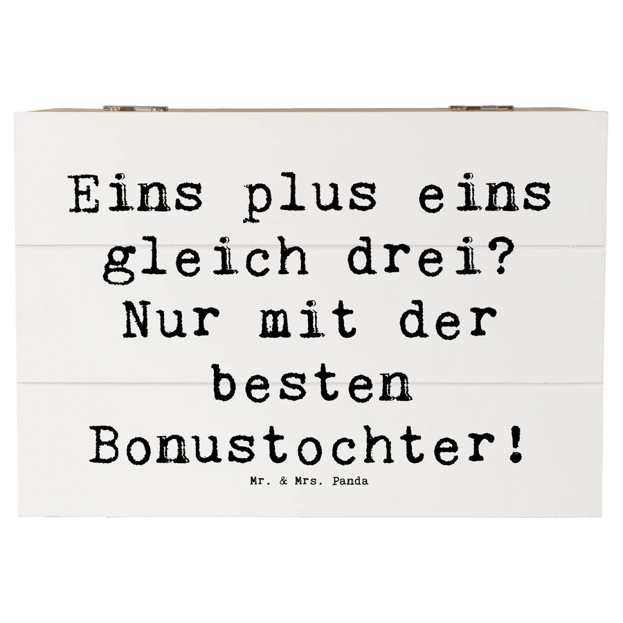 Der liebevolle Spruch "Eins plus eins gleich drei? Nur mit der besten Bonustochter!" bringt die Verbindung zwischen Stiefeltern und Stieftöchtern wunderschön zum Ausdruck. Diese charmante Botschaft feiert die besondere Rolle der Bonustochter und zeigt, wie sehr sie im Familienleben geschätzt wird. Ob als Geschenk zum Geburtstag, zum Muttertag oder einfach als liebevolle Geste zwischendurch, diese Kiste ist ein echter Hingucker in jedem Zuhause.
