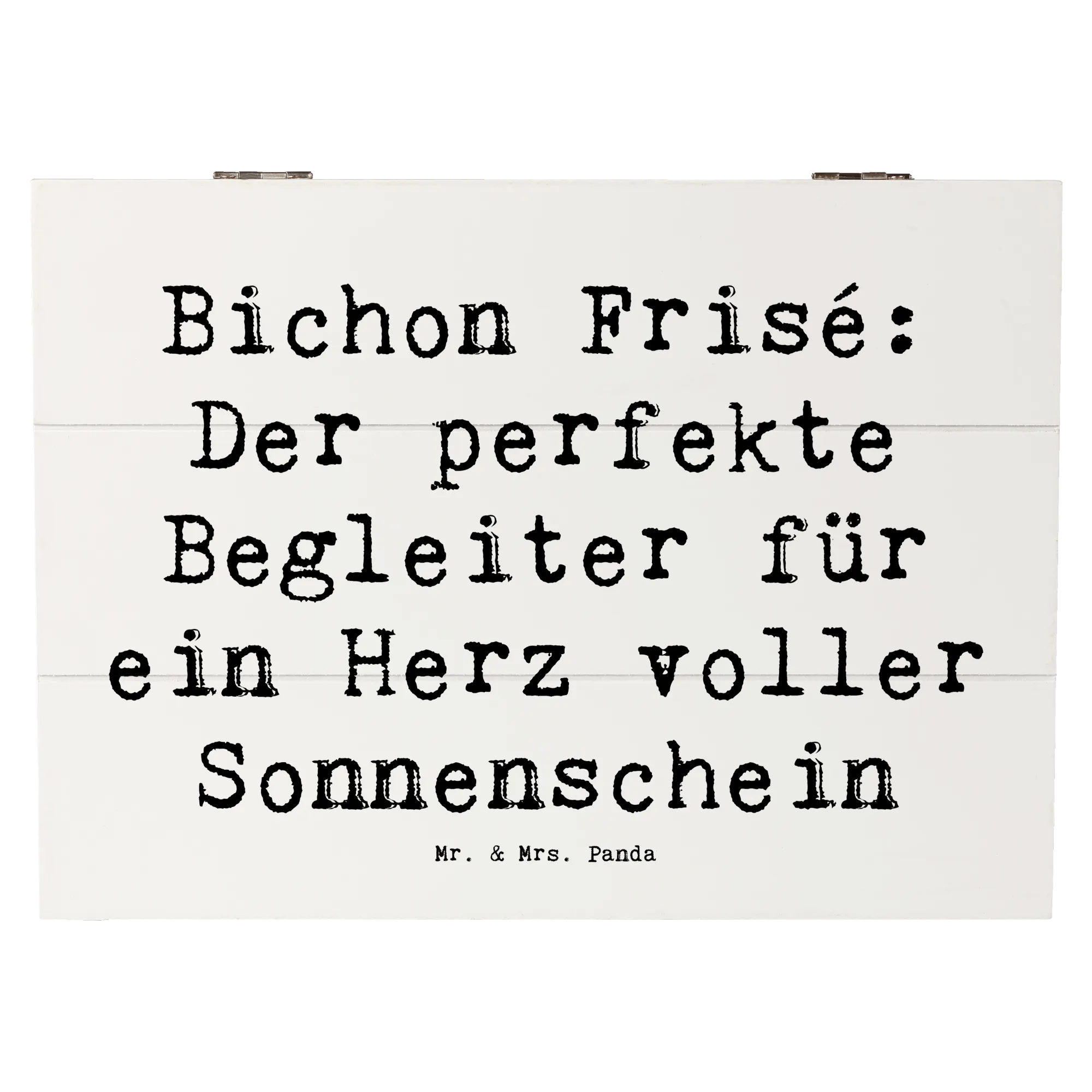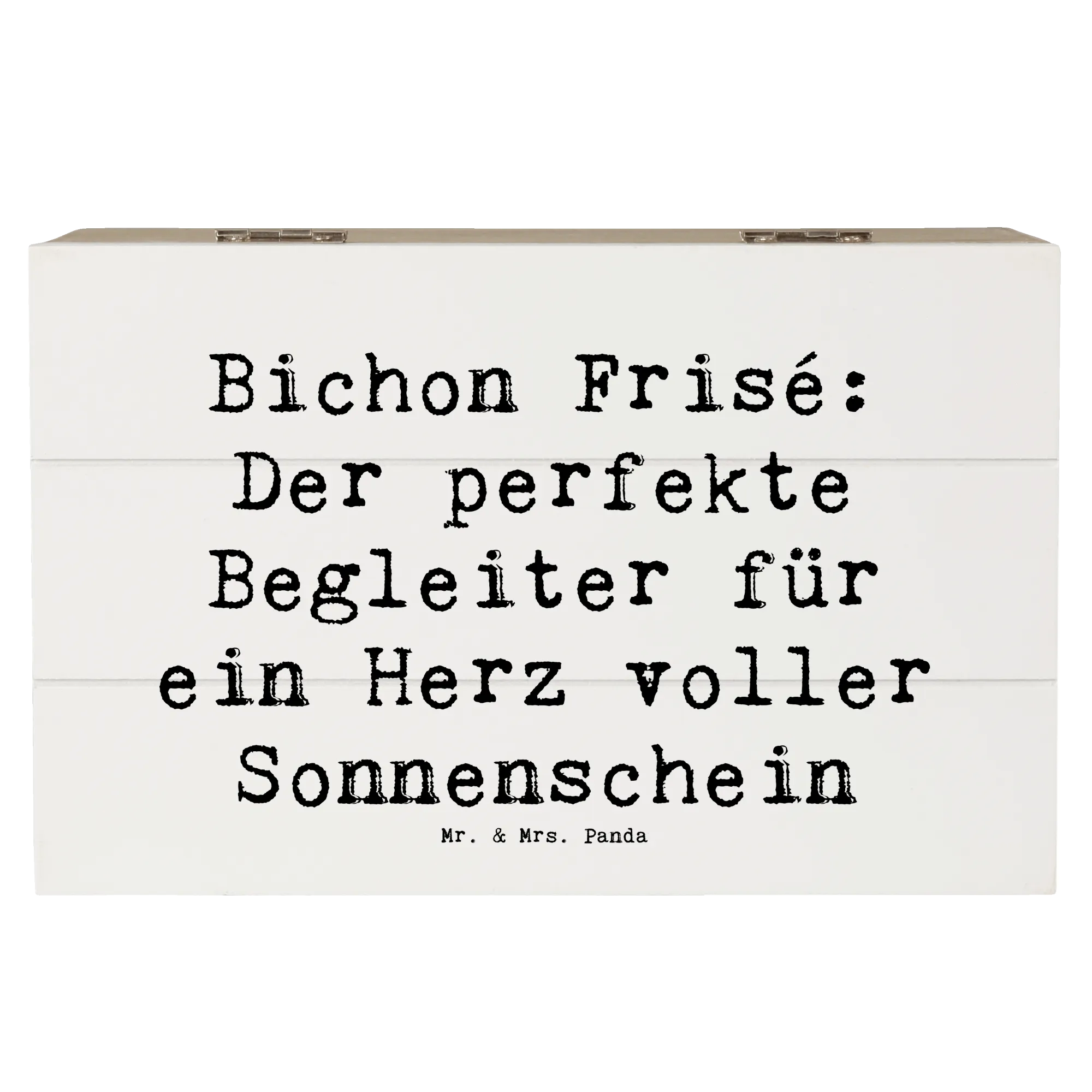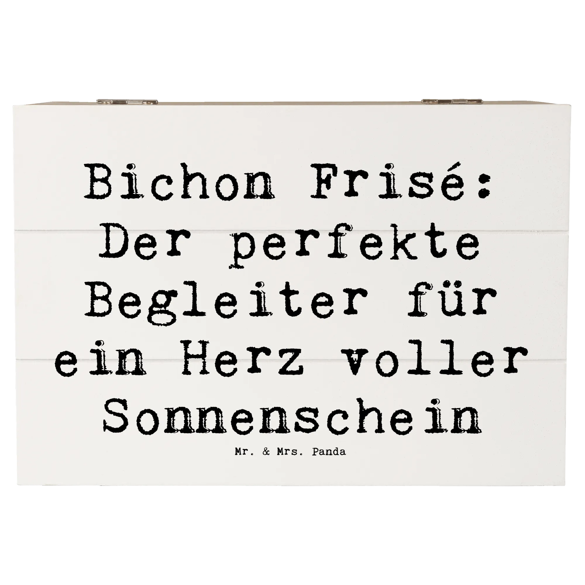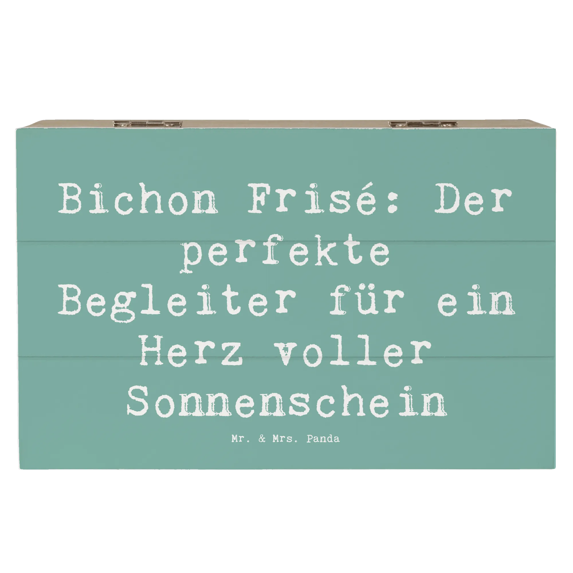 Jeder Hundefan wird die Botschaft auf der Kiste lieben: "Bichon Frisé: Der perfekte Begleiter für ein Herz voller Sonnenschein." Dieser liebevolle Spruch drückt die besondere Verbindung zu diesen fröhlichen Vierbeinern aus, die uns jeden Tag ein Lächeln ins Gesicht zaubern.