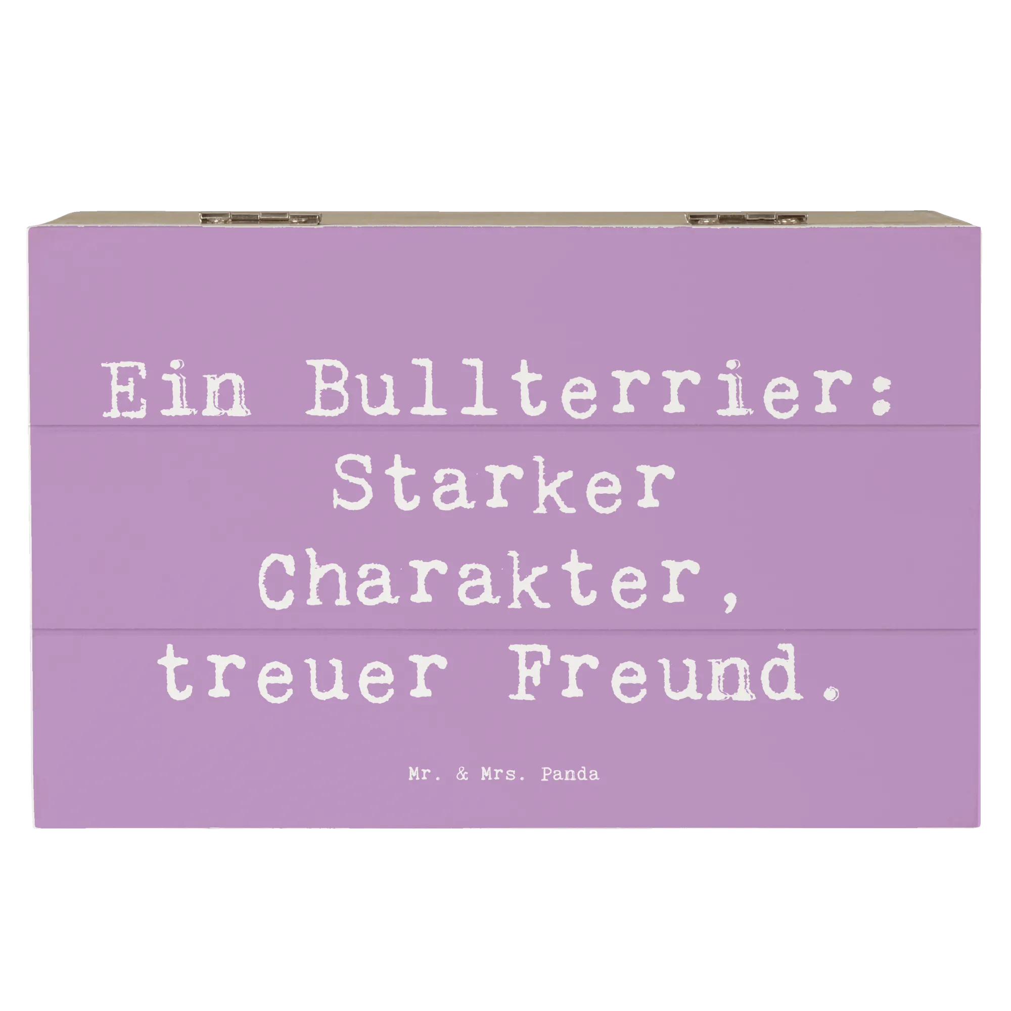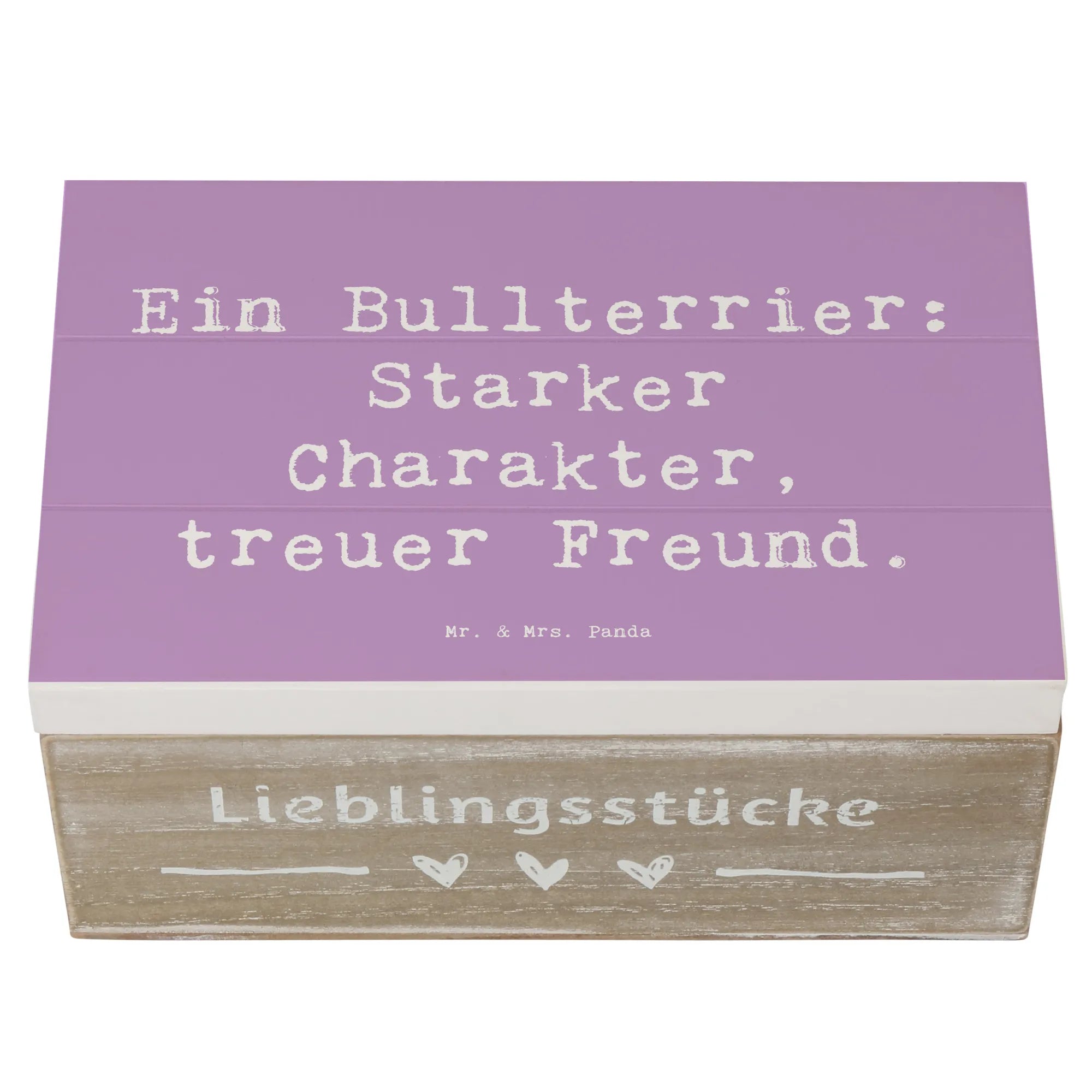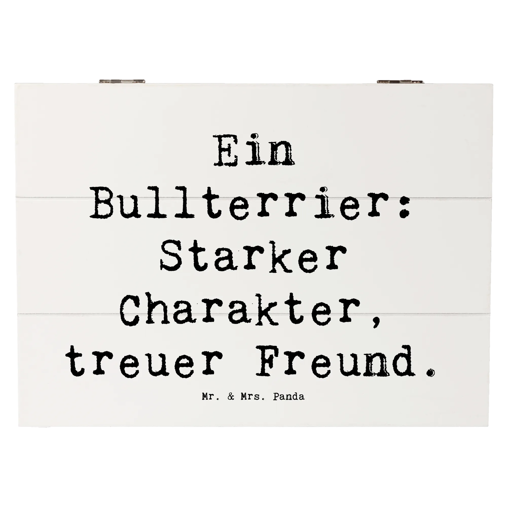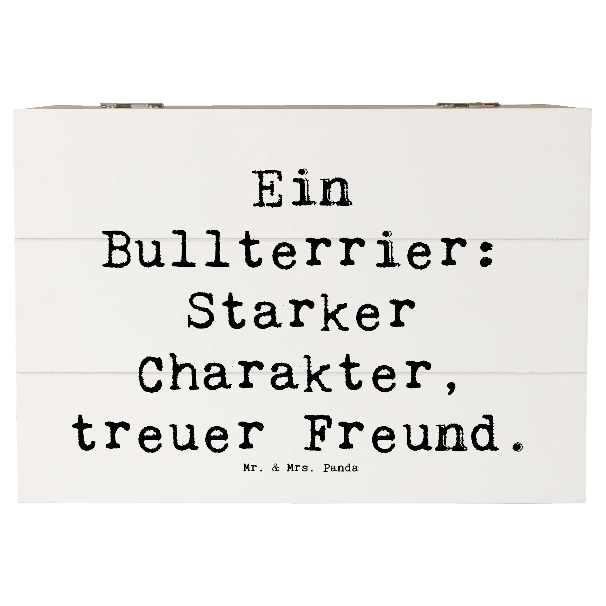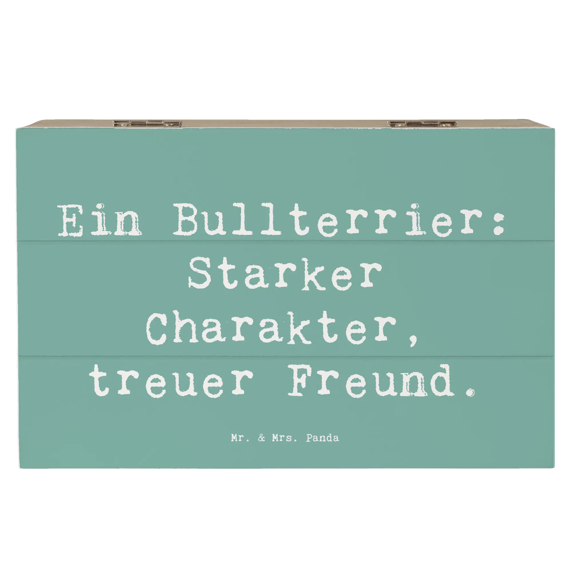 Das Motiv eines Bullterriers, kombiniert mit dem Spruch 'Ein Bullterrier: Starker Charakter, treuer Freund.', macht diese Kiste zu einem ganz besonderen Geschenk. Die Hunderassen-Kollektion von Mr. & Mrs. Panda ist die ideale Wahl für jeden Hundefan, der nach einer schönen und liebevollen Möglichkeit sucht, seine Erinnerungen oder Sammlungen aufzubewahren. Die Schatulle ist nicht nur ein praktischer Ordnungshüter, sondern auch ein toller Dekorationsgegenstand, der die Liebe zu deinem vierbeinigen Freund zum Ausdruck bringt.