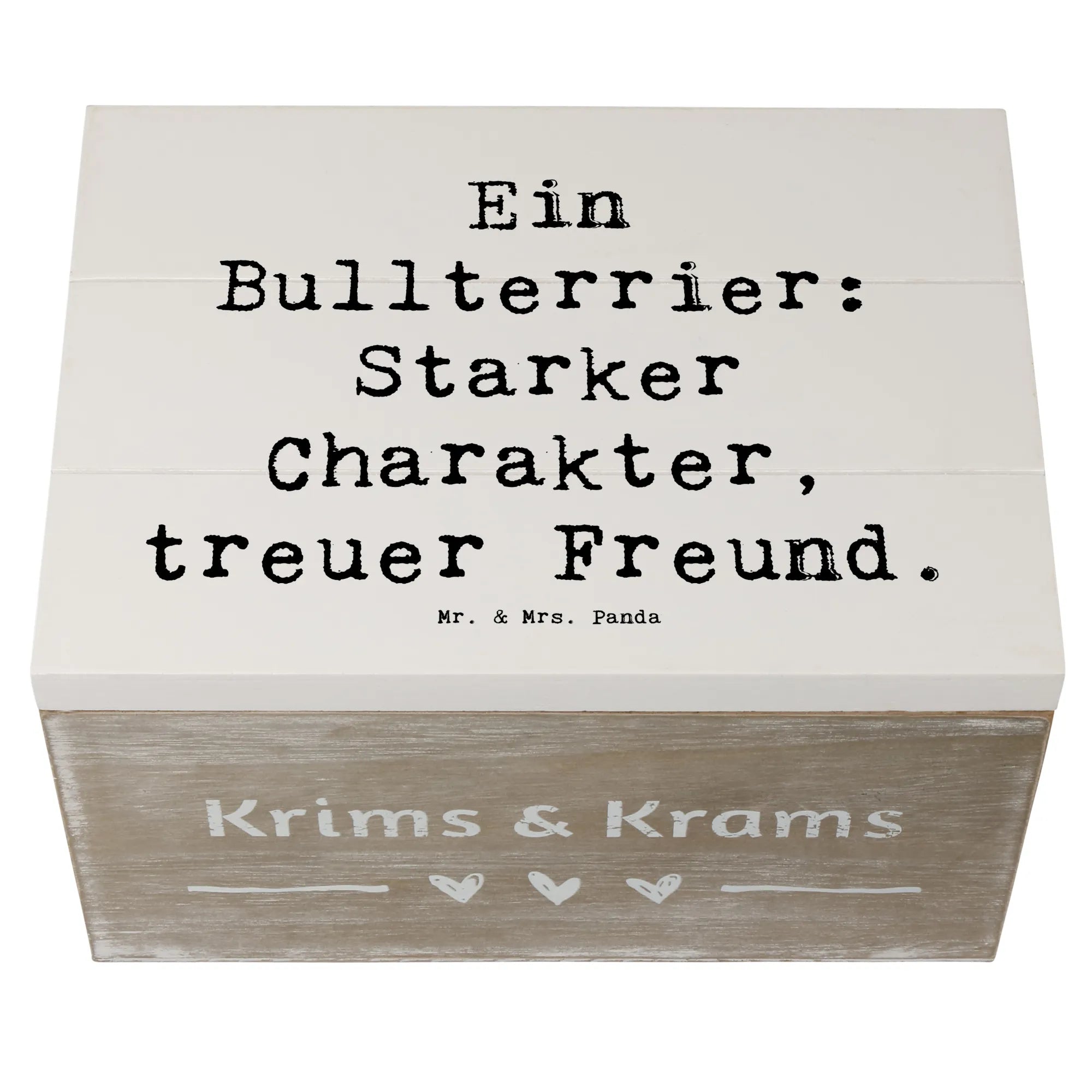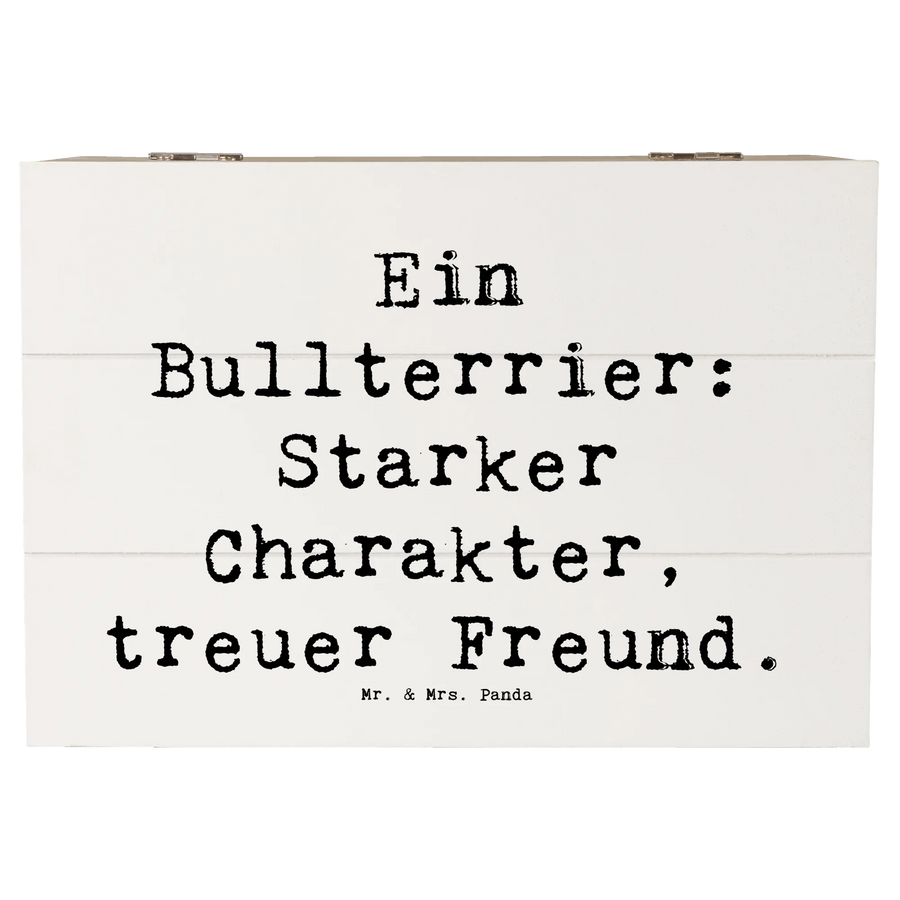 Die wunderschöne Holzkiste von Mr. & Mrs. Panda ist das perfekte Geschenk für alle Hundefans, besonders für Bullterrier-Liebhaber! Sie ist nicht nur eine tolle Aufbewahrungsbox für Erinnerungen, sondern auch ein ganz besonderes Deko-Element. Mit der Aufschrift 'Ein Bullterrier: Starker Charakter, treuer Freund.' wird sie zum idealen Platz für die wichtigsten Schätze Deines Lebens.