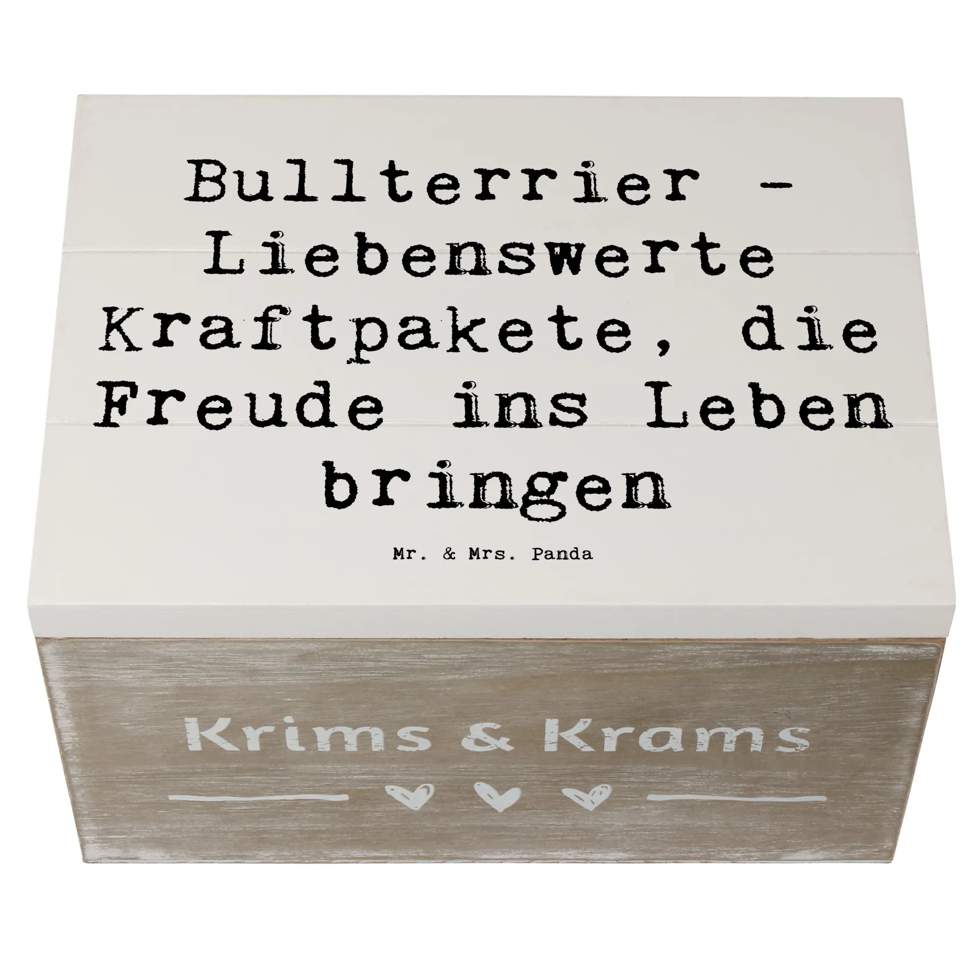 Die liebevolle Holzkiste von Mr. & Mrs. Panda ist das perfekte Geschenk für alle Hundefans, besonders für Liebhaber der Hunderasse Bullterrier! Diese wunderschöne Erinnerungskiste bietet den idealen Platz für wertvolle Schätze, sei es für Fotos, persönliche Andenken oder als Dekokiste für die kleinen Dinge des Lebens.