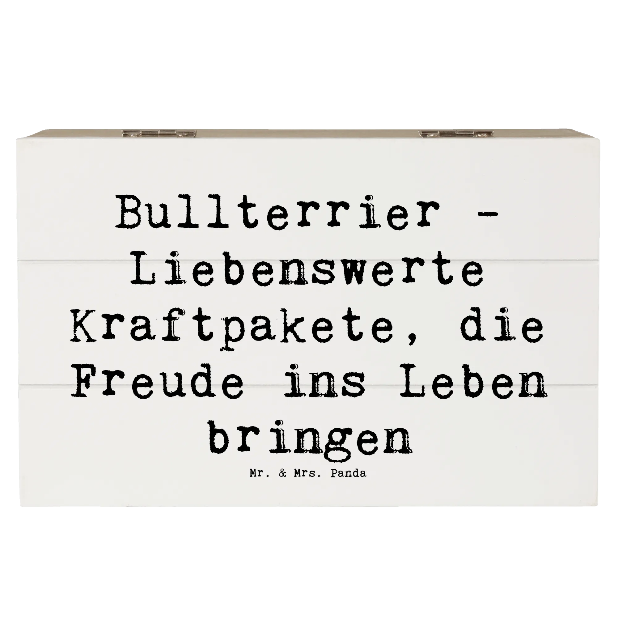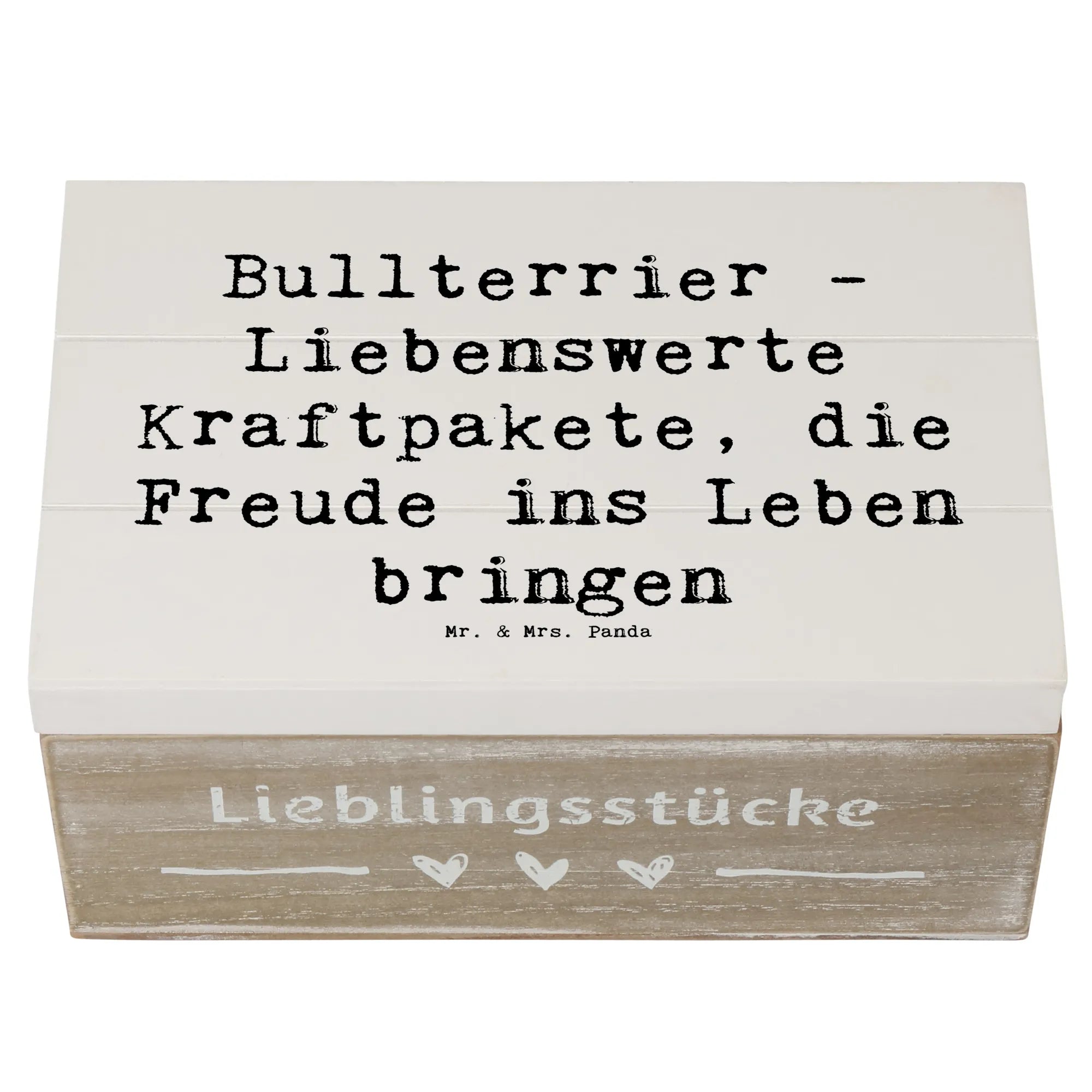 Die wunderschöne Holzkiste von Mr. & Mrs. Panda mit dem Motiv Bullterrier ist das perfekte Geschenk für Hundefans und Tierliebhaber!