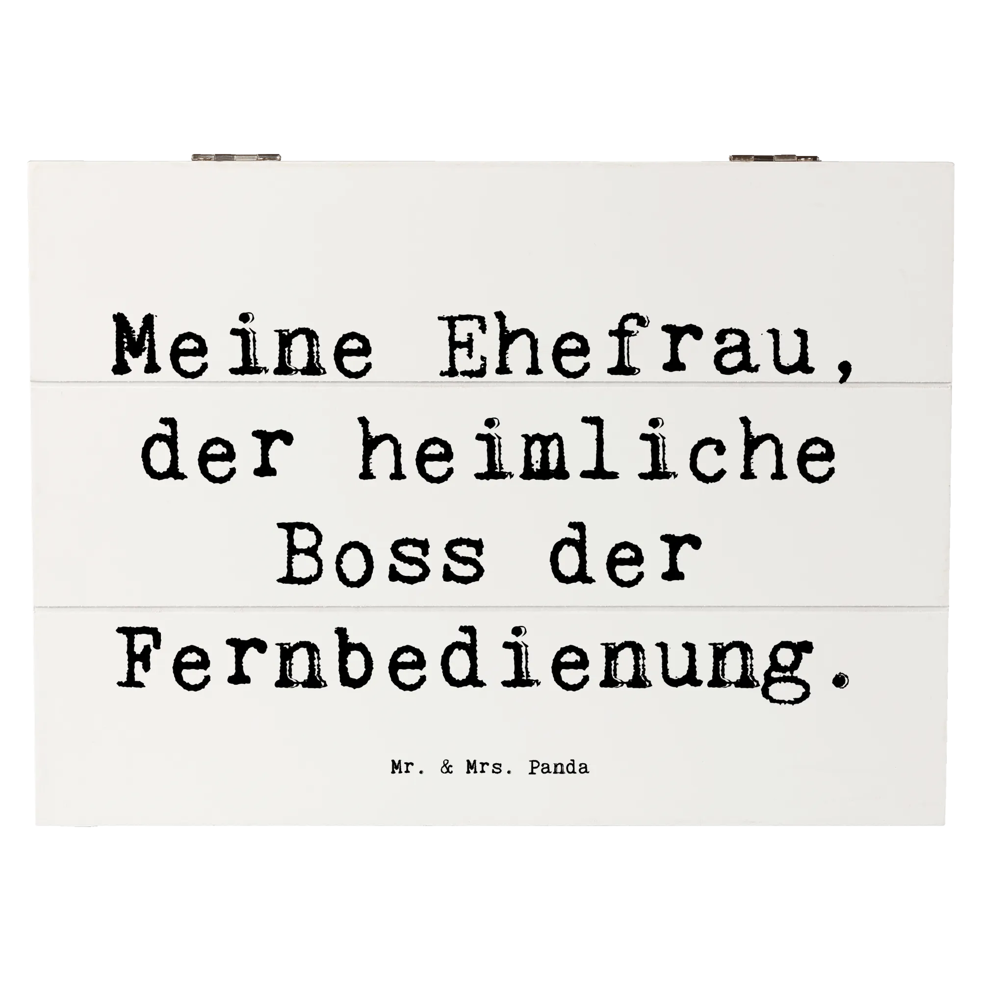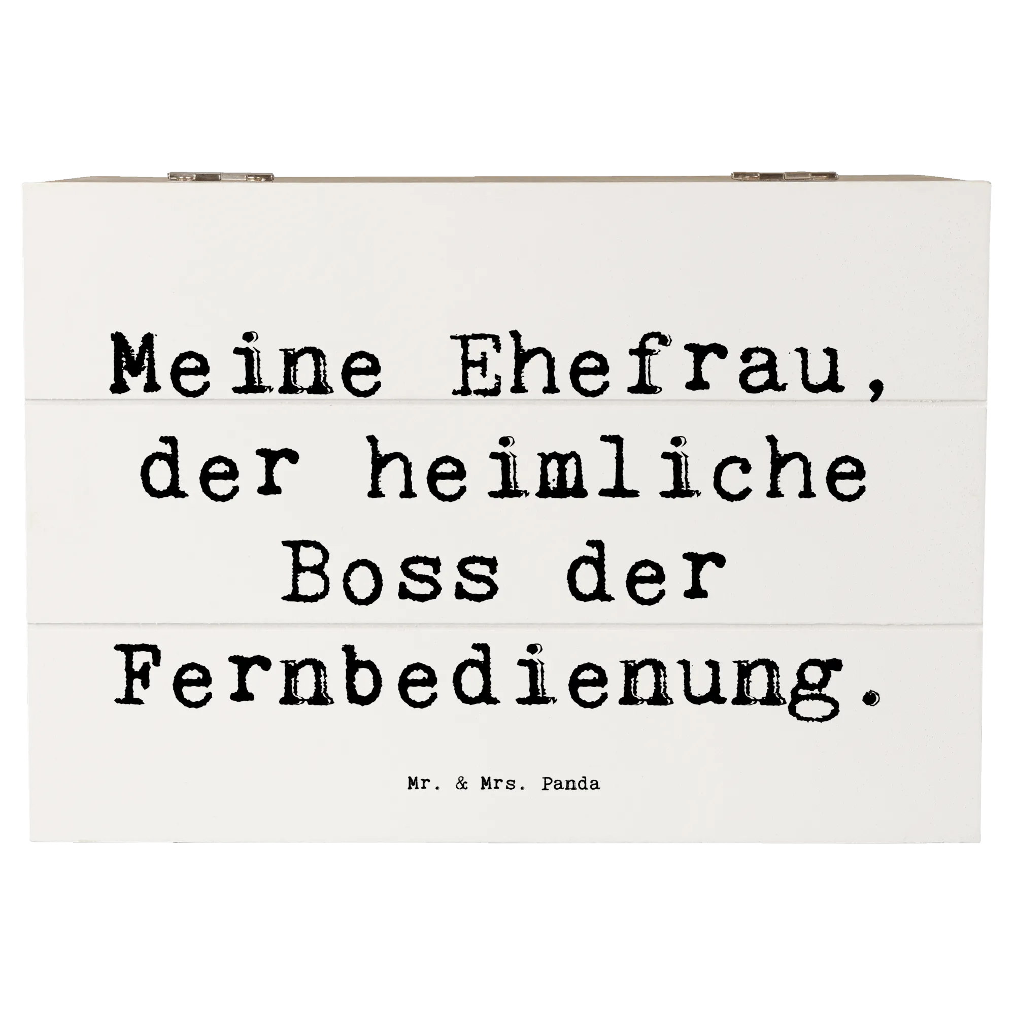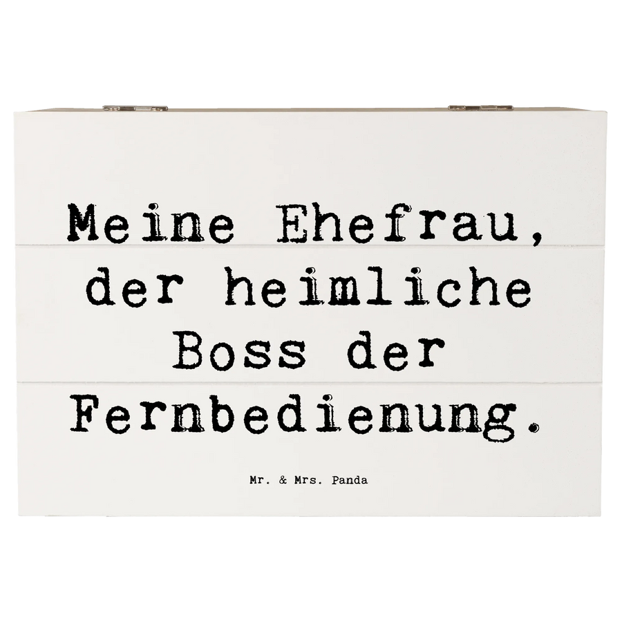 Die wunderschöne Holzkiste von Mr. & Mrs. Panda mit dem Aufdruck 'Meine Ehefrau, der heimliche Boss der Fernbedienung' ist das perfekte Geschenk für die besondere Frau in Deinem Leben. Diese Erinnerungskiste ist nicht nur ein stilvolles Accessoire, sondern auch ein lebenslanges Zuhause für kostbare Erinnerungen.