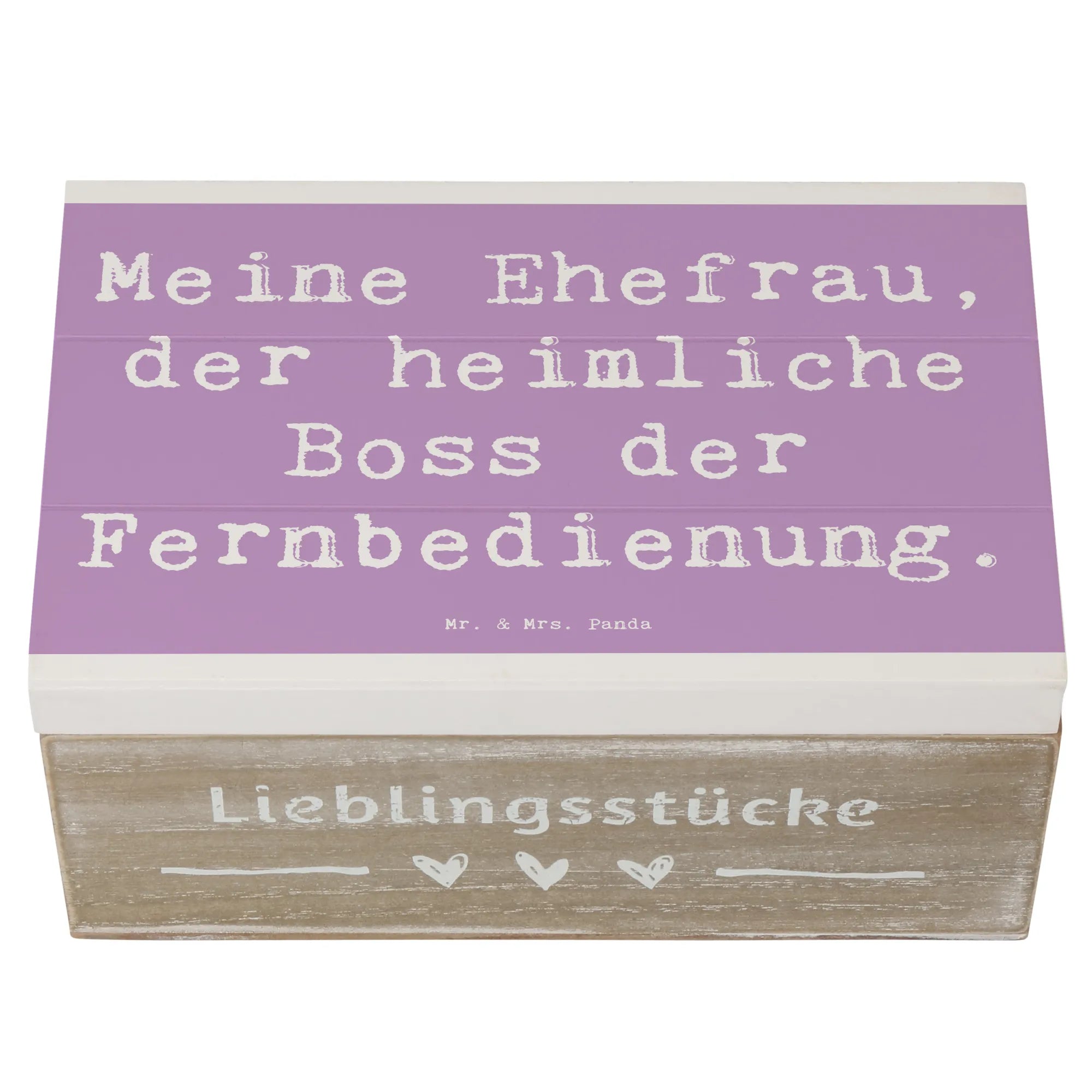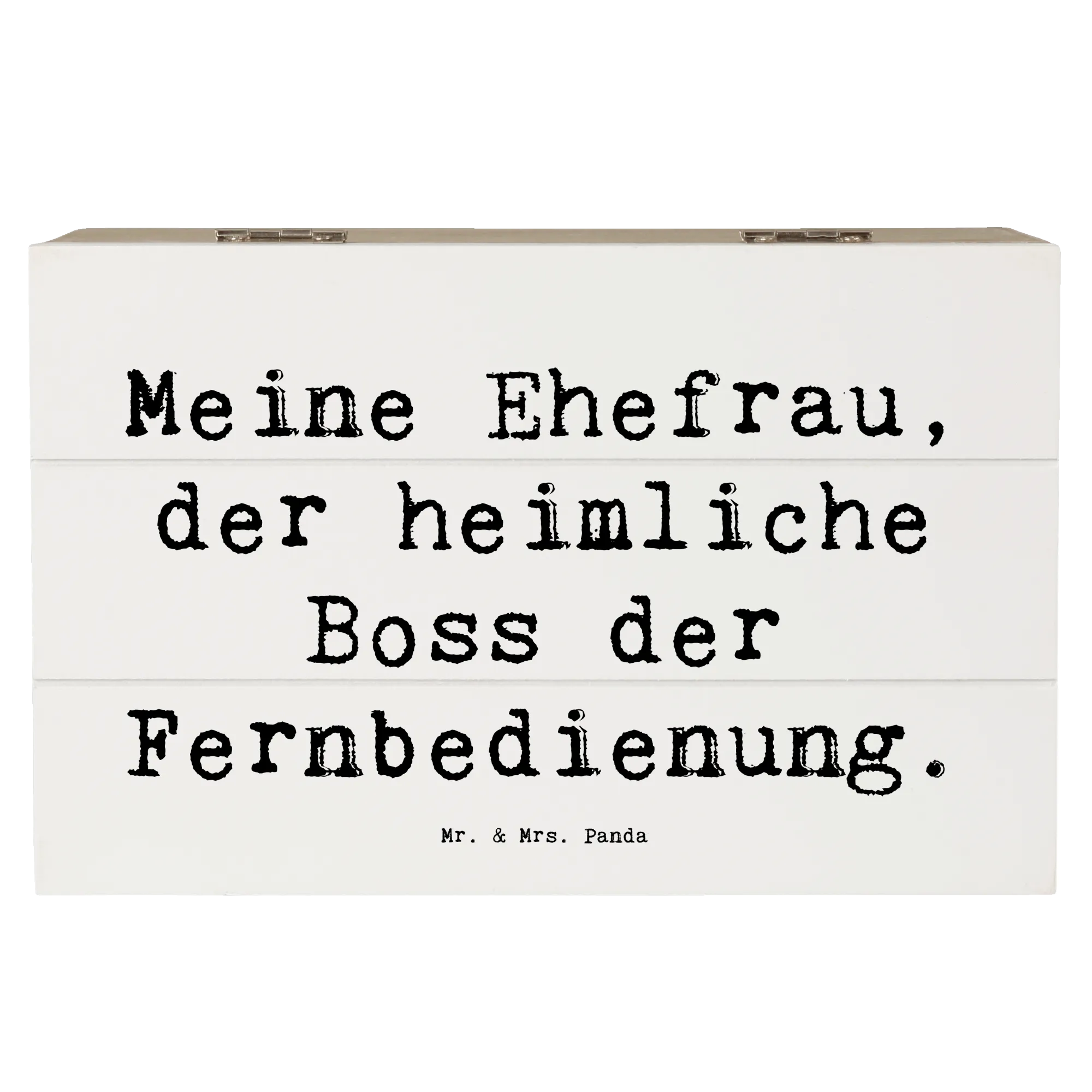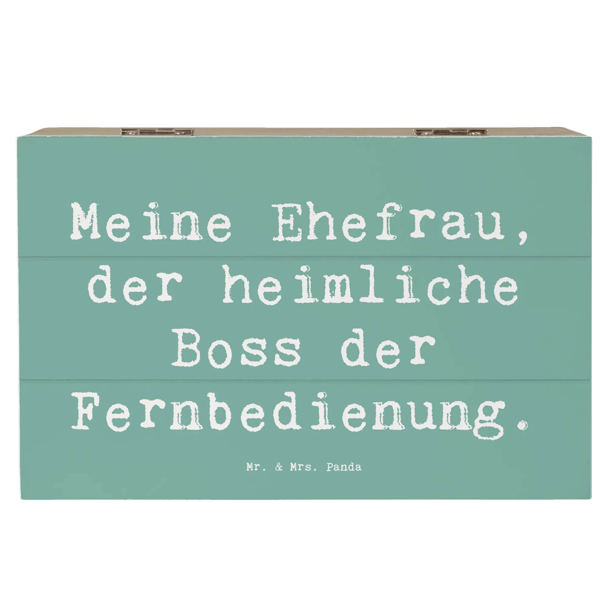 Die Holzkiste "Meine Ehefrau, der heimliche Boss der Fernbedienung" von Mr. & Mrs. Panda ist das perfekte Geschenk für Deine Lieblings-Ehefrau. Diese wunderschöne Erinnerungskiste vereint praktischen Nutzen mit einer liebevollen Botschaft und ist damit ein besonderes Highlight für jeden Anlass. Egal ob zum Geburtstag, Hochzeitstag oder einfach so als Zeichen Deiner Wertschätzung – mit dieser Kiste kannst Du Deiner Ehefrau zeigen, wie viel sie Dir bedeutet.