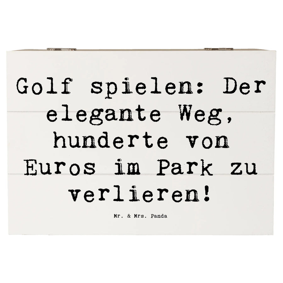 Du bist auf der Suche nach dem perfekten Geschenk für einen Sportliebhaber? Dann ist die wunderschöne Holzkiste von Mr. & Mrs. Panda genau das richtige! Diese stilvolle Kiste wird mit einem witzigen Spruch zum Thema Golf bedruckt: 'Golf spielen: Der elegante Weg, hunderte von Euros im Park zu verlieren!'. Ob für Geburtstage, Kommunionen oder einfach als liebevolle Aufmerksamkeit – die Erinnerungskiste ist nicht nur ein toller Hingucker, sondern auch ein praktischer Aufbewahrungsort für all die schönen Dinge, die das Leben bereit hält.