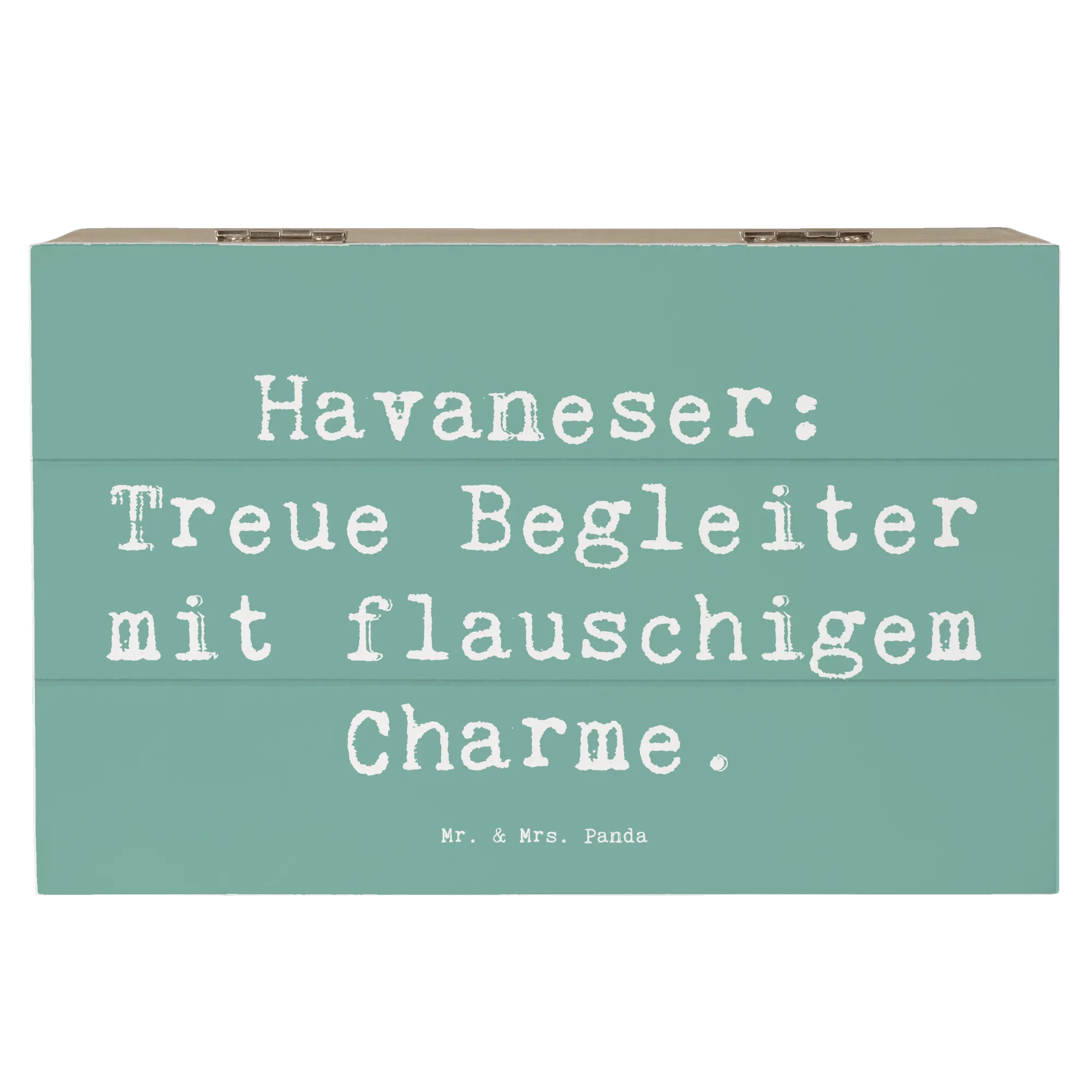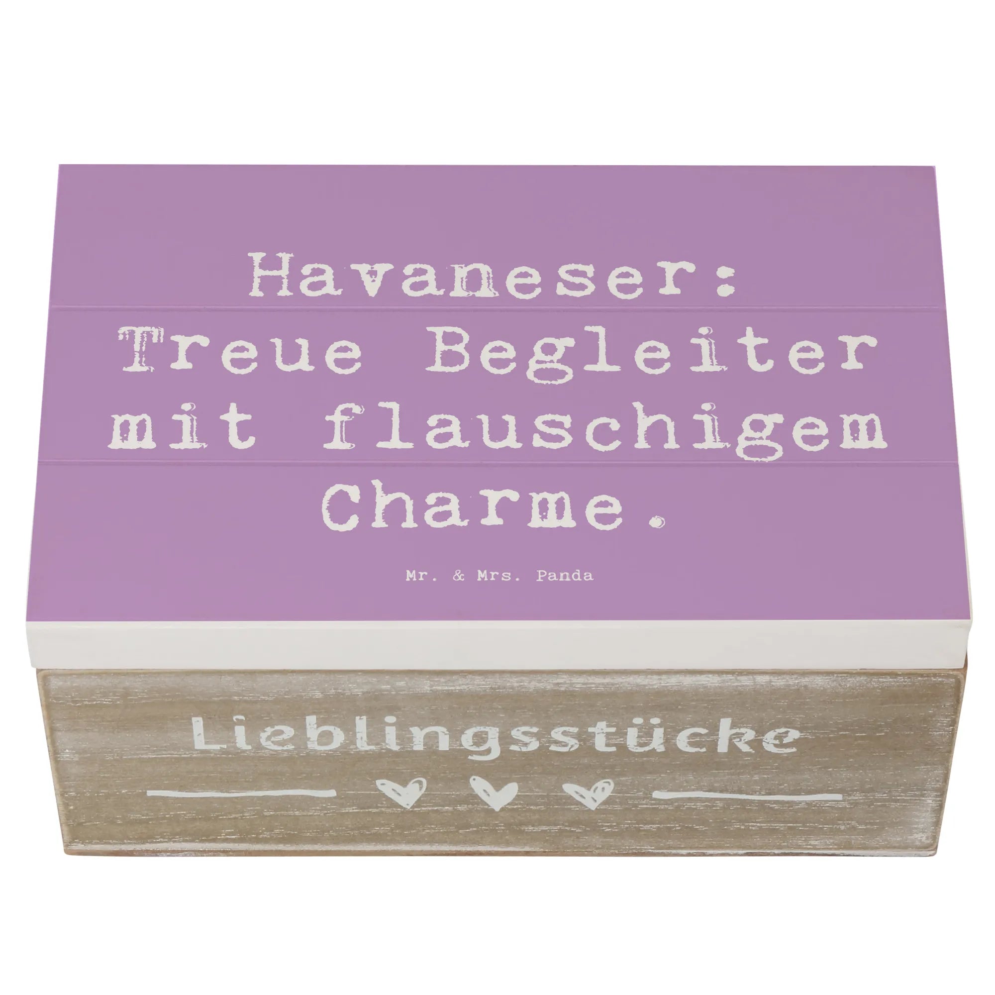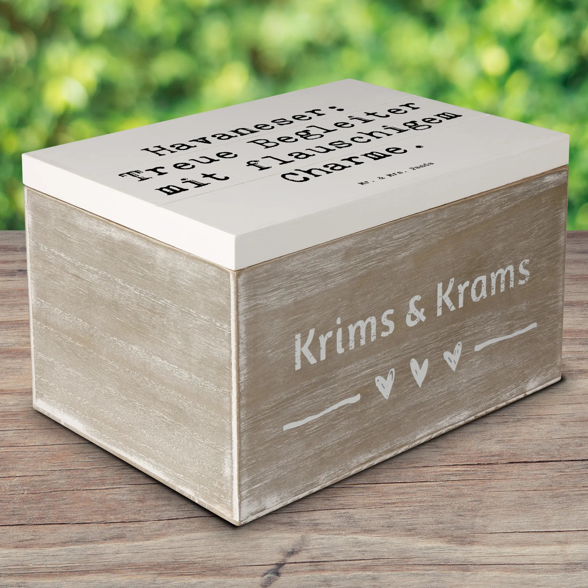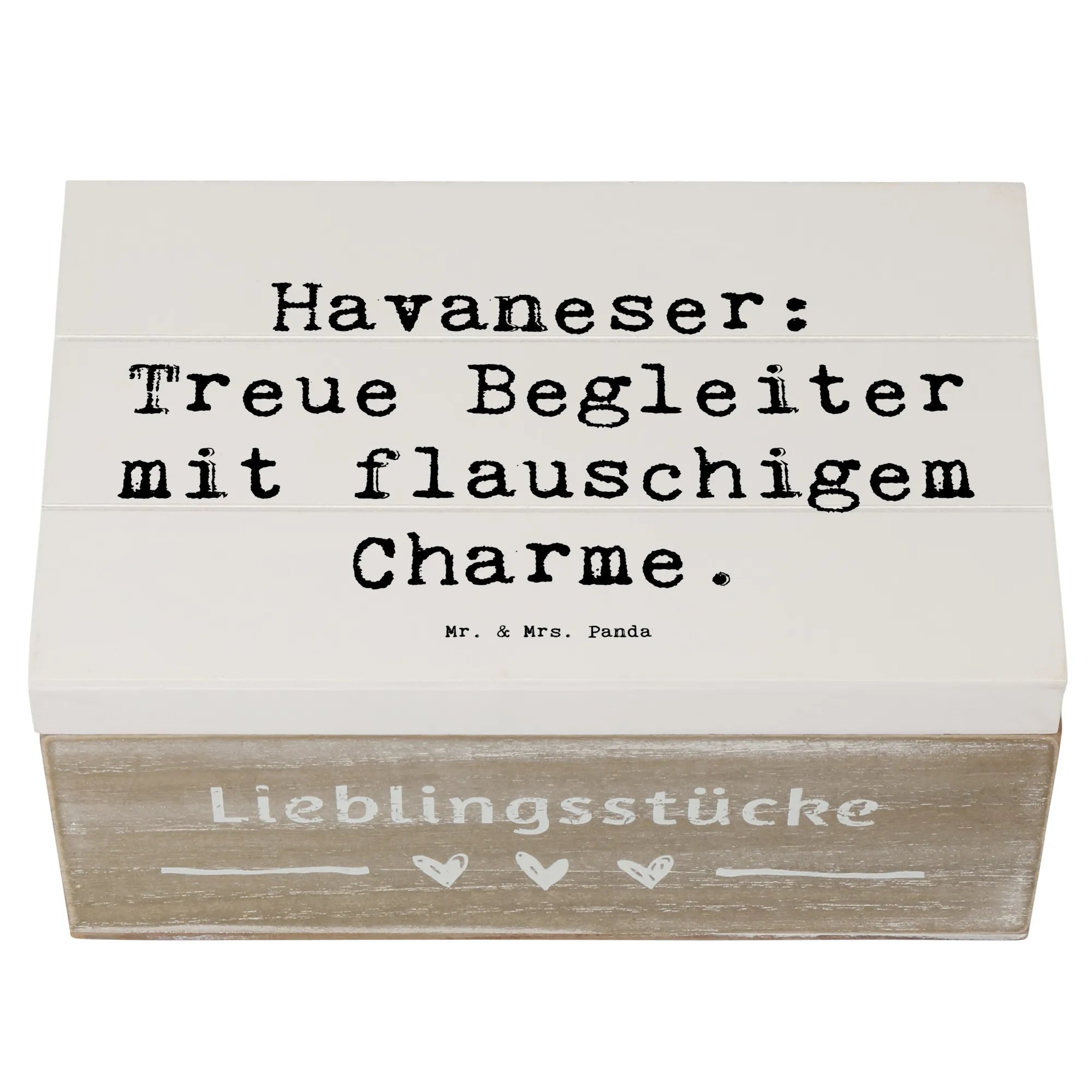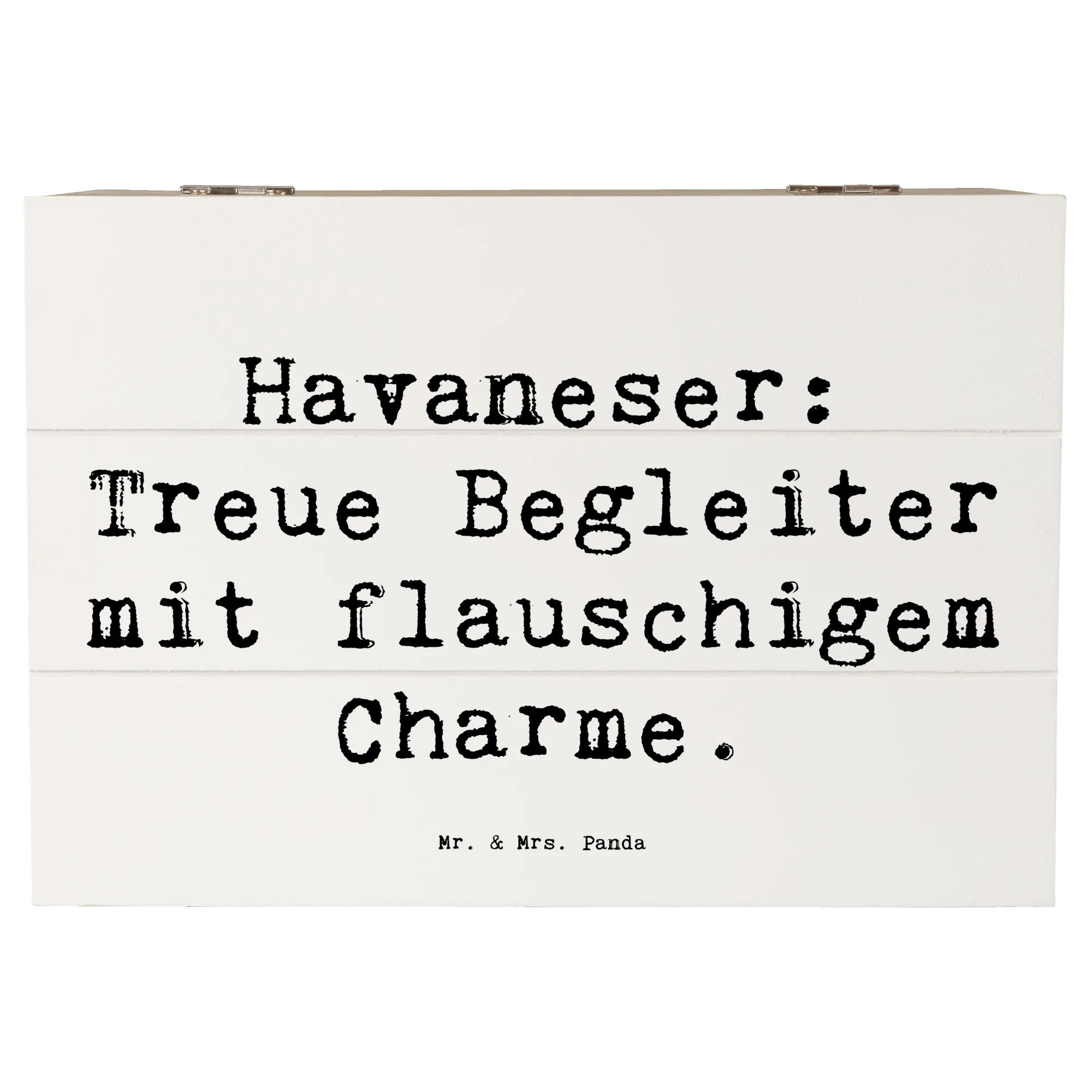 Die wunderschöne Holzkiste von Mr. & Mrs. Panda ist der perfekte Aufbewahrungsort für all deine Schätze. Mit dem liebevoll gestalteten Motiv des Havanesers und dem Spruch "Havaneser: Treue Begleiter mit flauschigem Charme" ist diese Kiste nicht nur ein praktisches Accessoire, sondern auch ein echter Blickfang in jedem Raum.