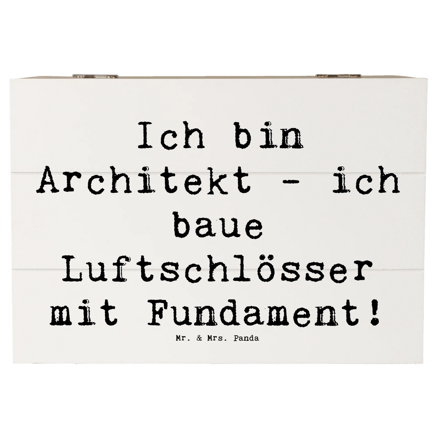 Die wunderschöne Holzkiste von Mr. & Mrs. Panda mit dem liebevollen Motiv "Ich bin Architekt - ich baue Luftschlösser mit Fundament!" ist das perfekte Geschenk für alle Architekten und Architektur-Enthusiasten.