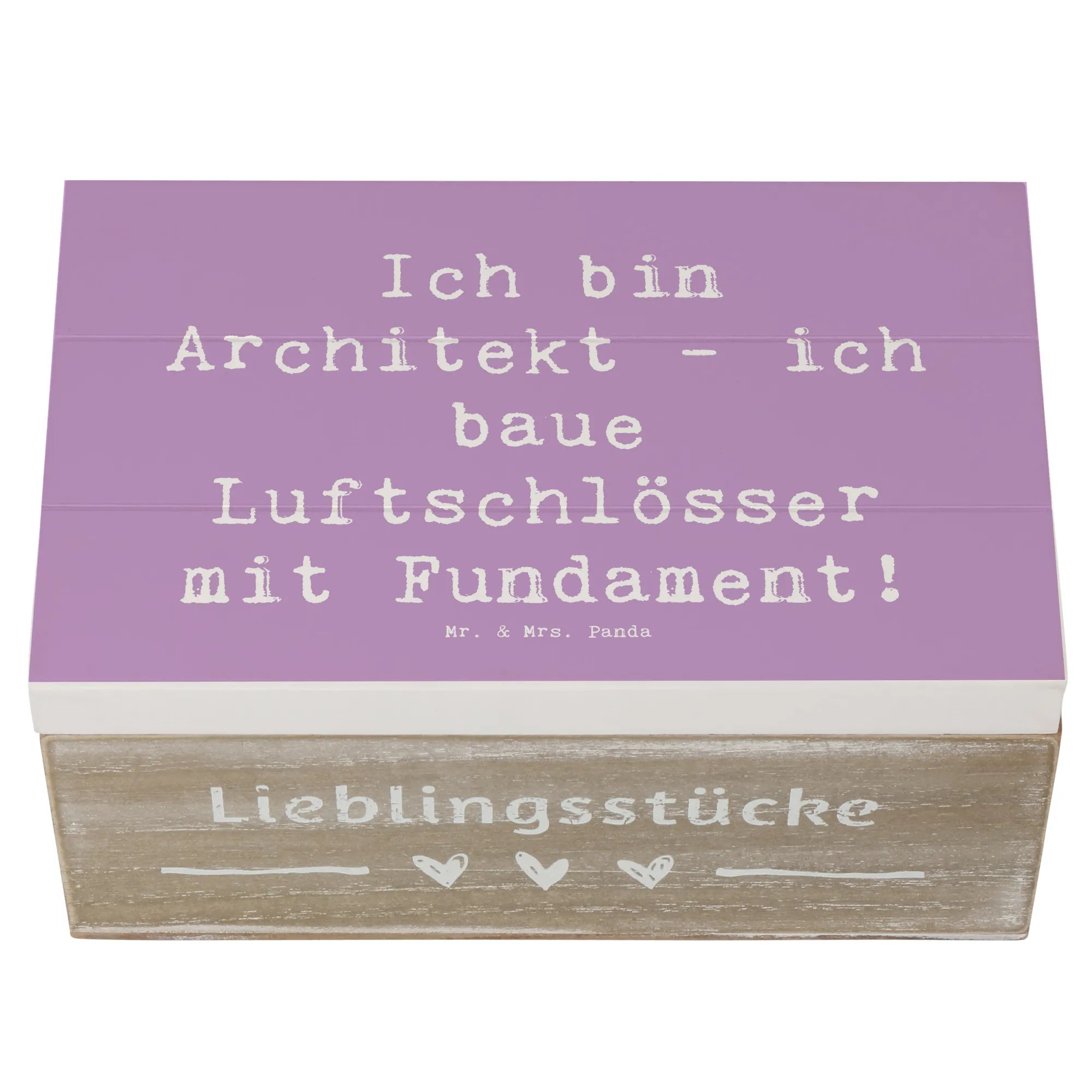 Entdecke die bezaubernde Holzkiste "Ich bin Architekt - ich baue Luftschlösser mit Fundament!" von Mr. & Mrs. Panda! Diese wunderschöne Kiste ist nicht nur ein Aufbewahrungsort deiner wertvollen Schätze, sondern auch ein tolles Geschenk für alle Architekten und Architekturbegeisterte.