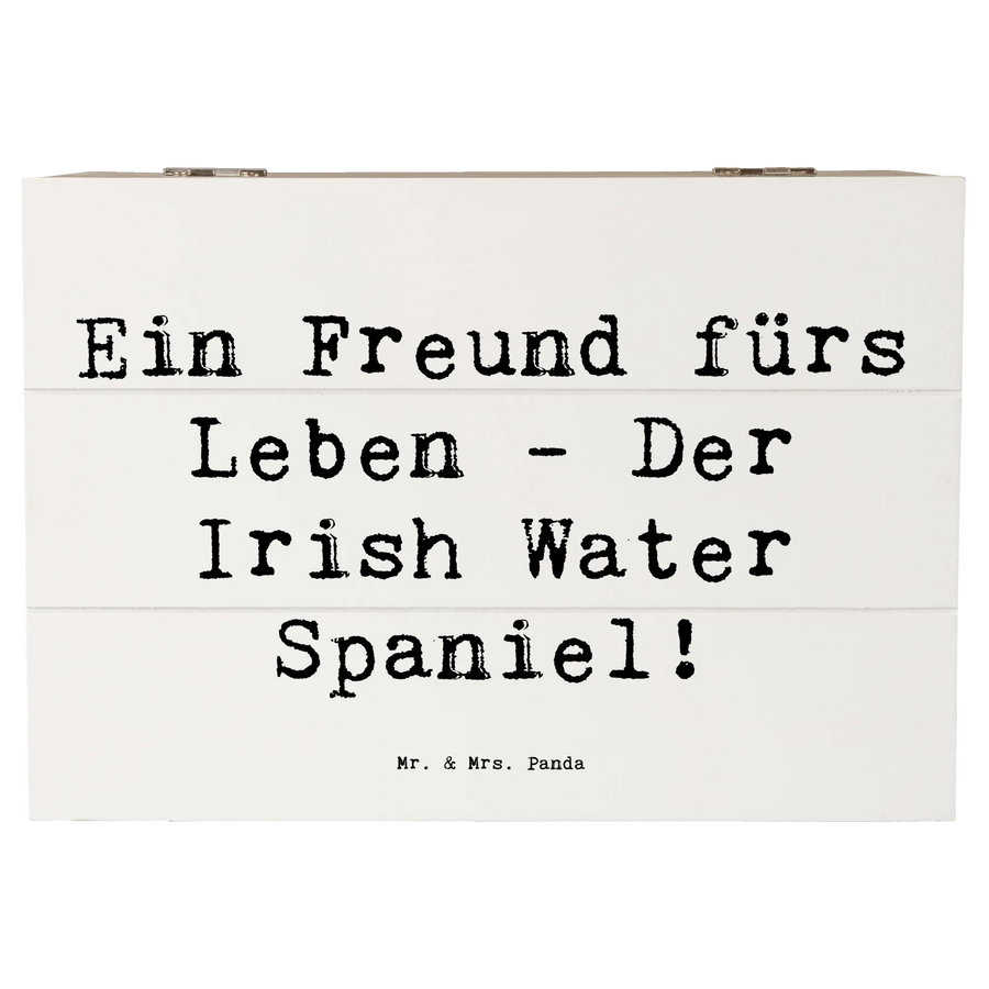 Die Holzkiste mit dem Motive des Irish Water Spaniels von Mr. & Mrs. Panda ist mehr als nur eine Aufbewahrungslösung - sie ist ein wunderschönes Erinnerungsstück, das Hundefans begeistern wird! Mit der Aufschrift 'Ein Freund fürs Leben - Der Irish Water Spaniel!' verkörpert sie die Liebe zu dieser einzigartigen Hunderasse.