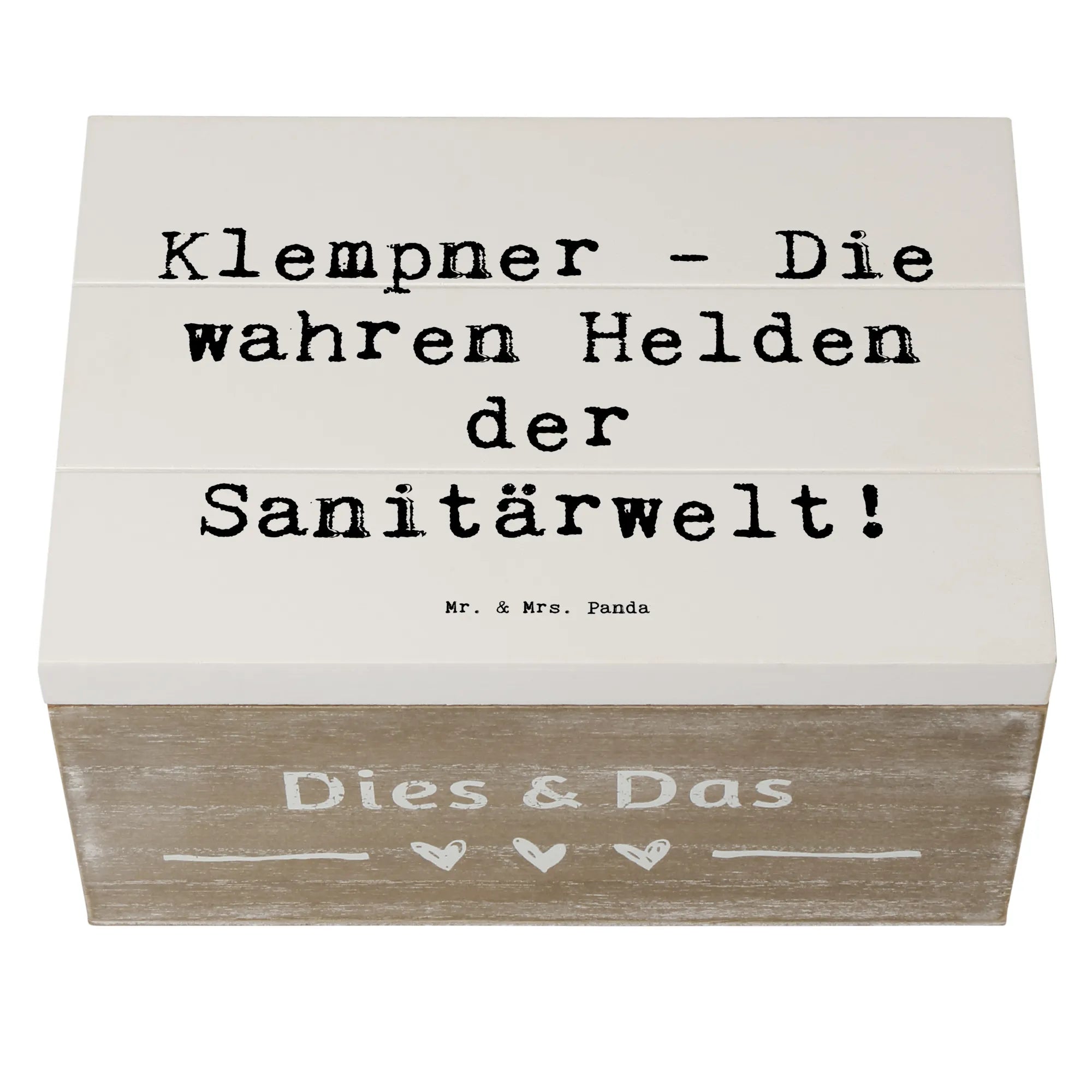Mit dieser Holzkiste von Mr. & Mrs. Panda wirst du auf jeden Fall zum Hit auf jeder Feier und schaffst unvergessliche Momente! Ein kleines Piece of Art, das sowohl Erinnerungsstücke als auch den Stolz auf den Beruf des Klempners festhält!