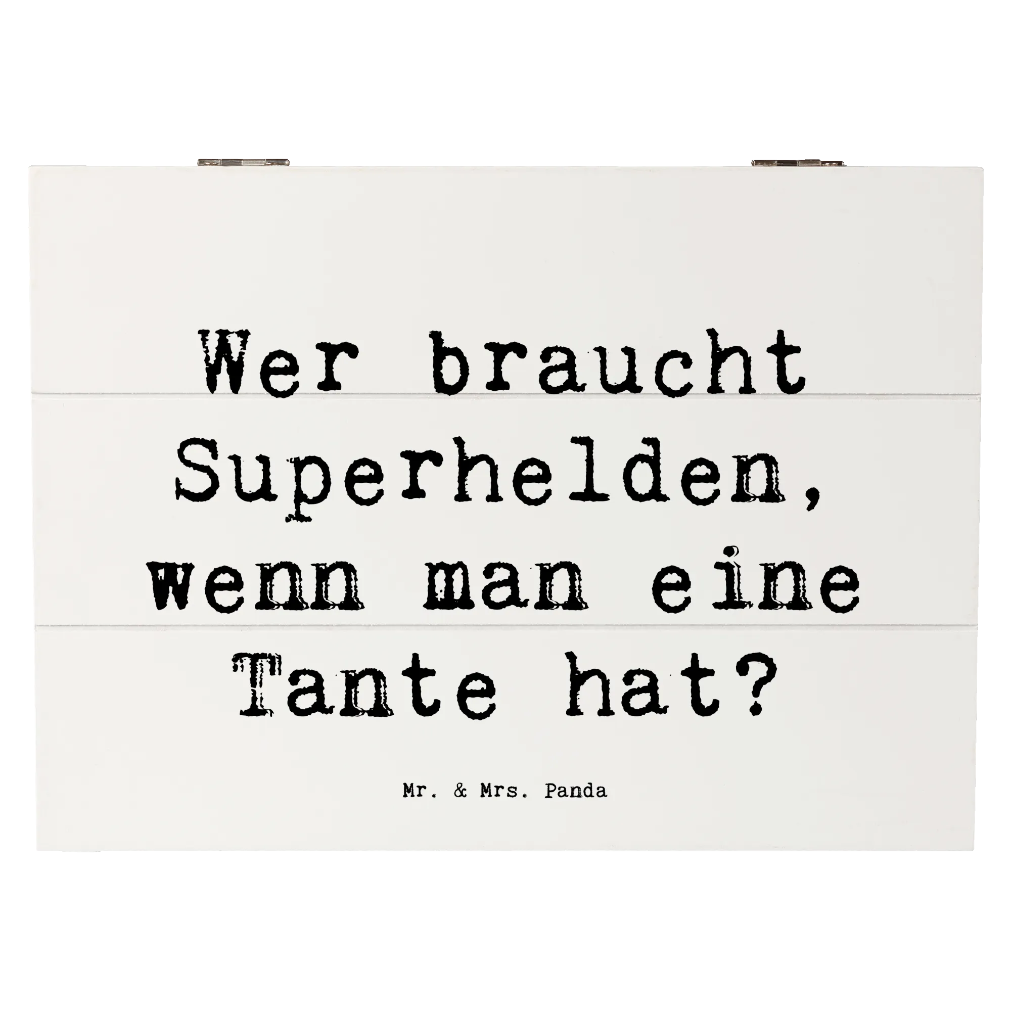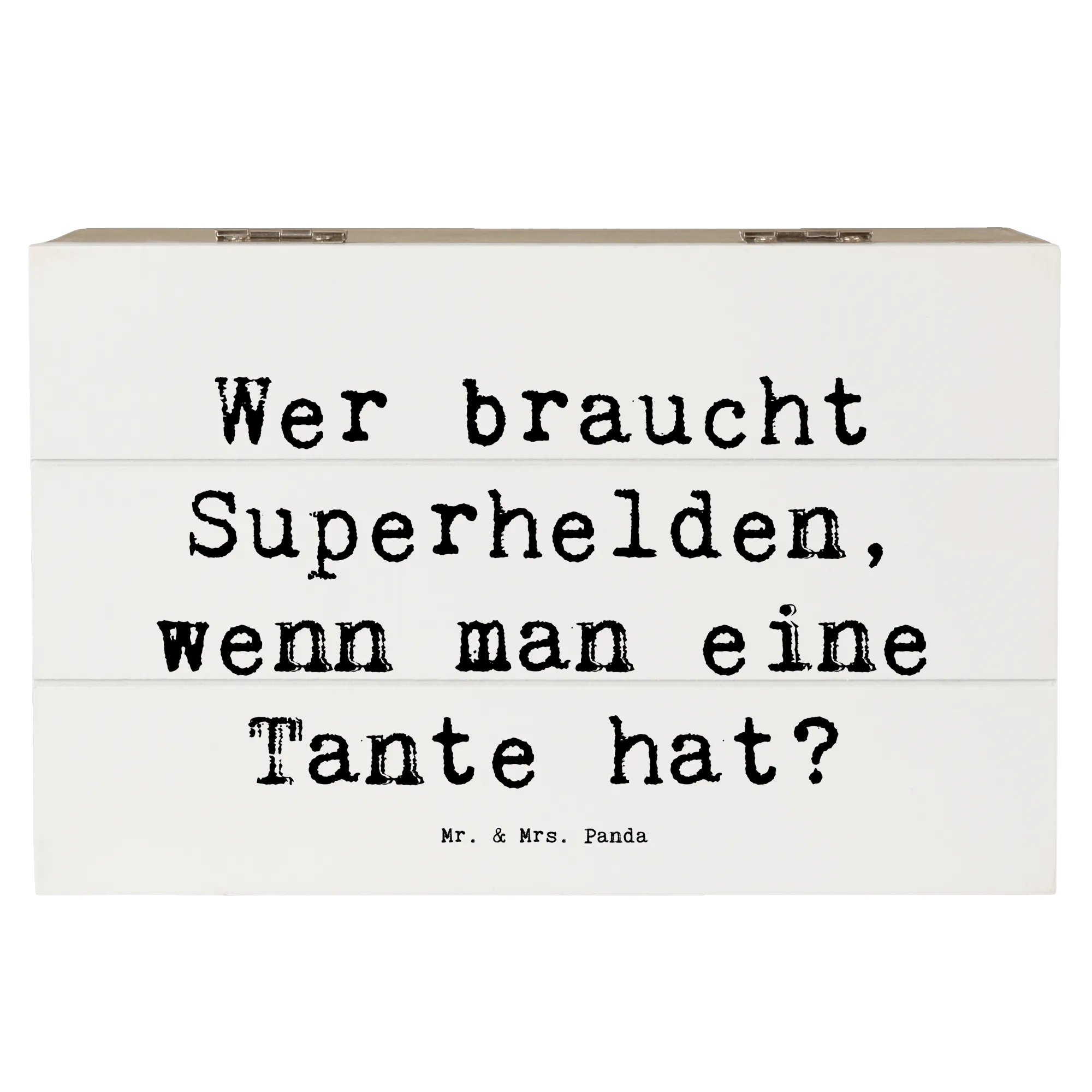 Die wunderschöne Holzkiste von Mr. & Mrs. Panda ist das perfekte Geschenk für all die besonderen Menschen in deinem Leben, besonders für deine Tante! Mit dem liebevollen Motiv "Wer braucht Superhelden, wenn man eine Tante hat?" plastisch auf hochwertigem Material, strahlt diese Kiste eine besondere Wärme und Zuneigung aus.