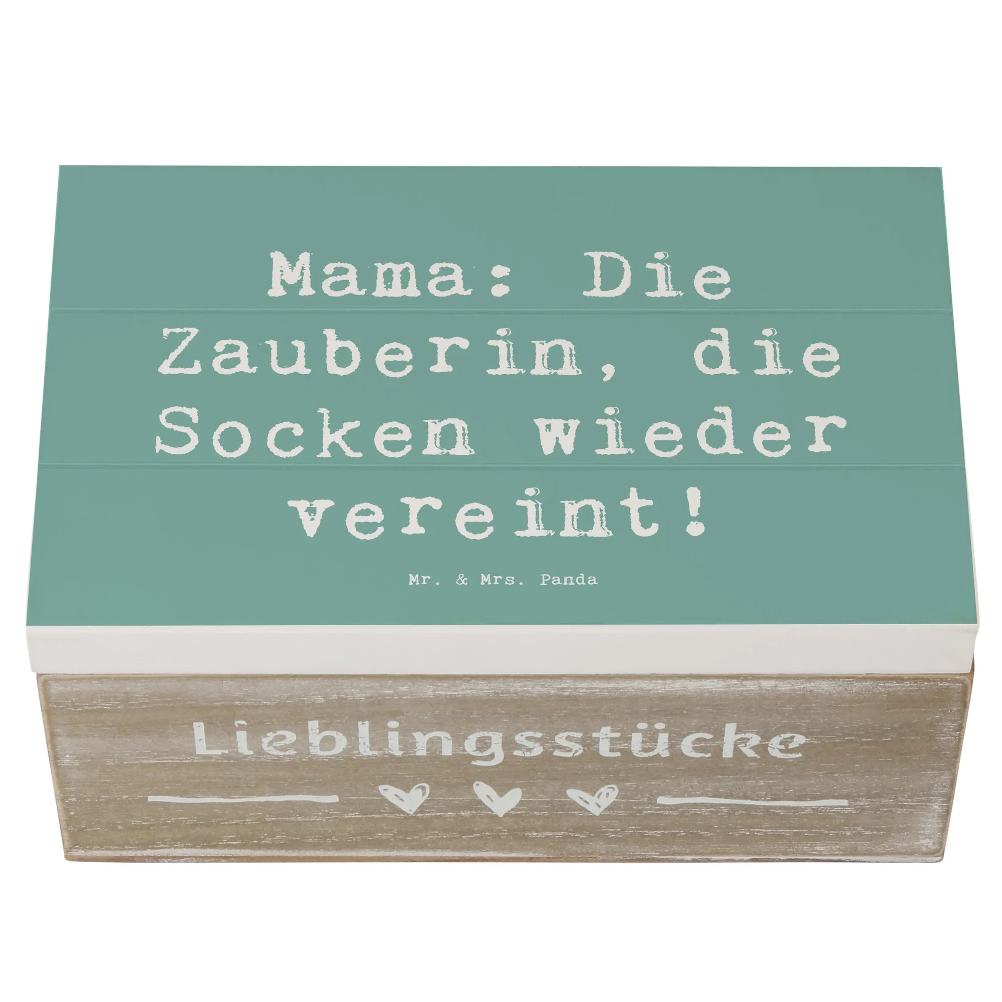 Die wunderschöne Holzkiste von Mr. & Mrs. Panda ist das perfekte Geschenk für alle, die Mamas Liebe und Fürsorge ehren möchten. Mit ihrem liebevollen Design und dem Spruch "Mama: Die Zauberin, die Socken wieder vereint!" ist diese Kiste nicht nur ein praktischer Aufbewahrungsort für all die kleinen Schätze, die Du in Deinem Leben gesammelt hast, sondern auch ein charmantes Dekorationsstück für Dein Zuhause.