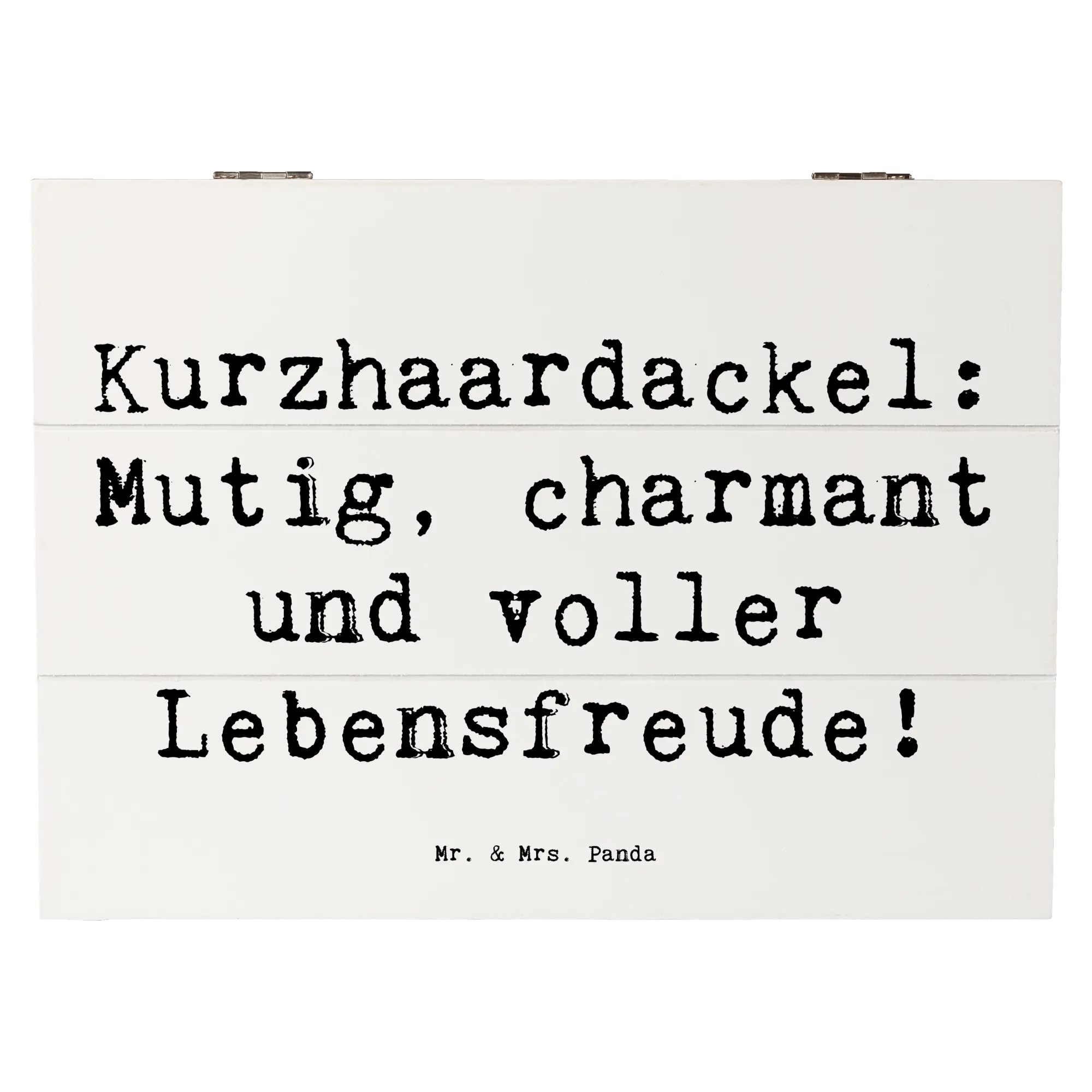 Entdecke die zauberhafte Holzkiste mit dem süßen Motiv des Kurzhaardackels von Mr. & Mrs. Panda! Diese wunderschöne Kiste ist nicht nur ein echter Blickfang, sondern auch die perfekte Aufbewahrungsbox für all Deine wertvollen Schätze. Ob als Erinnerungskiste für besondere Anlässe wie Kommunion, Konfirmation oder die unvergesslichen Momente der Kindheit – mit dieser Kiste hast Du einen stilvollen Platz für all Deine Erinnerungen. Mit den Maßen von 25 x 18 cm und einem Gewicht von 750 g passt sie perfekt in jedes Zuhause und bietet ausreichend Platz für Fotos, kleine Andenken und mehr.