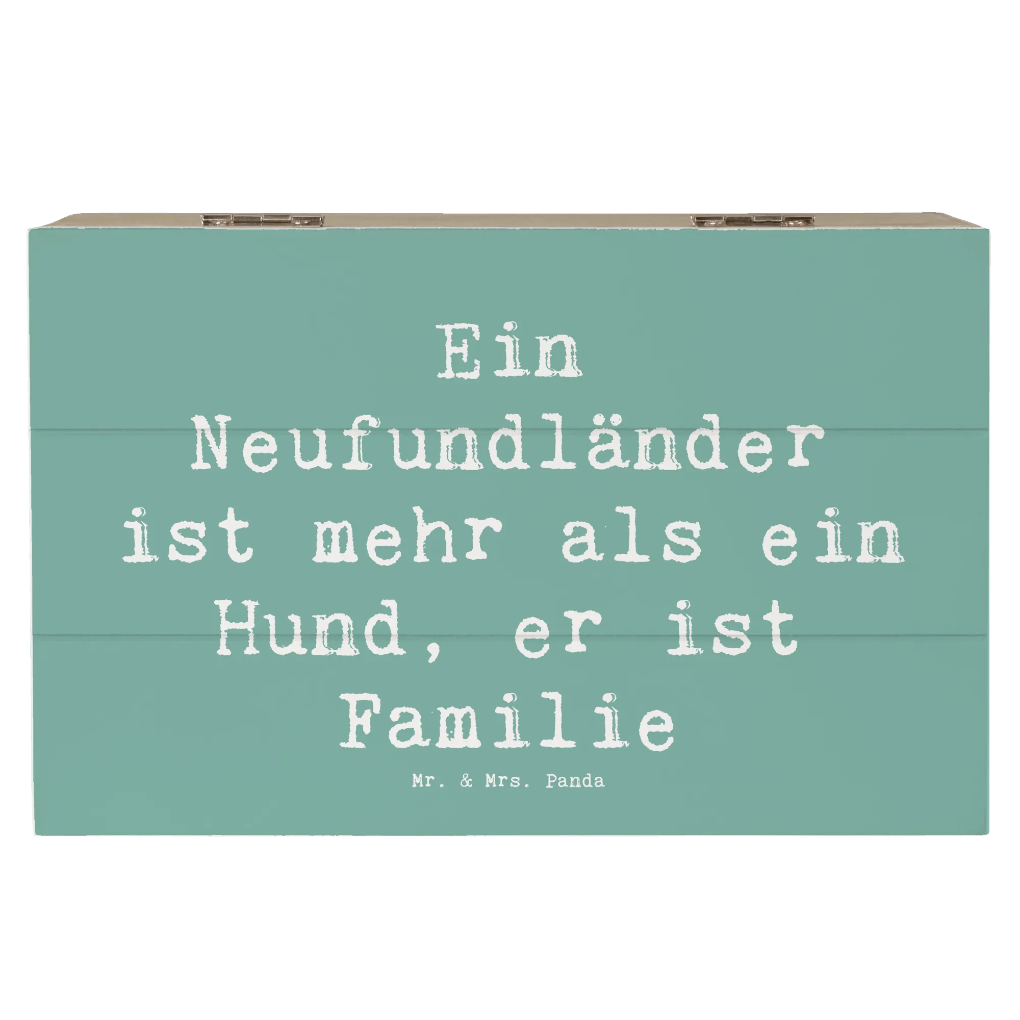 Entdecke die zauberhafte Holzkiste von Mr. & Mrs. Panda, die nicht nur ein wunderschönes Design hat, sondern auch ein perfekter Aufbewahrungsort für all deine wertvollen Erinnerungen ist! Diese ganz besondere Kiste ist bedruckt mit dem liebevollen Motiv eines Neufundländers und dem Satz „Ein Neufundländer ist mehr als ein Hund, er ist Familie“. Die Holzkiste hat die Maße 25 x 18 cm und besteht aus robuster Premium Hartfaser, die nicht nur langlebig, sondern auch wasserabweisend ist.