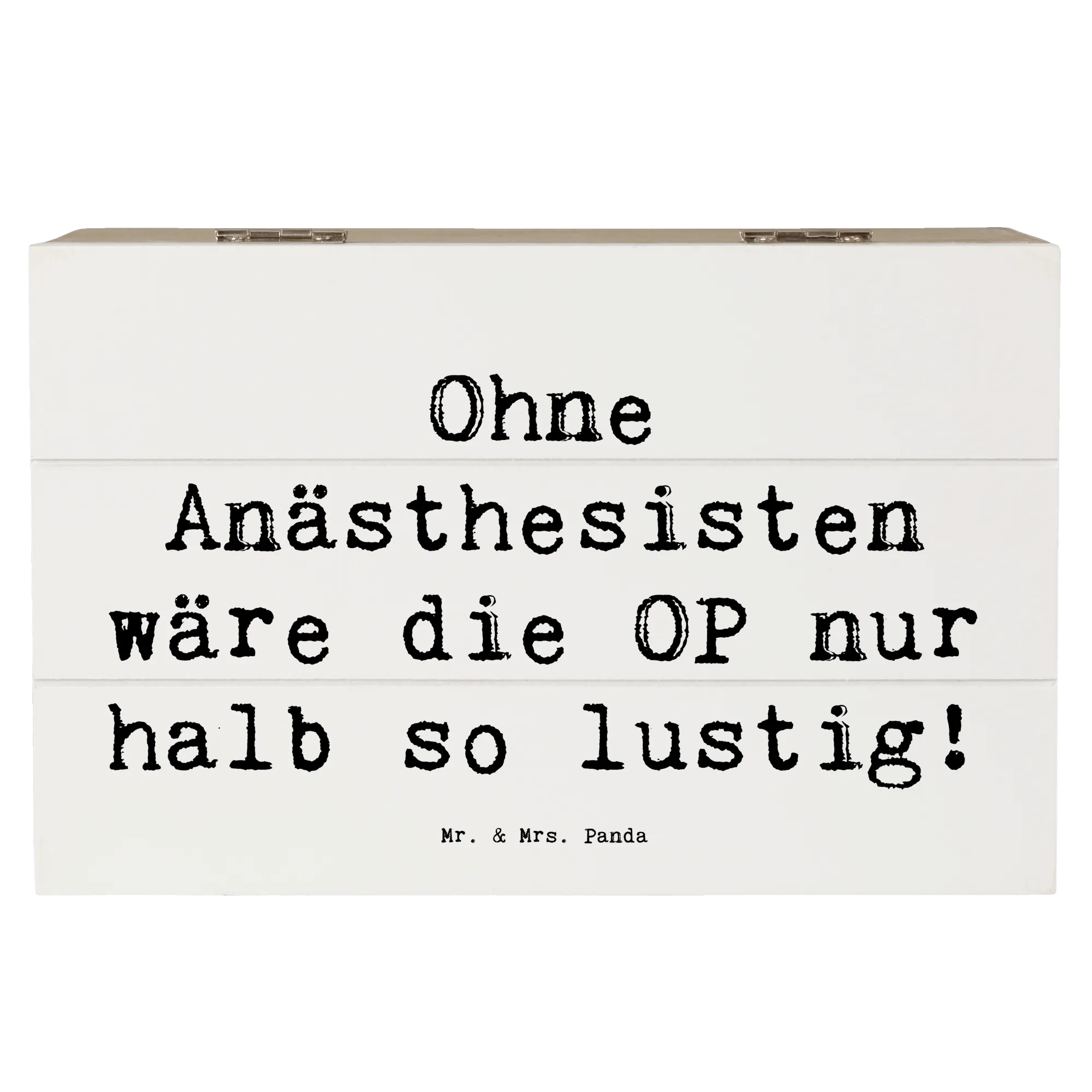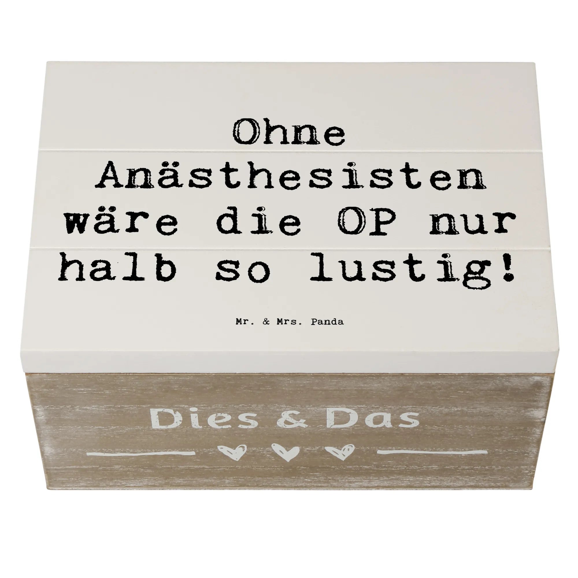 Die Holzkiste Anästhesist von Mr. & Mrs. Panda ist nicht nur eine wunderschöne Aufbewahrungsmöglichkeit, sie ist auch das perfekte Geschenk für alle, die im medizinischen Bereich arbeiten oder mit Anästhesisten zu tun haben. Diese charmante Kiste bringt ein Lächeln in den Alltag.