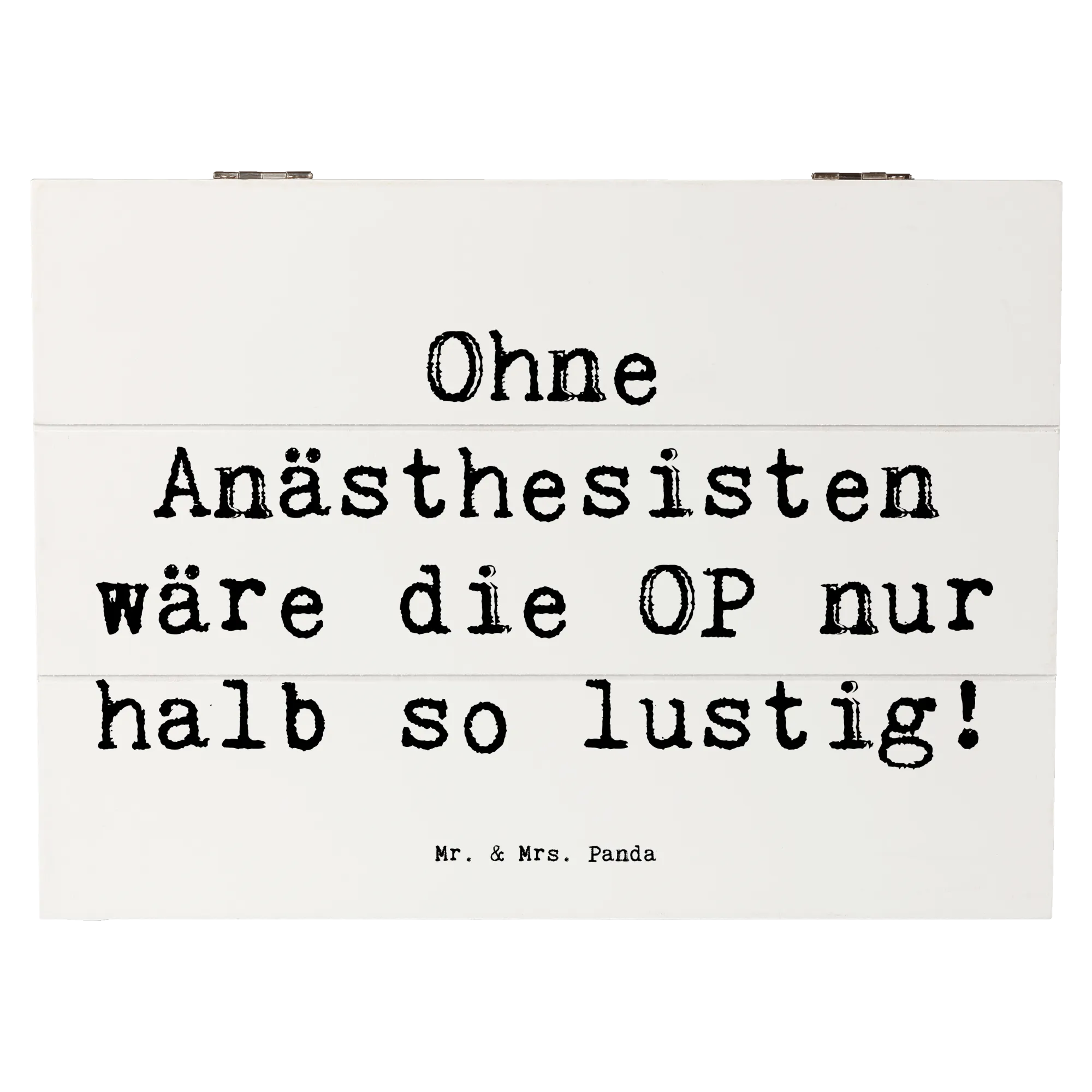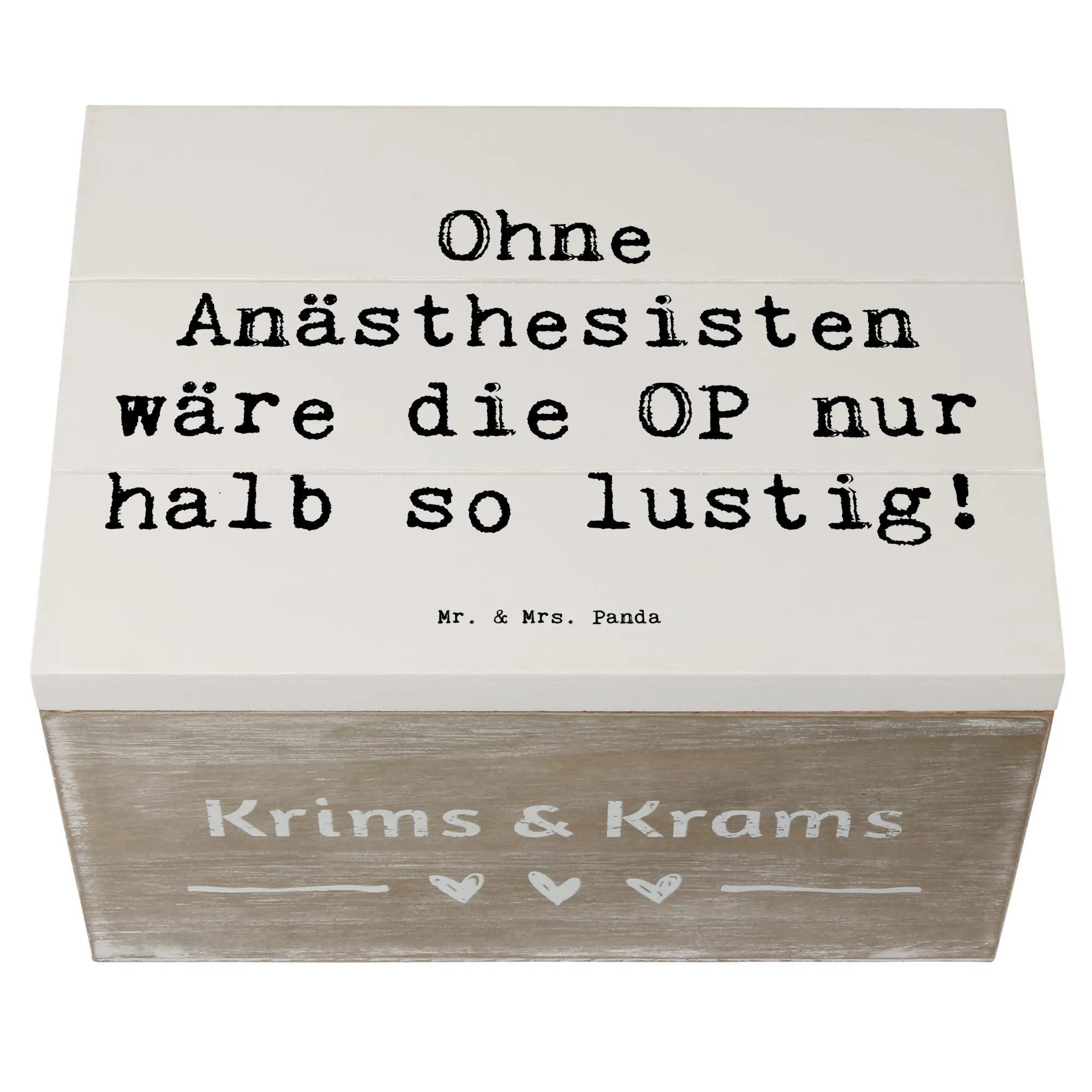 Die wunderschöne Holzkiste von Mr. & Mrs. Panda ist nicht nur ein praktischer Aufbewahrungsort für all deine kostbaren Schätze, sondern auch ein einzigartiges Geschenk für all jene, die im Gesundheitswesen arbeiten, besonders für Anästhesisten! Mit ihrem charmanten Motiv und dem humorvollen Spruch 'Ohne Anästhesisten wäre die OP nur halb so lustig!' ist sie die ideale Erinnerungskiste für den Berufsalltag und für besondere Anlässe wie Berufsjubiläen oder Abschiedsfeiern.
