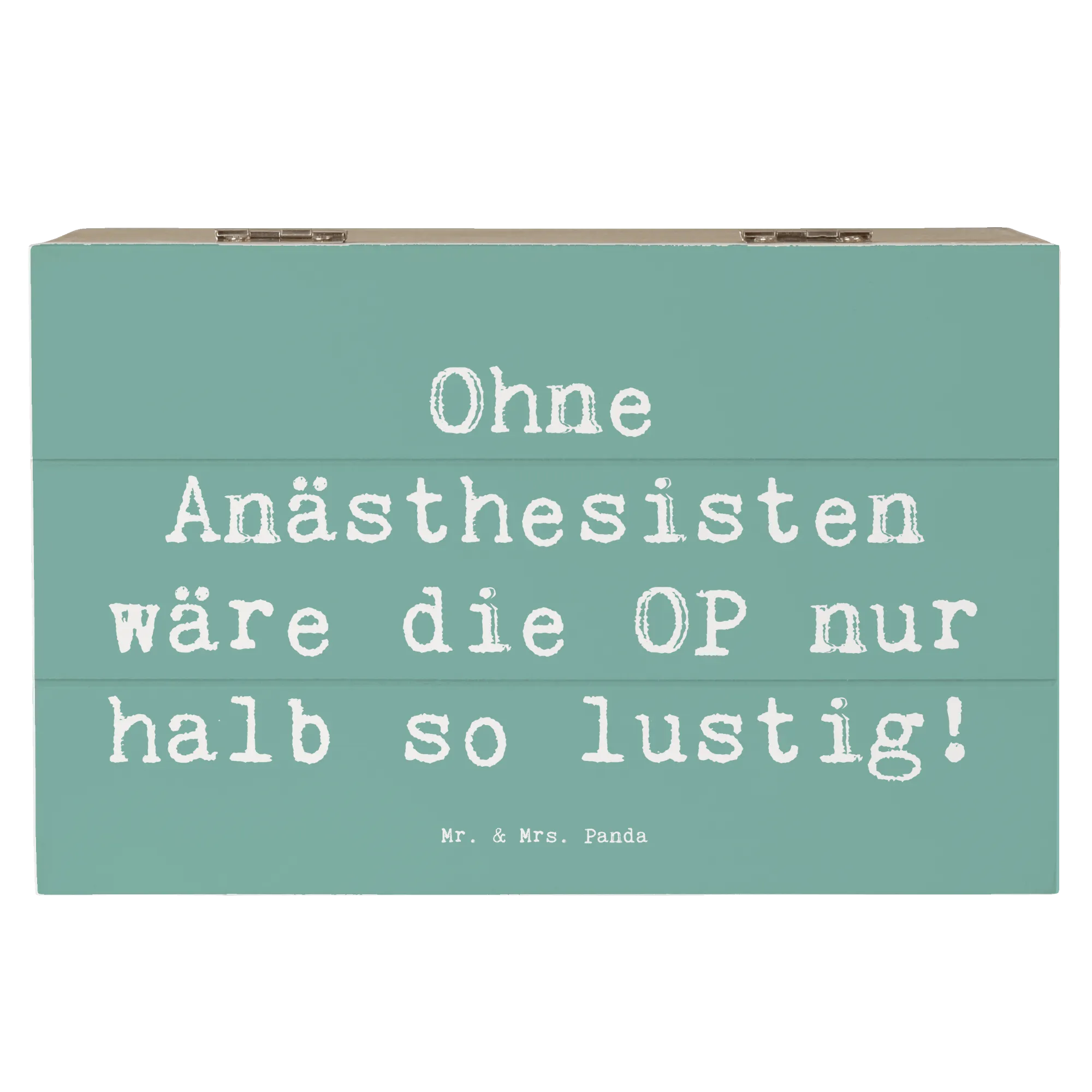 Die Holzkiste mit dem motivierenden Spruch 'Ohne Anästhesisten wäre die OP nur halb so lustig!' ist das perfekte Geschenk für Anästhesisten und medizinische Fachkräfte. Diese wunderschöne Holzkiste von Mr. & Mrs. Panda ist nicht nur ein idealer Aufbewahrungsort für Erinnerungen, sondern auch ein liebevolles Geschenk zur Anerkennung ihrer wichtigen Arbeit im Gesundheitswesen.