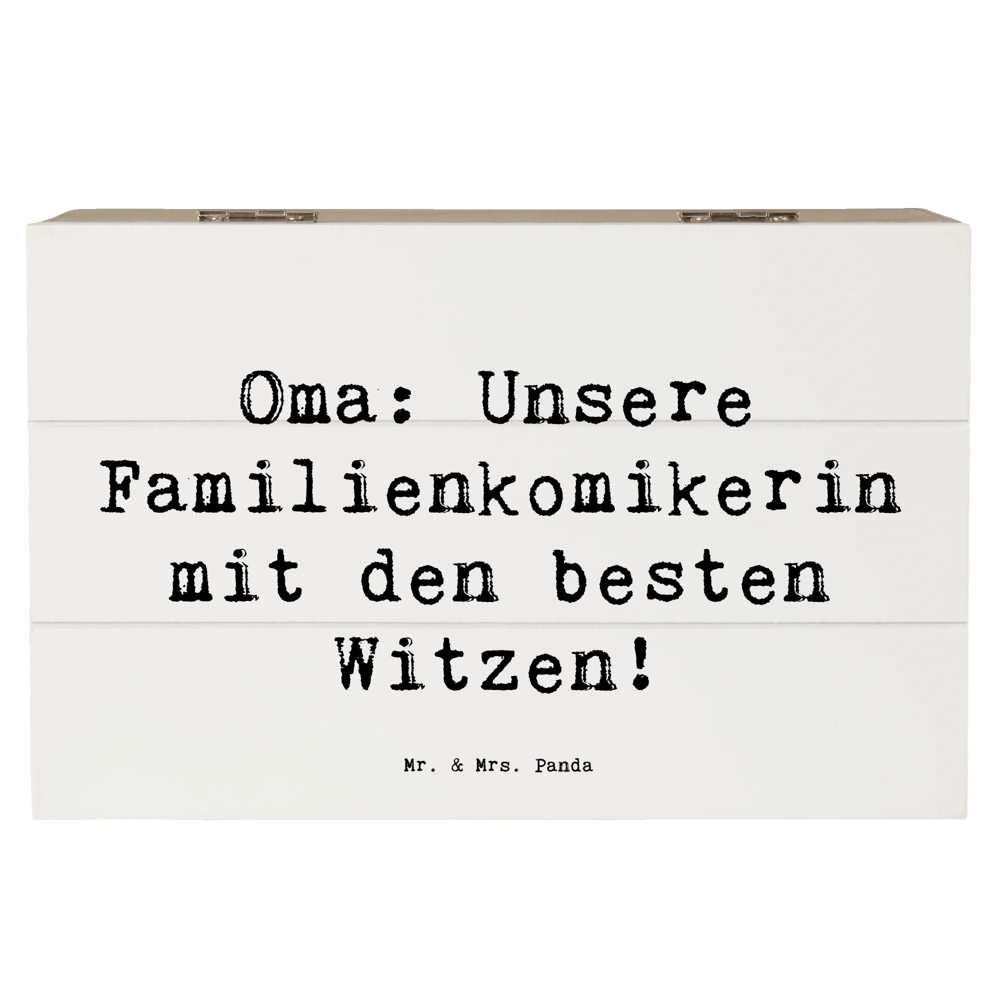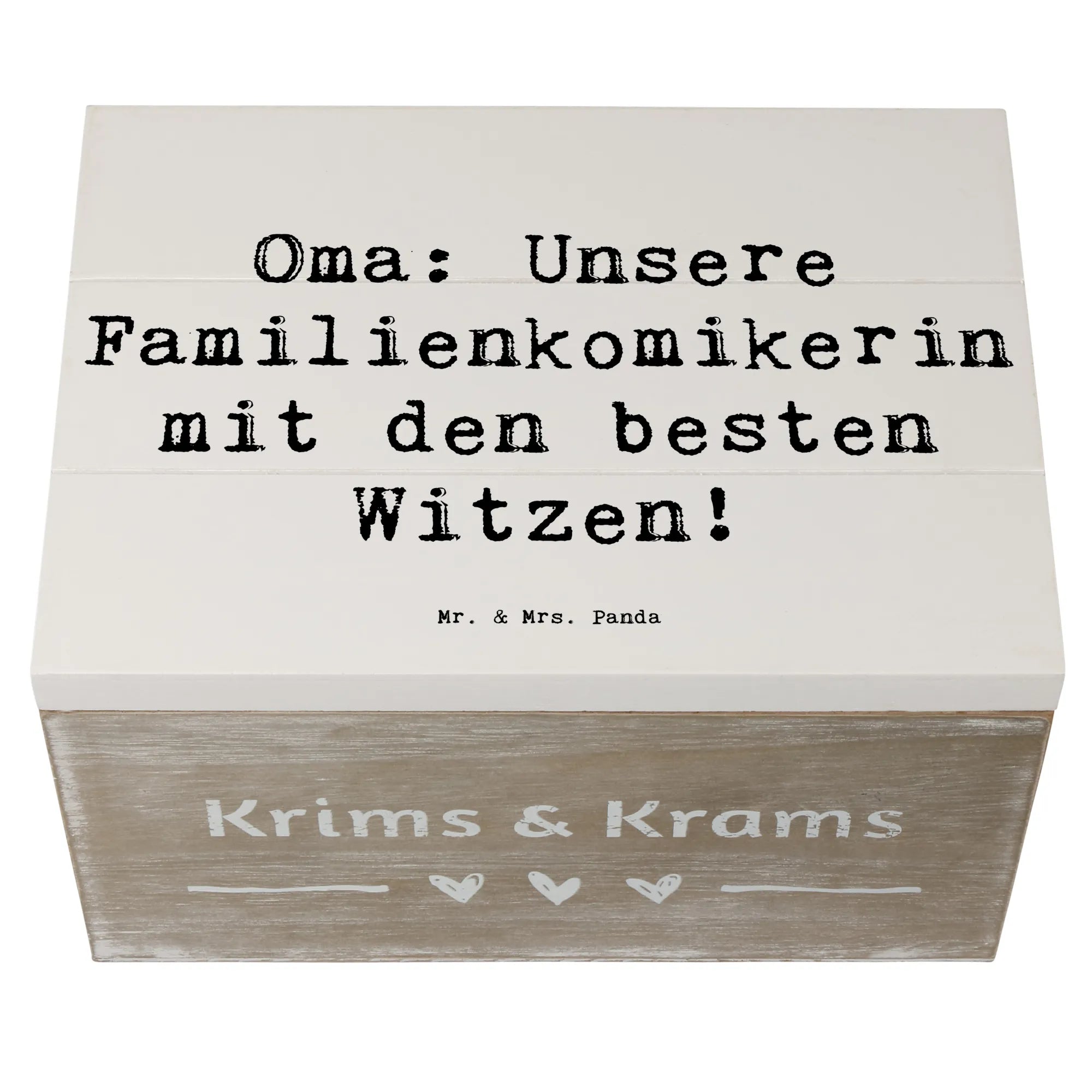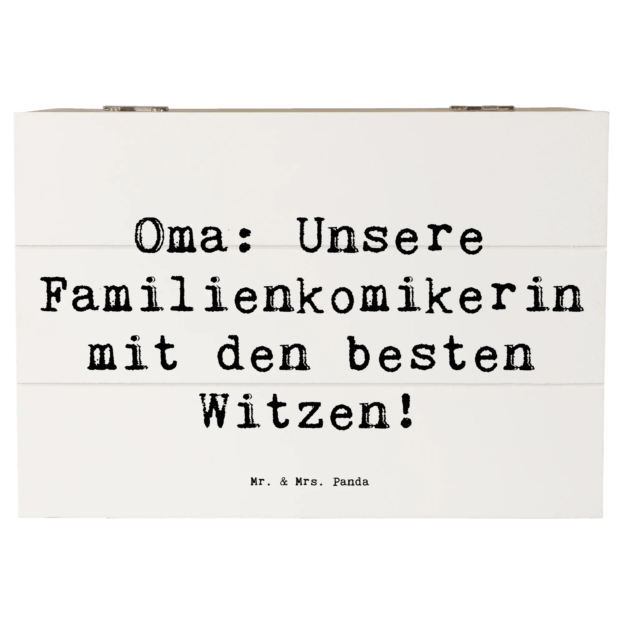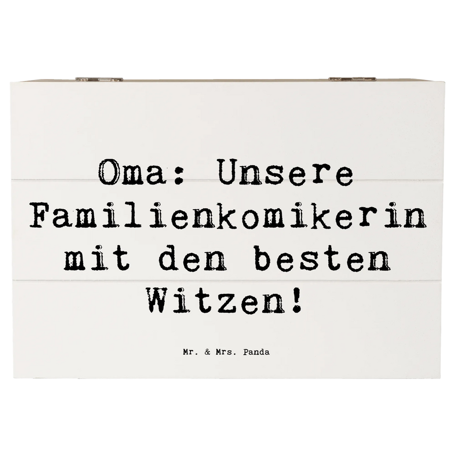 Die schöne Holzkiste von Mr. & Mrs. Panda ist das perfekte Geschenk für Deine liebste Oma! Mit einem liebevollen Motiv und dem charmanten Spruch "Oma: Unsere Familienkomikerin mit den besten Witzen!" stellt diese Kiste nicht nur einen Blickfang dar, sondern bringt auch ein Lächeln auf jedes Gesicht. Diese Holzkiste ist nicht nur hübsch anzusehen, sondern bietet zudem einen idealen Aufbewahrungsort für all die wundervollen Schätze, die Deine Oma über die Jahre gesammelt hat.