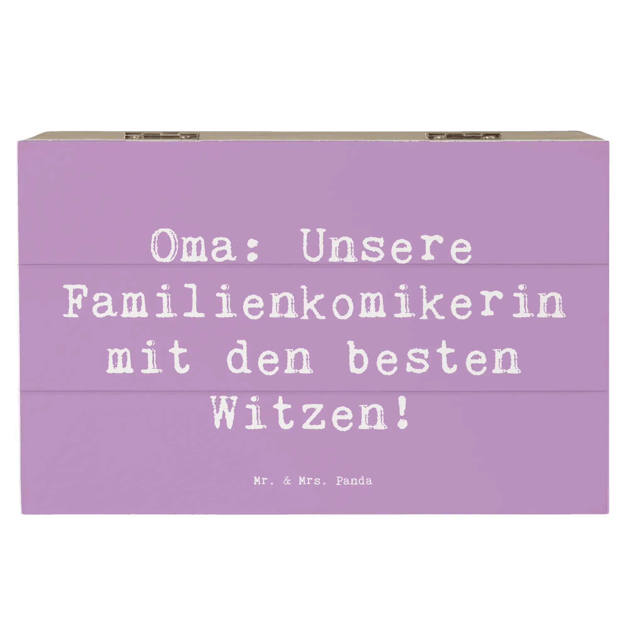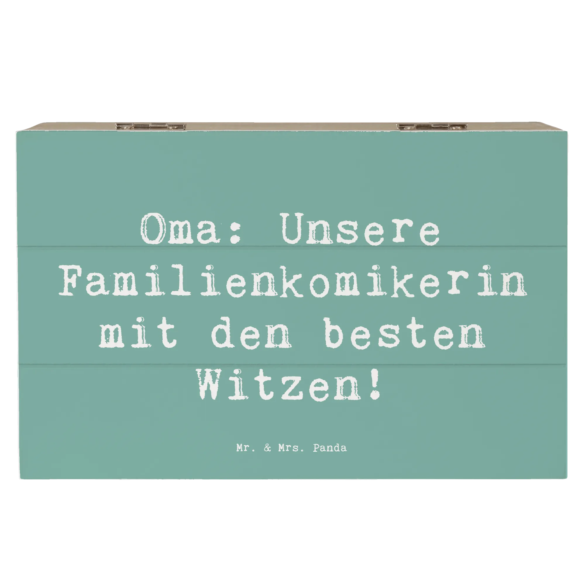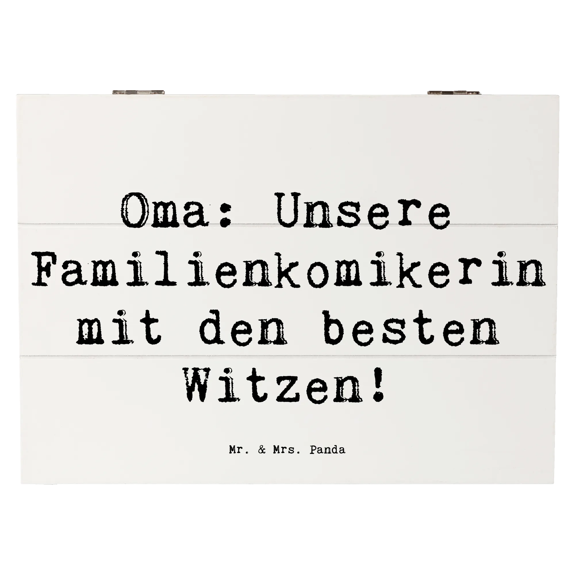 Die schöne Holzkiste von Mr. & Mrs. Panda ist das perfekte Geschenk für Deine liebste Oma! Mit einem liebevollen Motiv und dem charmanten Spruch "Oma: Unsere Familienkomikerin mit den besten Witzen!" stellt diese Kiste nicht nur einen Blickfang dar, sondern bringt auch ein Lächeln auf jedes Gesicht. Diese Holzkiste ist nicht nur hübsch anzusehen, sondern bietet zudem einen idealen Aufbewahrungsort für all die wundervollen Schätze, die Deine Oma über die Jahre gesammelt hat.