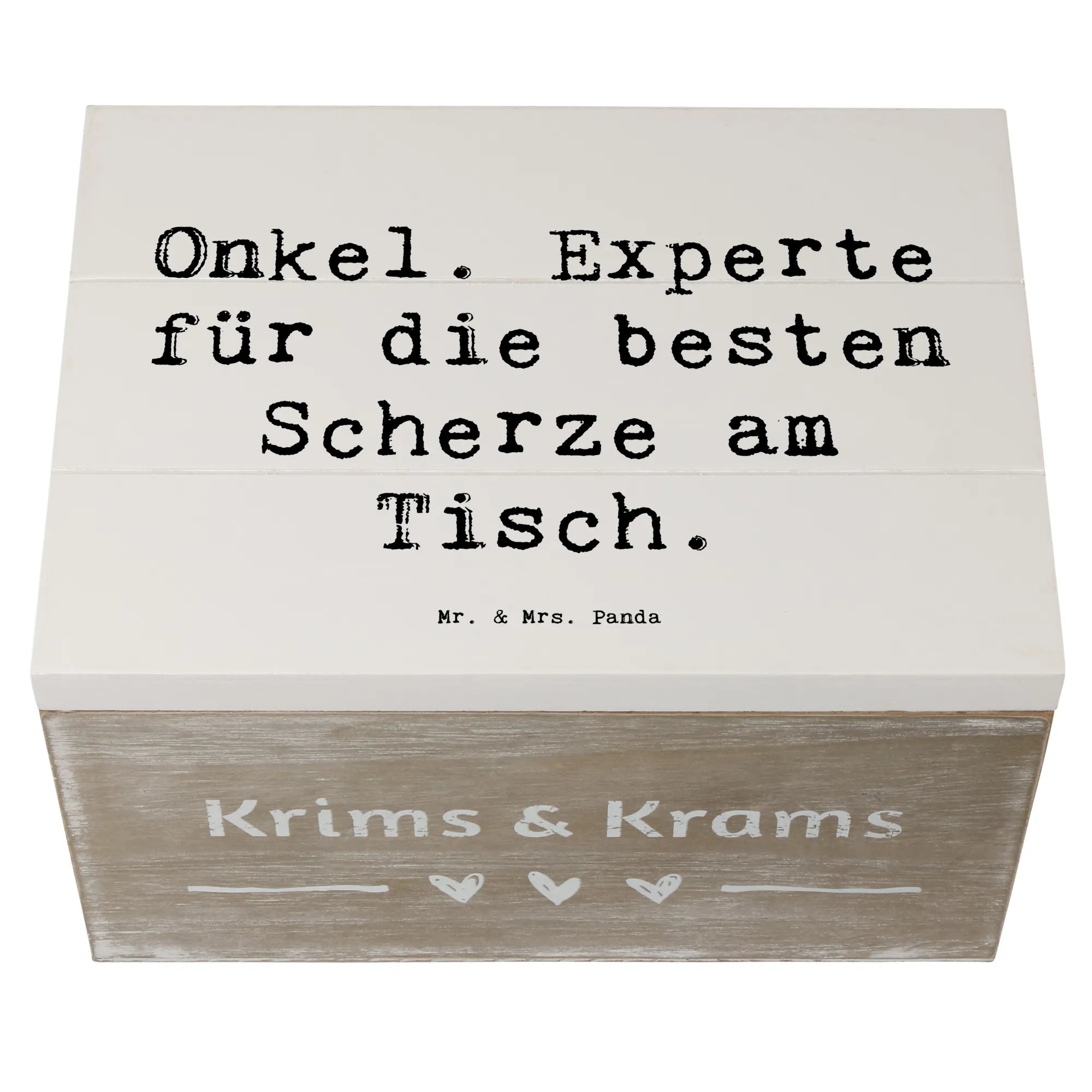 Entdecke die zauberhafte Holzkiste von Mr. & Mrs. Panda, die mit viel Liebe und einem charmanten Spruch speziell für Onkel gestaltet wurde. Diese wunderschöne Schatzkiste ist nicht nur ein hervorragender Aufbewahrungsort für all die wertvollen Erinnerungen, die Du mit Deinem Lieblingsonkel teilst, sondern auch ein ganz besonderes Geschenk für jeden Anlass!