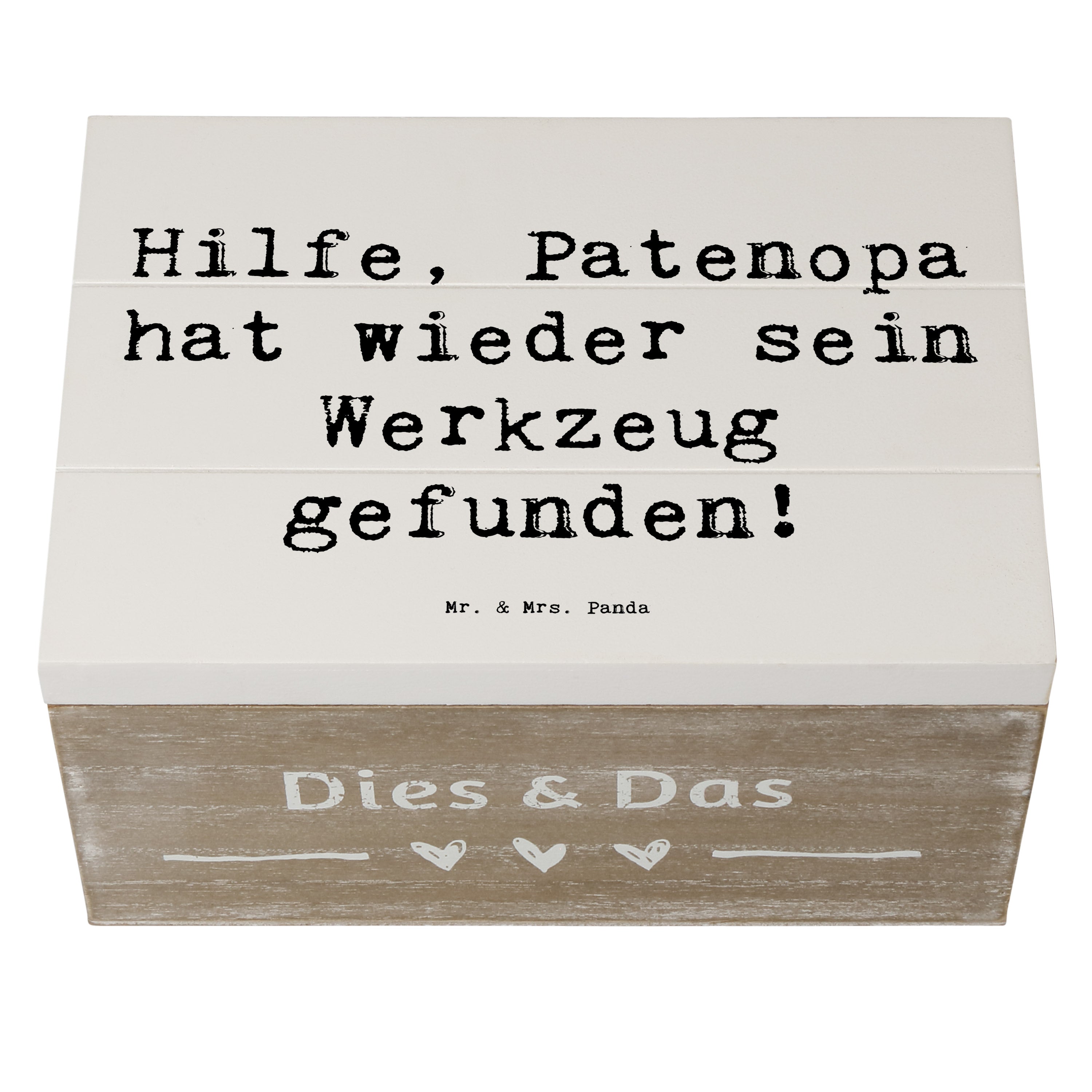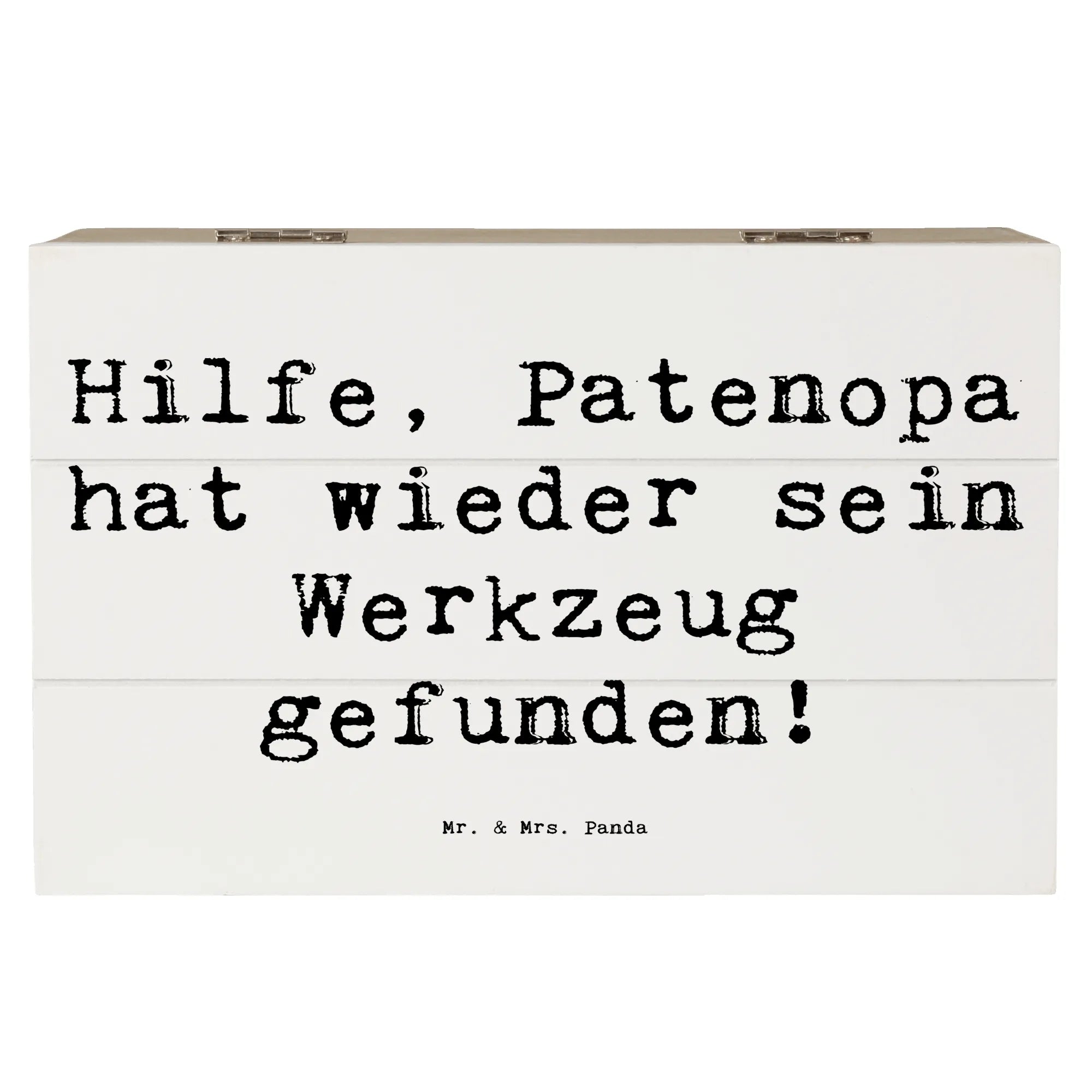 Die wunderschöne Holzkiste von Mr. & Mrs. Panda ist der perfekte Ort, um die Schätze Deines Patenopas zu bewahren. Mit einem charmanten Motiv, das den ganz besonderen Spruch trägt: "Hilfe, Patenopa hat wieder sein Werkzeug gefunden!", ist diese Kiste mehr als nur ein Aufbewahrungsort. Sie erzählt Geschichten, bewahrt Erinnerungen und zeigt Deinem Patenopa, wie viel er dir bedeutet.
