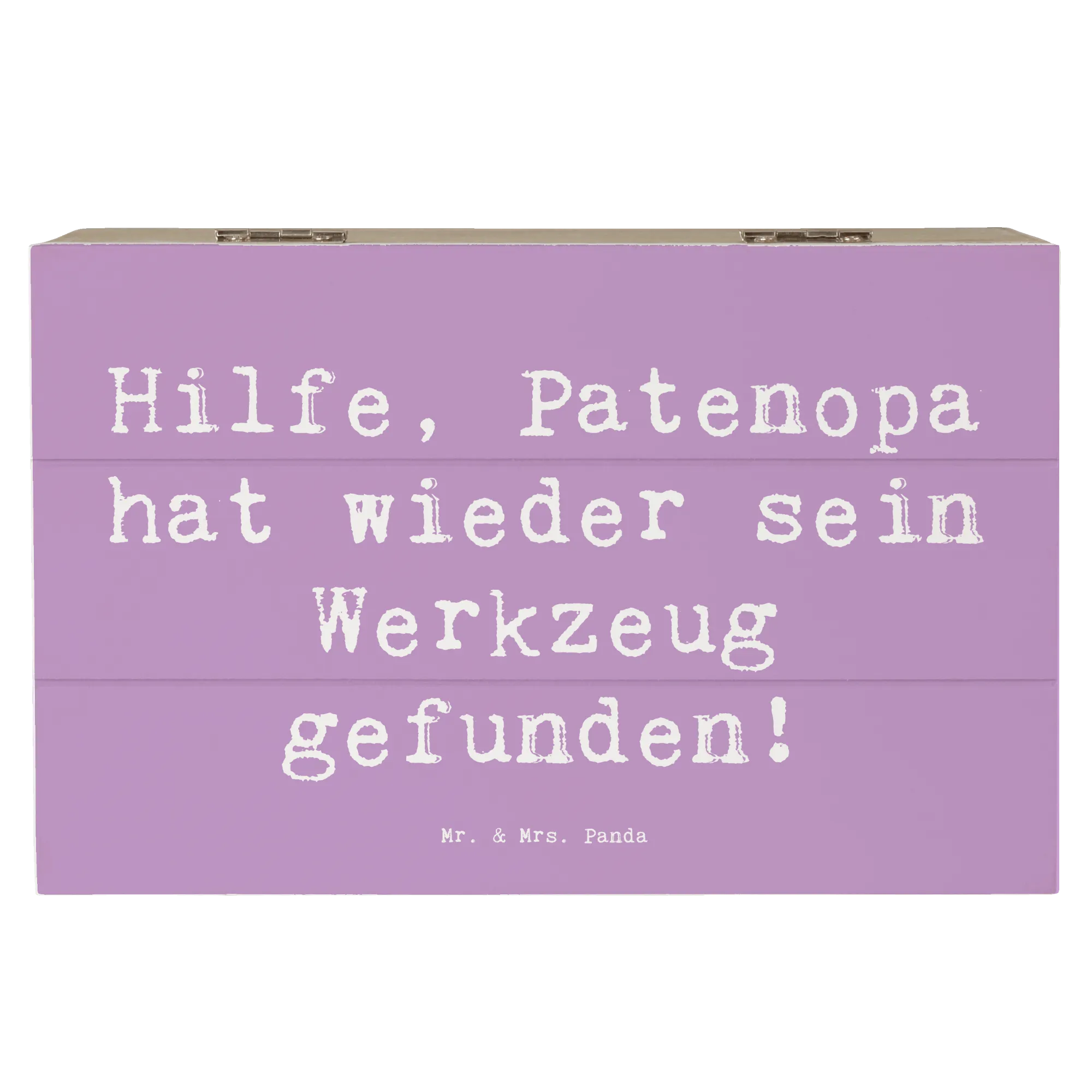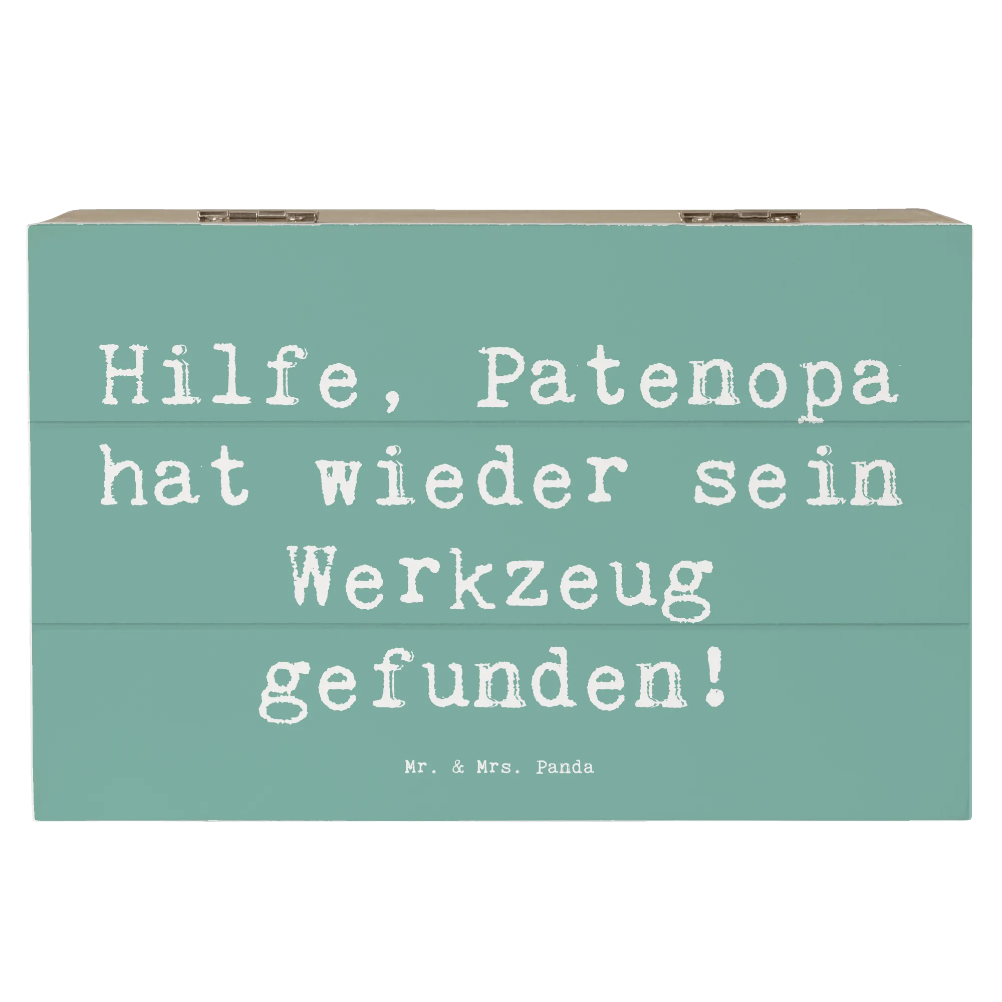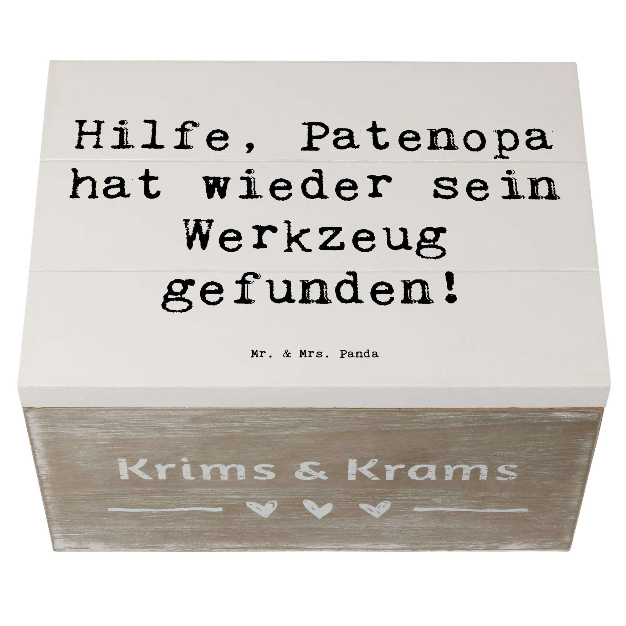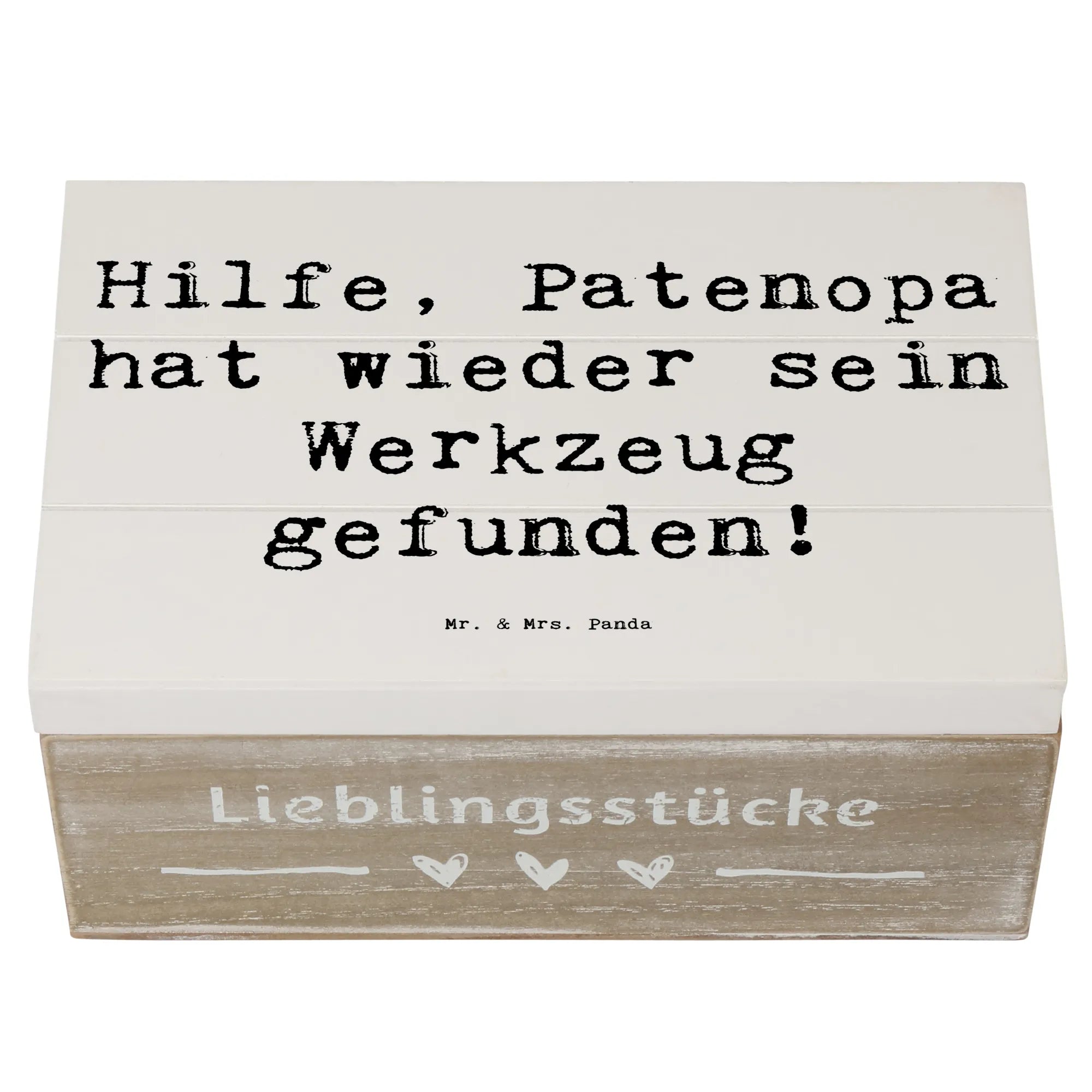 Die wunderschöne Holzkiste von Mr. & Mrs. Panda ist nicht nur eine Aufbewahrungsmöglichkeit, sondern ein wahrhaftiger Schatz für alle Patenopas und ihre Liebsten. Diese liebevoll gestaltete Erinnerungskiste ist das perfekte Geschenk für jeden Anlass. Mit einem charmanten Motiv, das die Rolle des Patenopa feiert, nämlich "Hilfe, Patenopa hat wieder sein Werkzeug gefunden!", ist diese Kiste ein Highlight in jedem Zuhause.