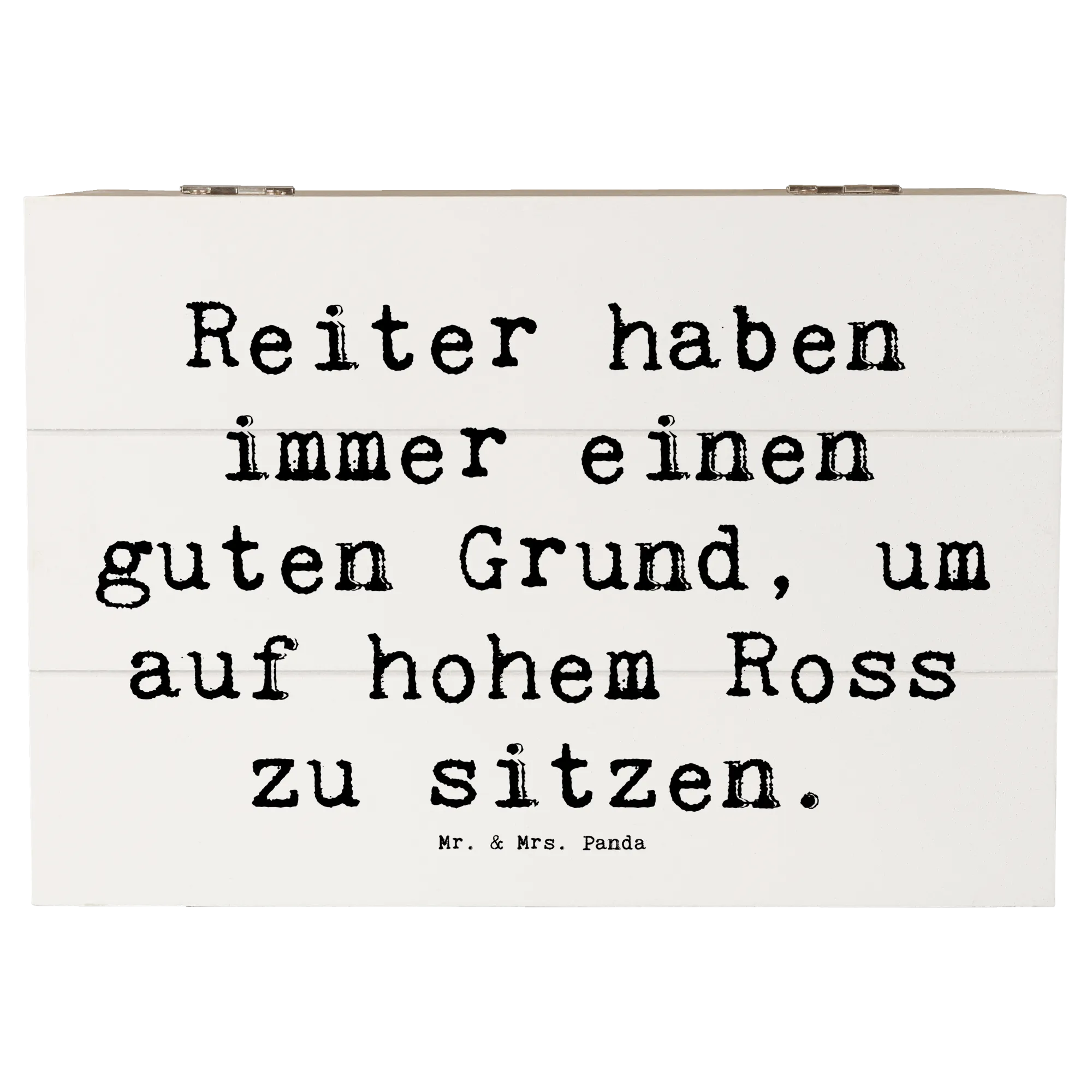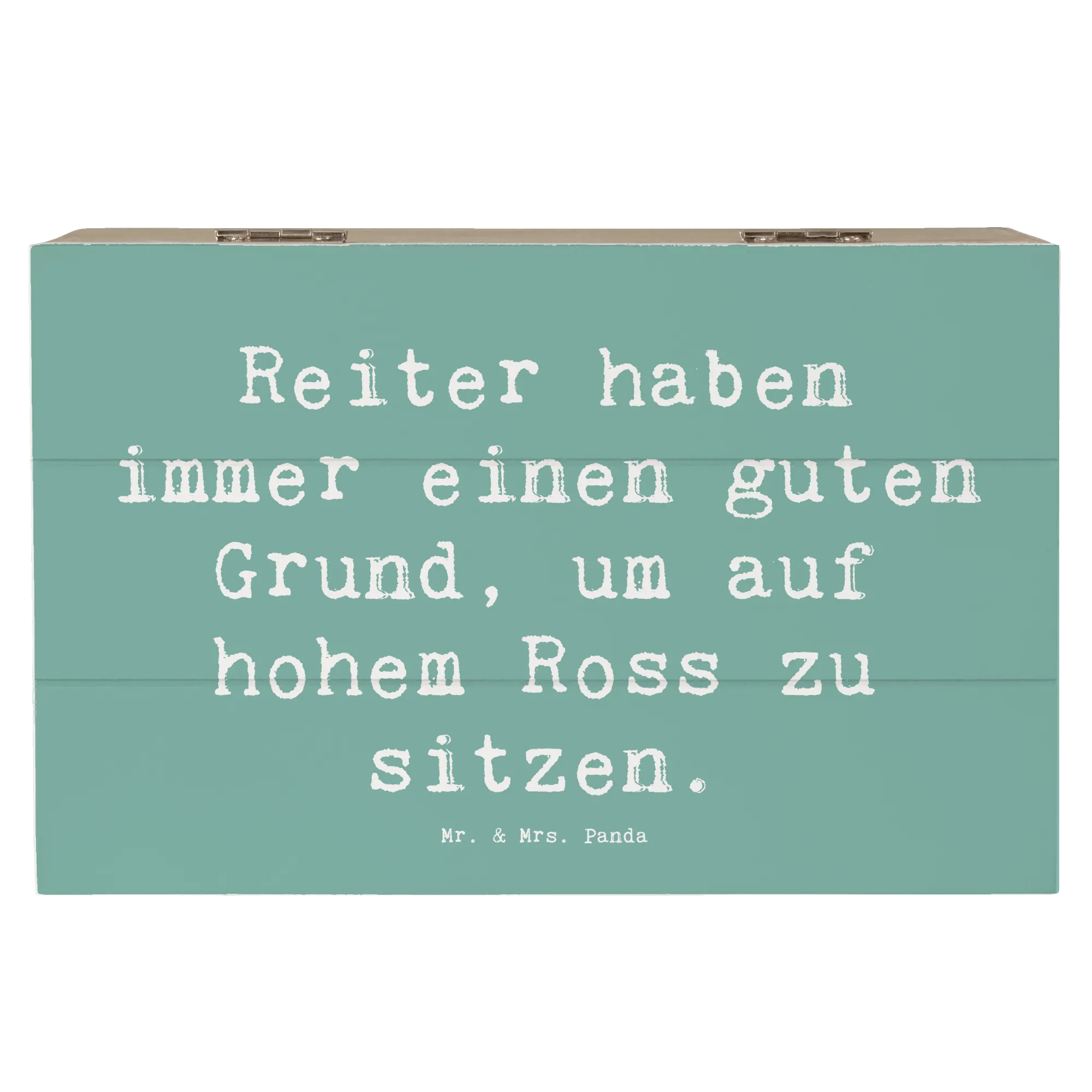 Mr. & Mrs. Panda Holzkiste Reitsport – das perfekte Geschenk für alle Pferde- und Reitsportfans! Auf dem Deckel steht der liebevolle Spruch „Reiter haben immer einen guten Grund, um auf hohem Ross zu sitzen.“ und sorgt für ein Lächeln bei jedem Öffnen. Diese Aufbewahrungsbox aus der Kollektion Sportarten verbindet niedliches Design mit praktischer Funktion.