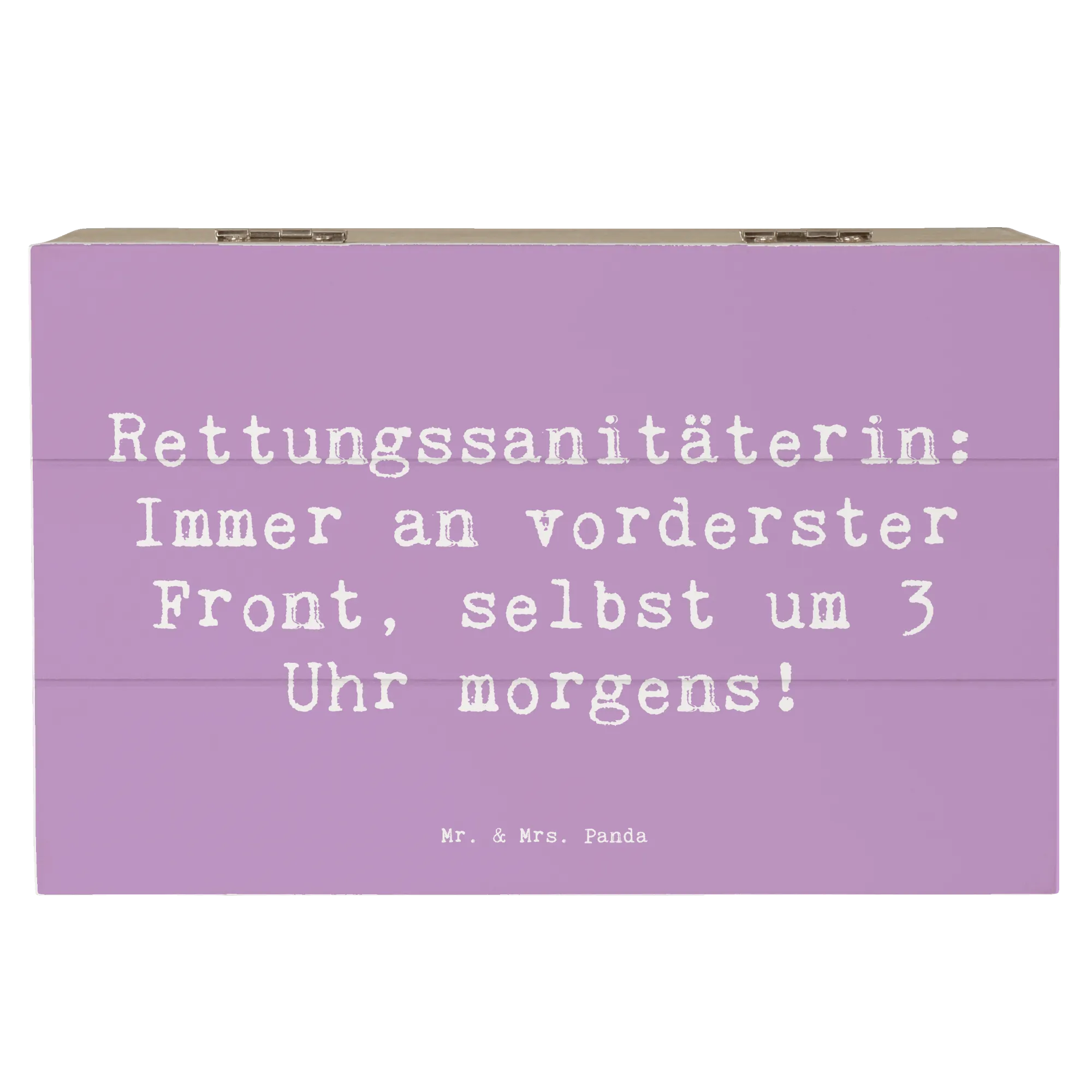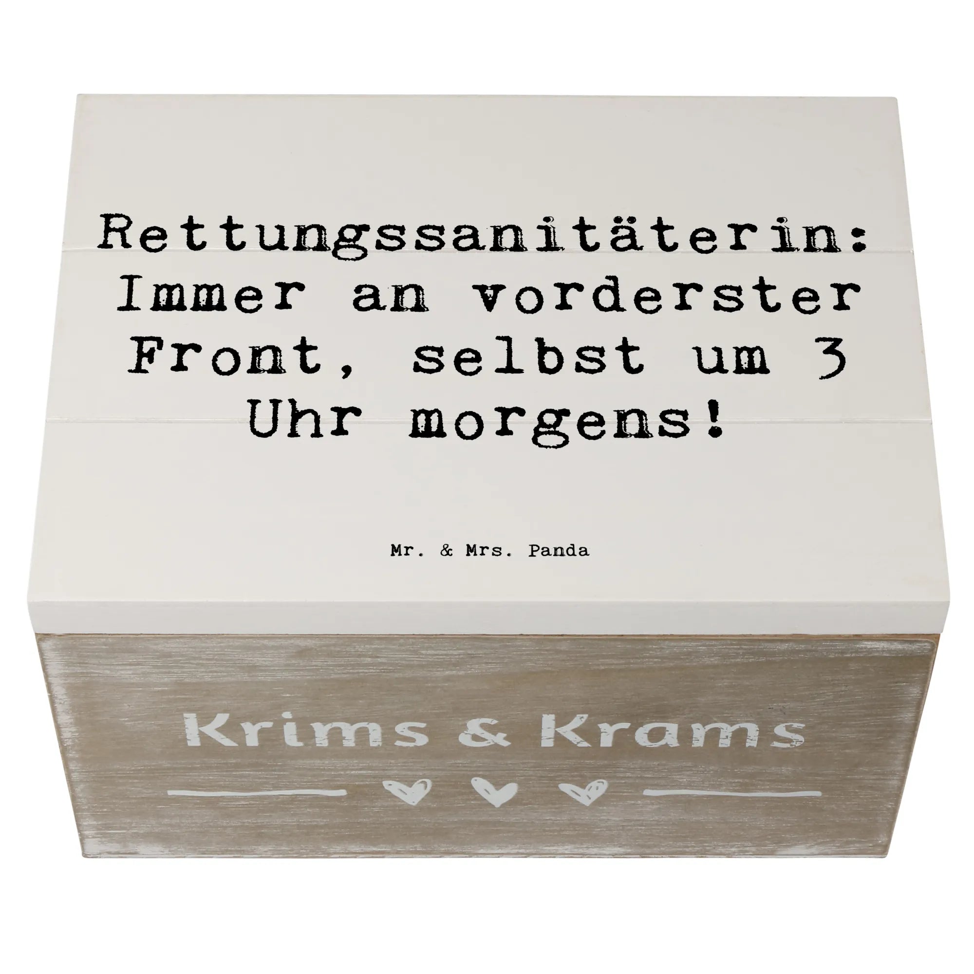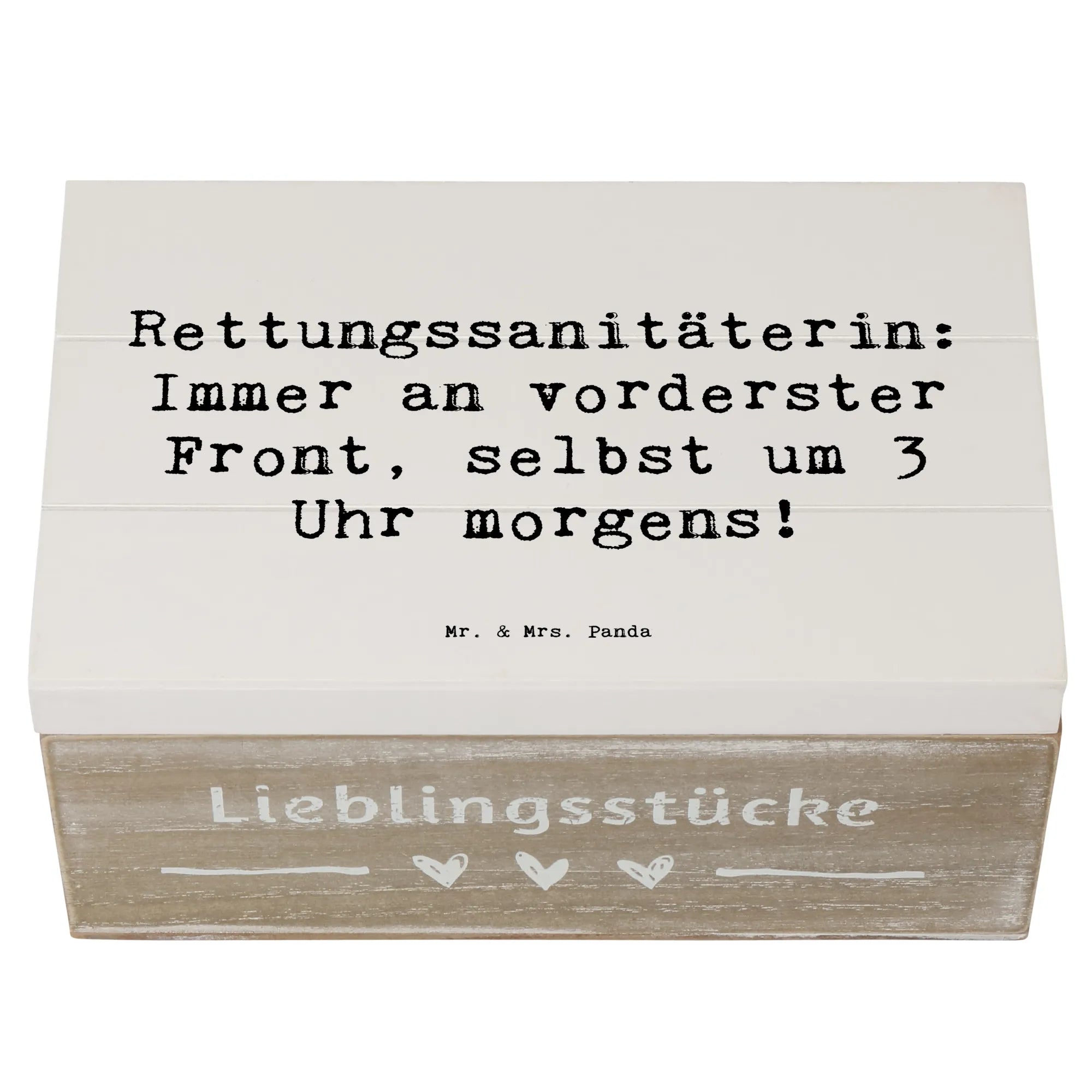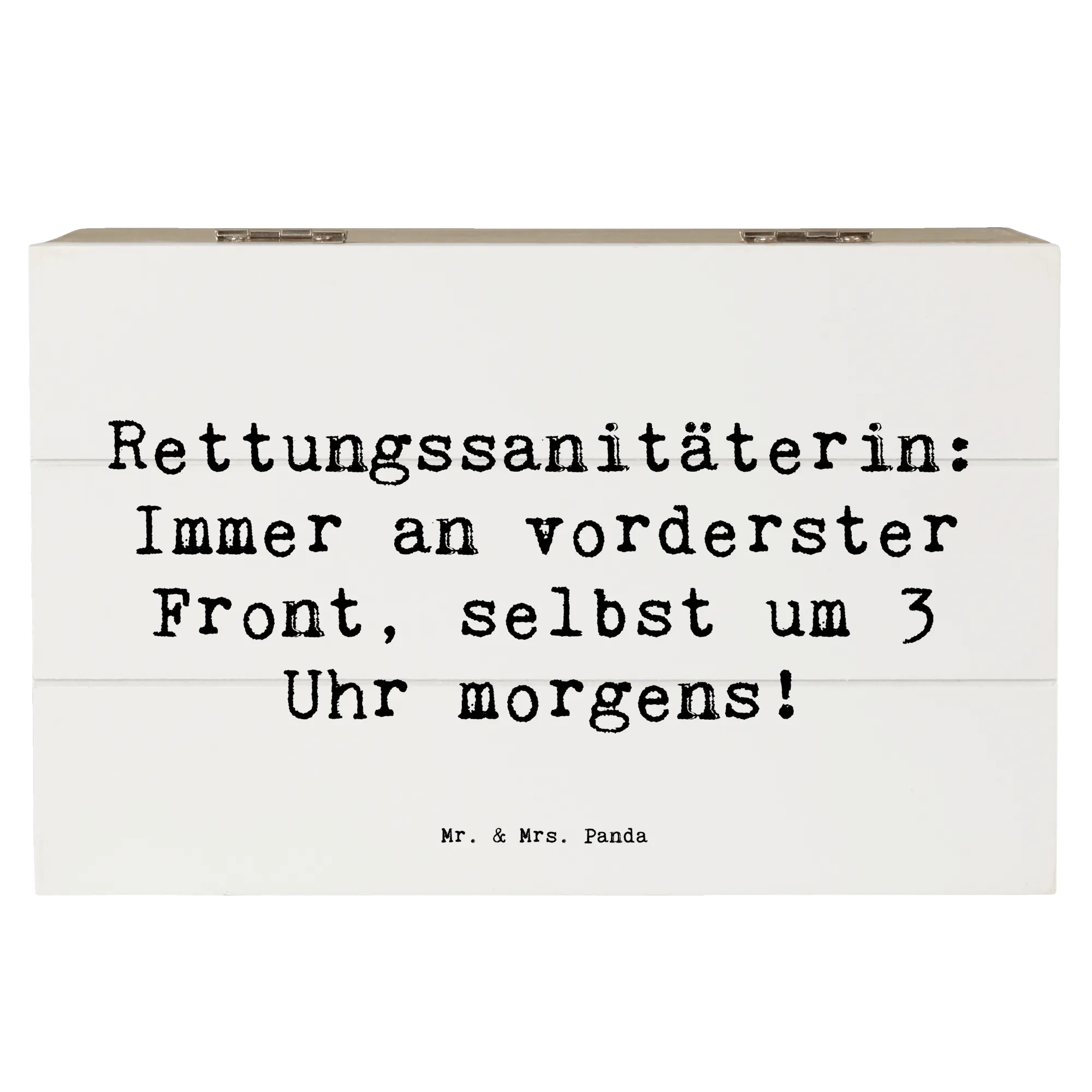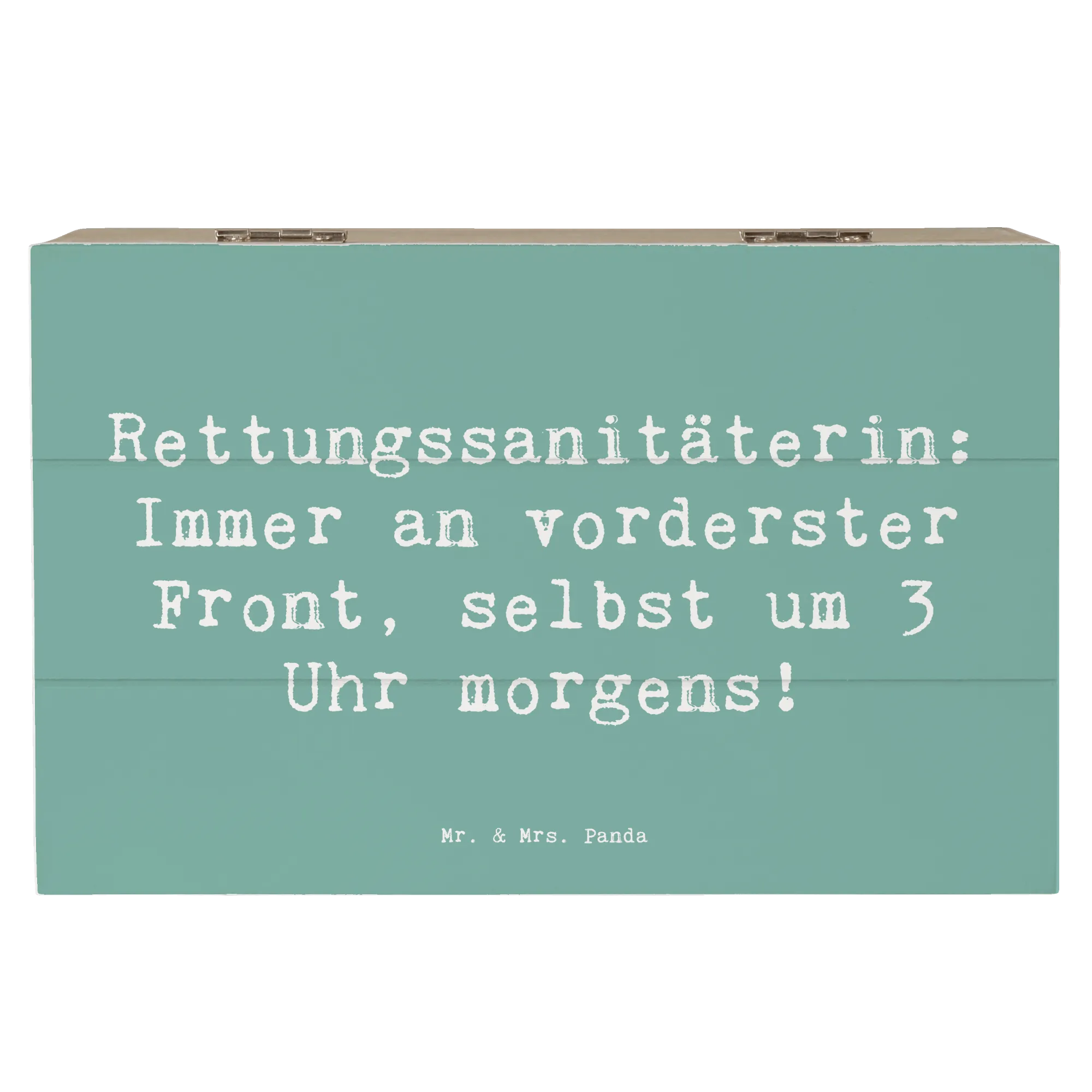 Die wunderschöne Holzkiste von Mr. & Mrs. Panda mit dem Motiv "Rettungssanitäterin: Immer an vorderster Front, selbst um 3 Uhr morgens!" ist das perfekte Geschenk für all jene, die sich in diesem wichtigen Beruf engagieren.