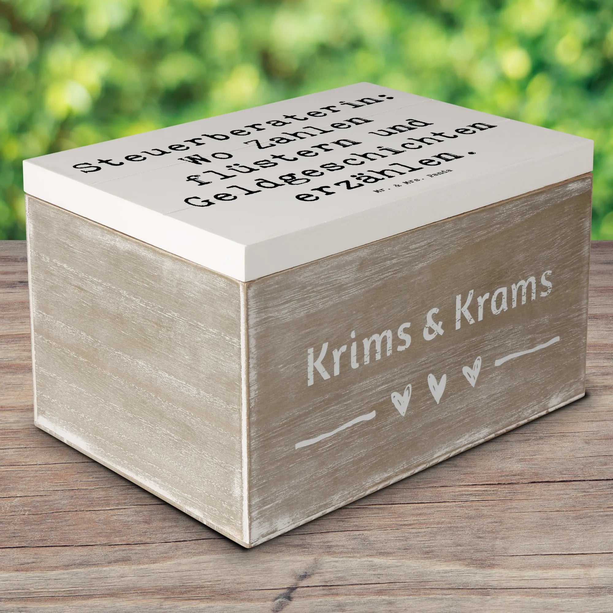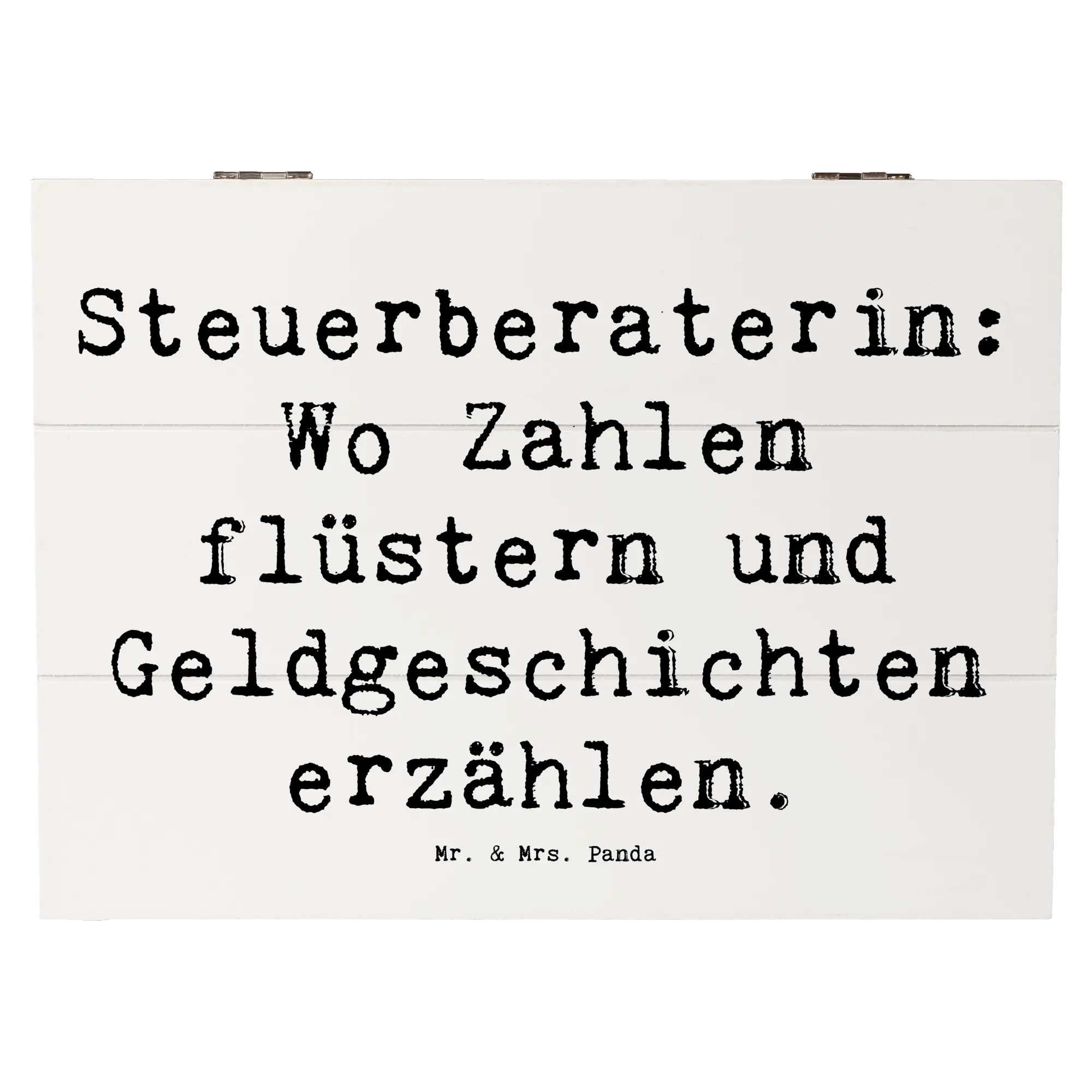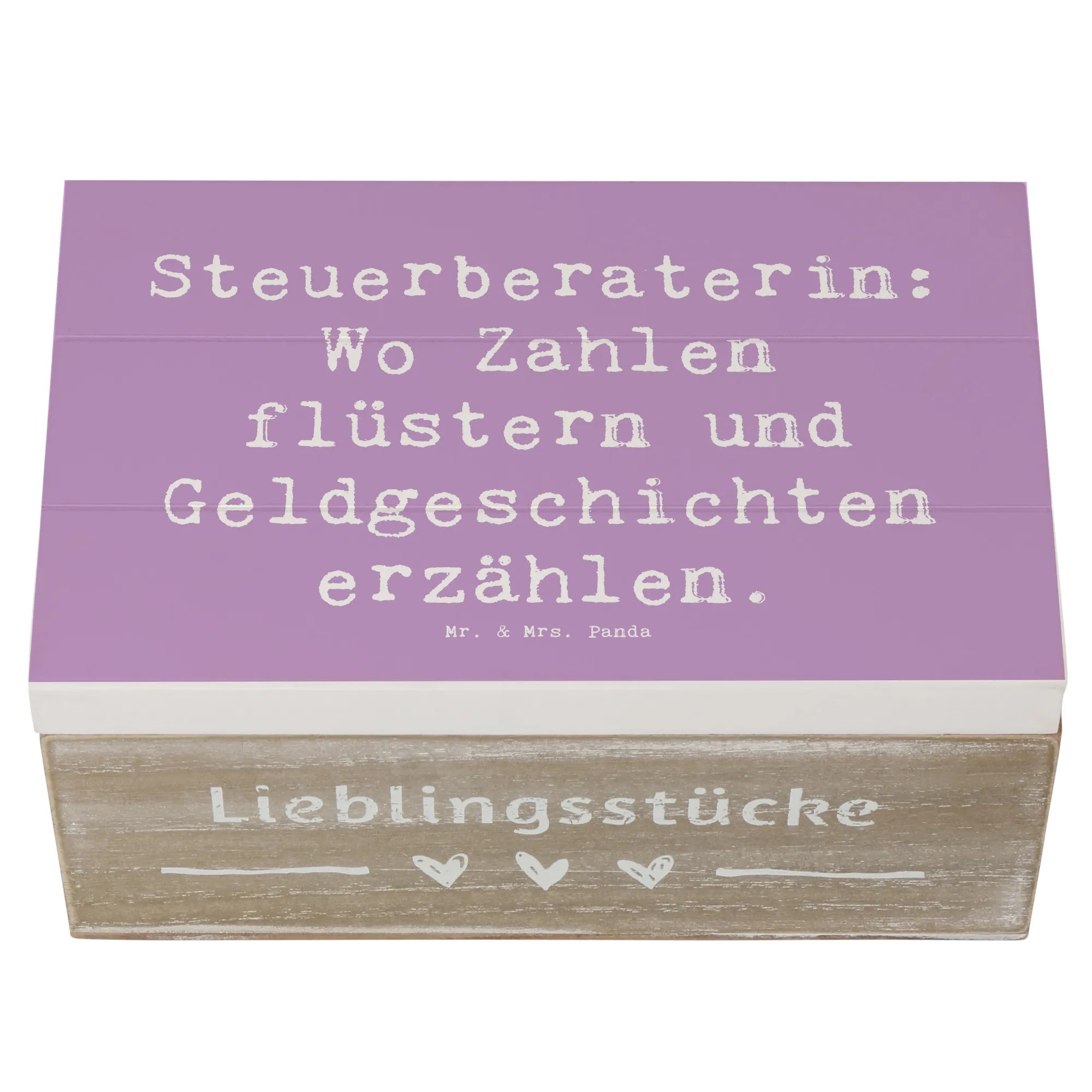 Die wunderschöne Holzkiste mit dem Motiv "Steuerberaterin: Wo Zahlen flüstern und Geldgeschichten erzählen" von Mr. & Mrs. Panda ist das perfekte Geschenk für alle Steuerberaterinnen und Zahlenliebhaberinnen! Diese liebevoll gestaltete Erinnerungskiste eignet sich wunderbar als Aufbewahrungsort für ganz besondere Schätze. Egal, ob Du Fotos, kleine Erinnerungsstücke oder vielleicht auch Dekorationen aufbewahren möchtest, diese Schatzkiste ist einfach ideal dafür.