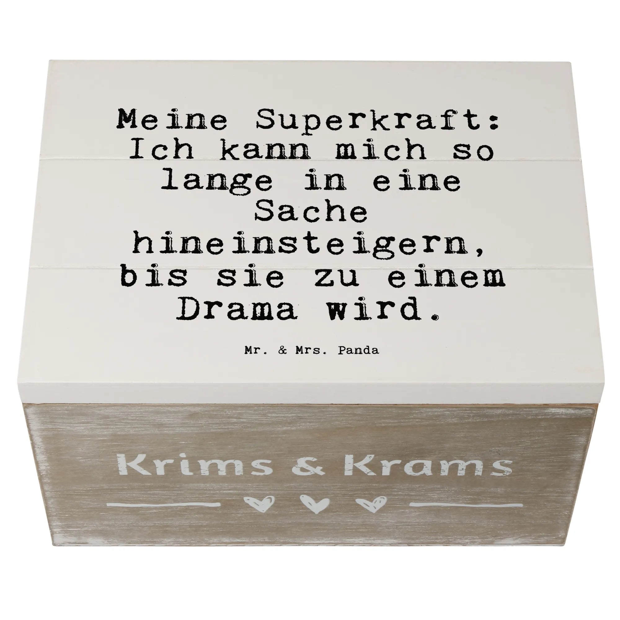 Holzkiste Sprüche und Zitate Meine Superkraft: Ich kann mich so lange in eine Sache hineinsteigern, bis sie zu einem Drama wird. - 25 x 18 cm - Hartfaser