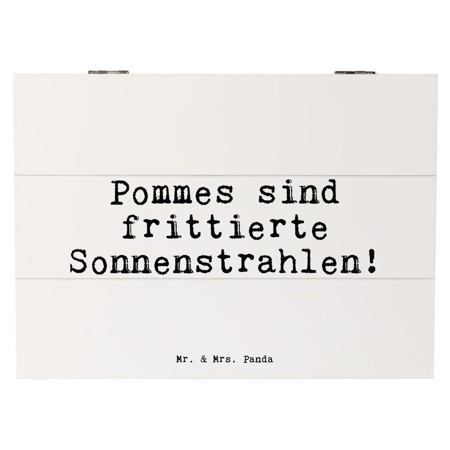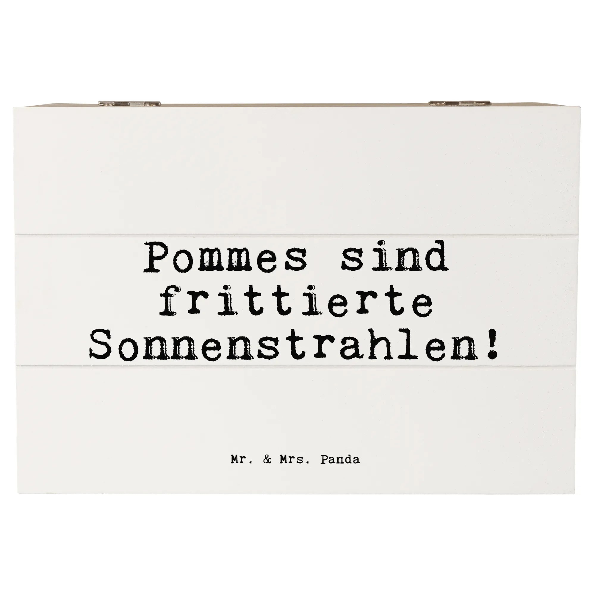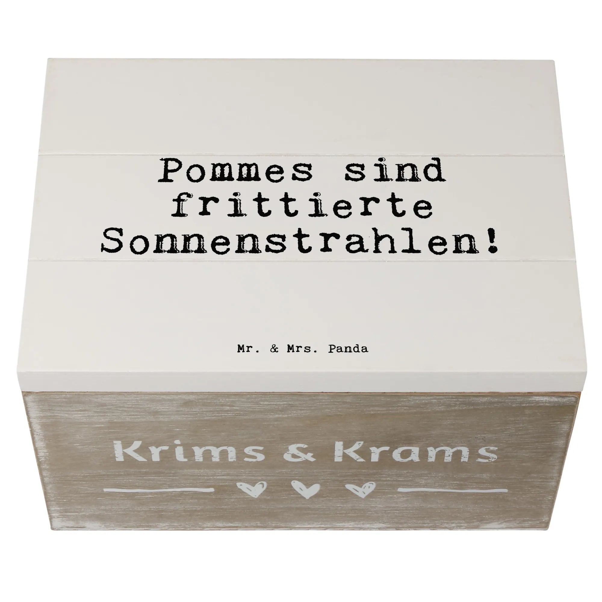Entdecke die wundervolle Holzkiste von Mr. & Mrs. Panda mit dem lustigen Spruch "Pommes sind frittierte Sonnenstrahlen!". Diese erstaunliche Kiste ist nicht nur ein idealer Aufbewahrungsort für alle deine persönlichen Schätze, sondern auch das perfekte Geschenk für Freunde und Familie, die den Humor und die Freude am Essen schätzen.