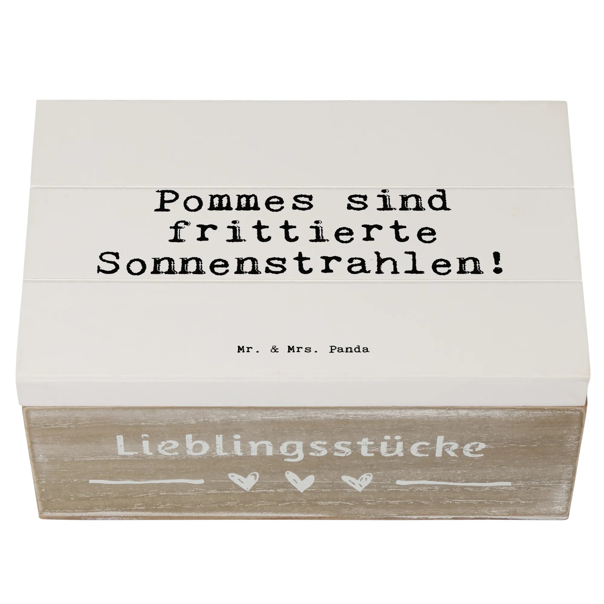 Die wunderschöne Holzkiste "Pommes sind frittierte Sonnenstrahlen!" von Mr. & Mrs. Panda ist das ideale Geschenk für alle, die Humor und Freude am Essen lieben. Diese praktische Schatzkiste bietet nicht nur einen stilvollen Aufbewahrungsort für Deine liebsten Erinnerungen, sondern bringt auch ein Lächeln auf die Gesichter der Beschenkten.