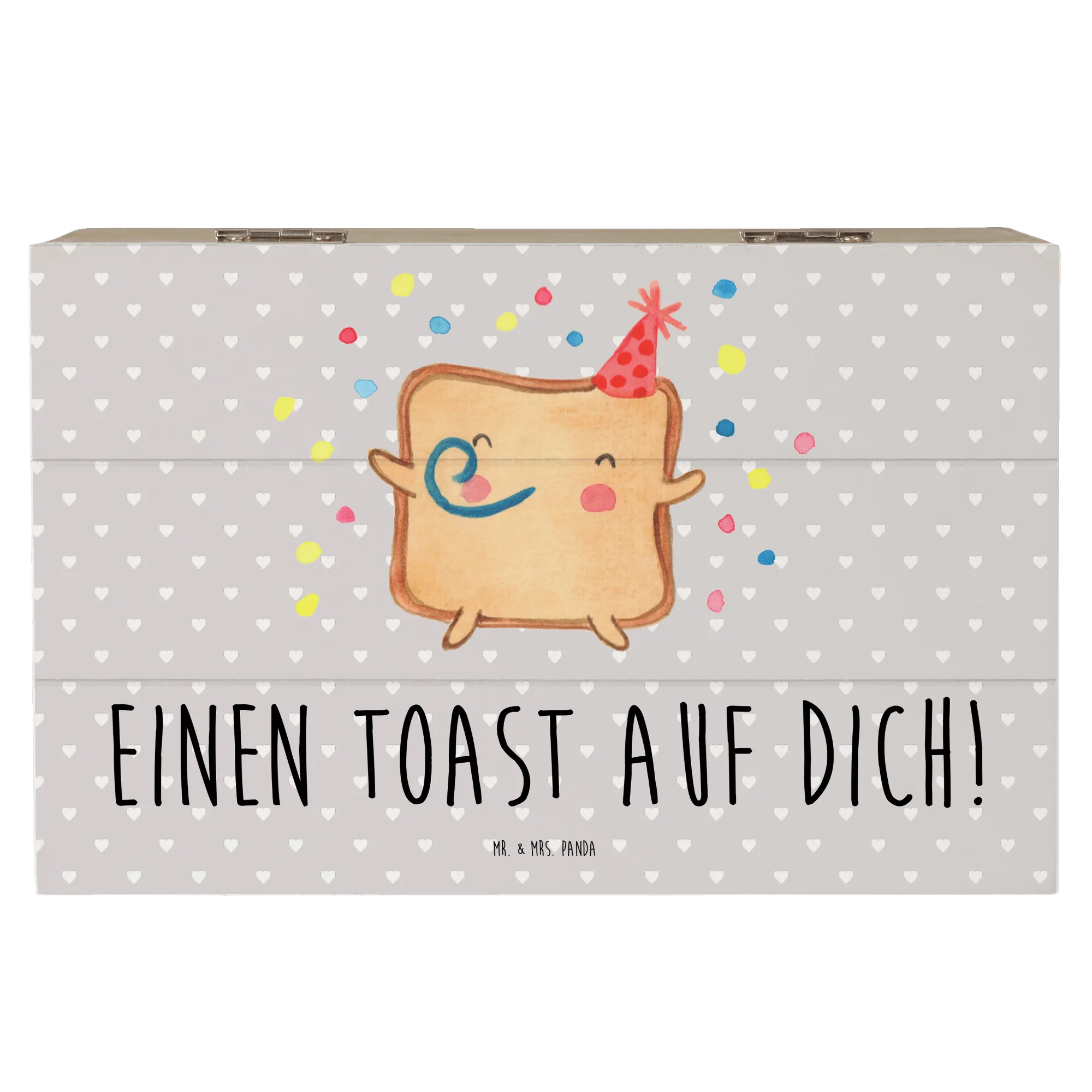 Entdecke die wundervolle Holzkiste "Toast Party" aus der Liebe Kollektion von Mr. & Mrs. Panda! Diese zauberhafte Erinnerungskiste ist nicht nur praktisch, sondern auch ein echter Hingucker. Sie ist perfekt als Aufbewahrungsort für all deine kostbaren Schätze – sei es für Fotos, kleine Erinnerungen aus der Kindheit, oder besondere Geschenke für deine Liebsten.