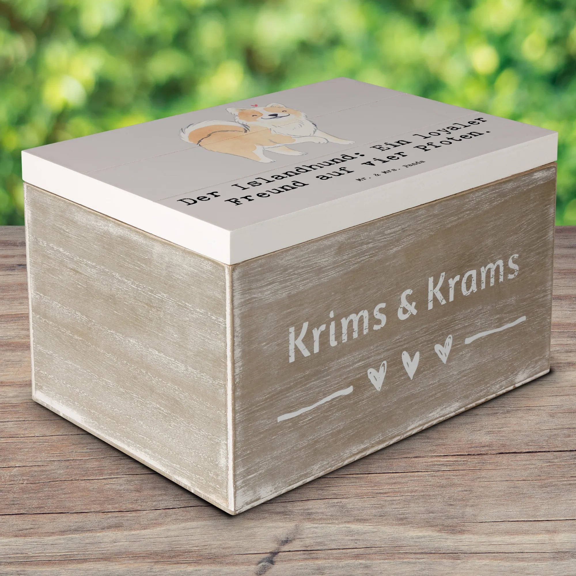 Entdecke die wunderschöne Holzkiste mit dem Motiv des Islandhundes von Mr. & Mrs. Panda – ein treuer Freund und Begleiter!