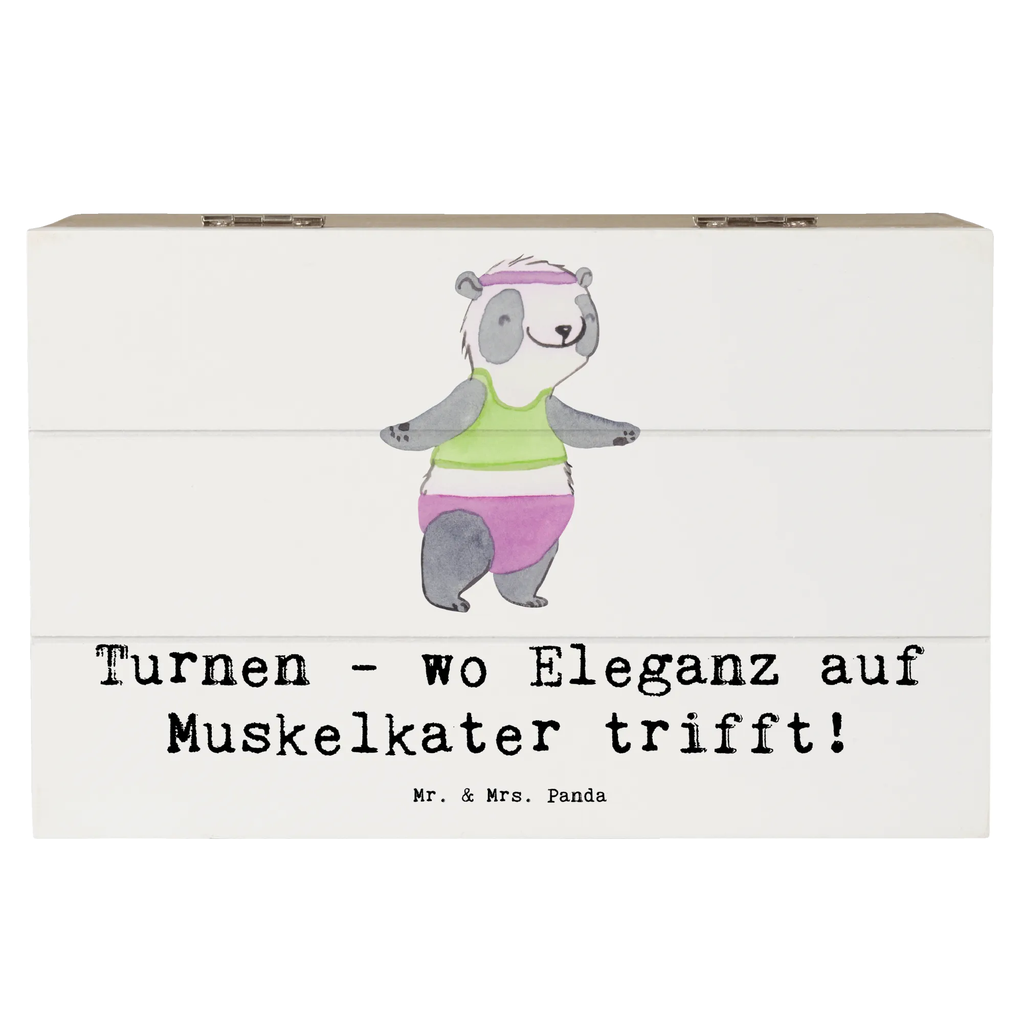 Entdecke die zauberhafte Holzkiste von Mr. & Mrs. Panda, die mit einem wunderschönen Turnen-Motiv und dem Spruch 'Turnen - wo Eleganz auf Muskelkater trifft!' verziert ist. Diese Kiste ist nicht nur ein praktischer Aufbewahrungsort für all Deine Schätze, sondern auch ein fantastisches Geschenk für jeden Sportliebhaber.