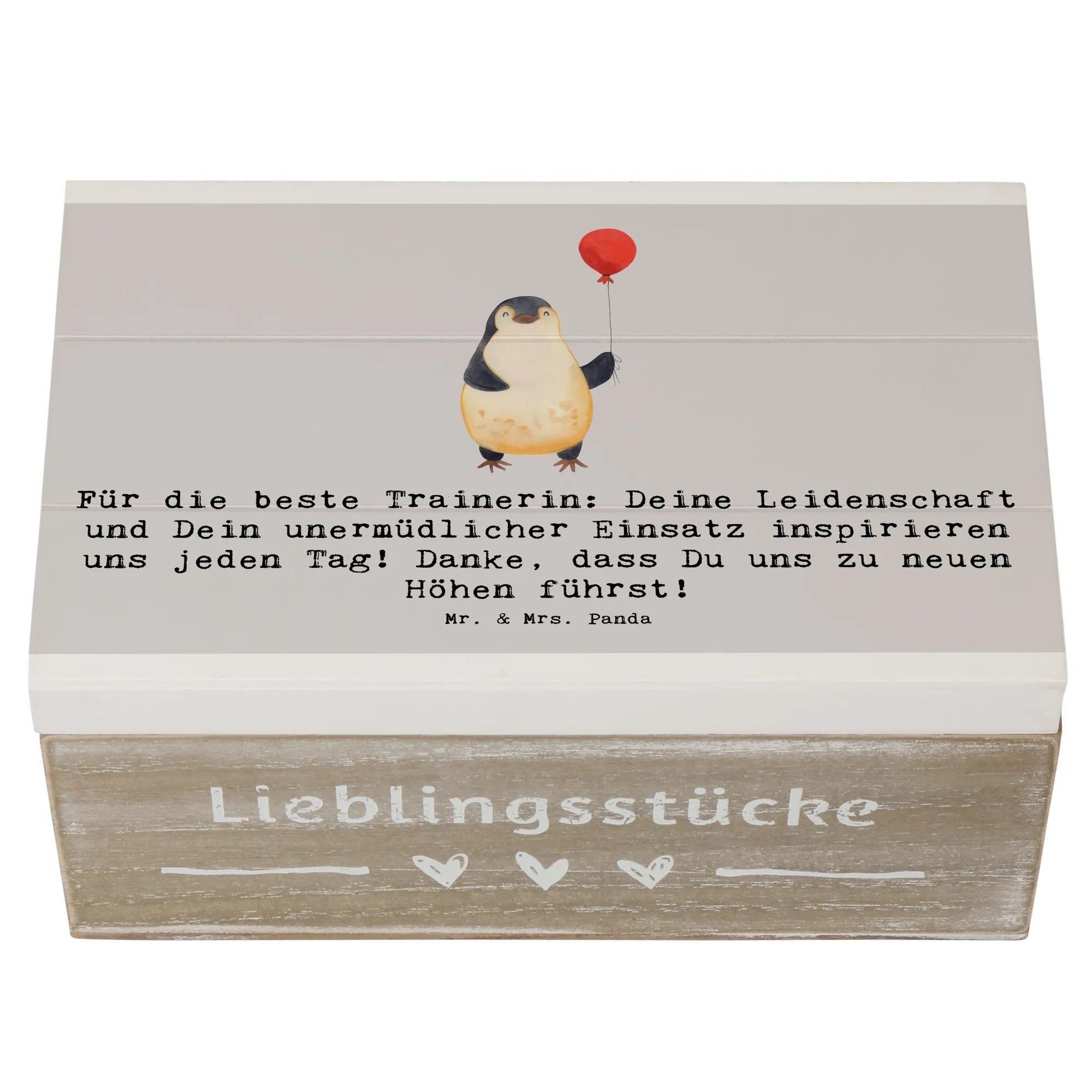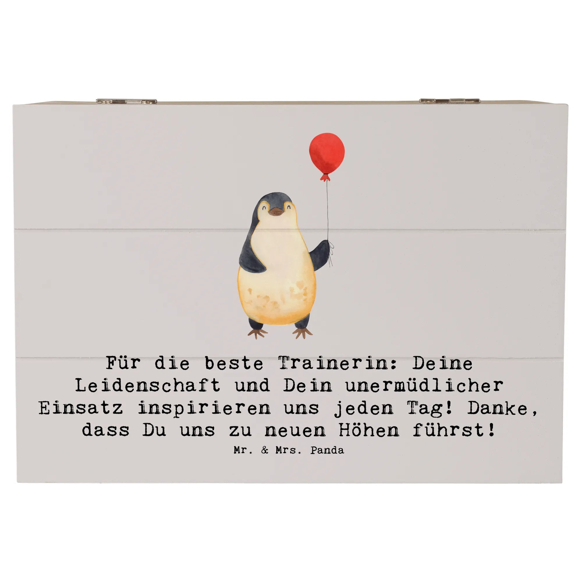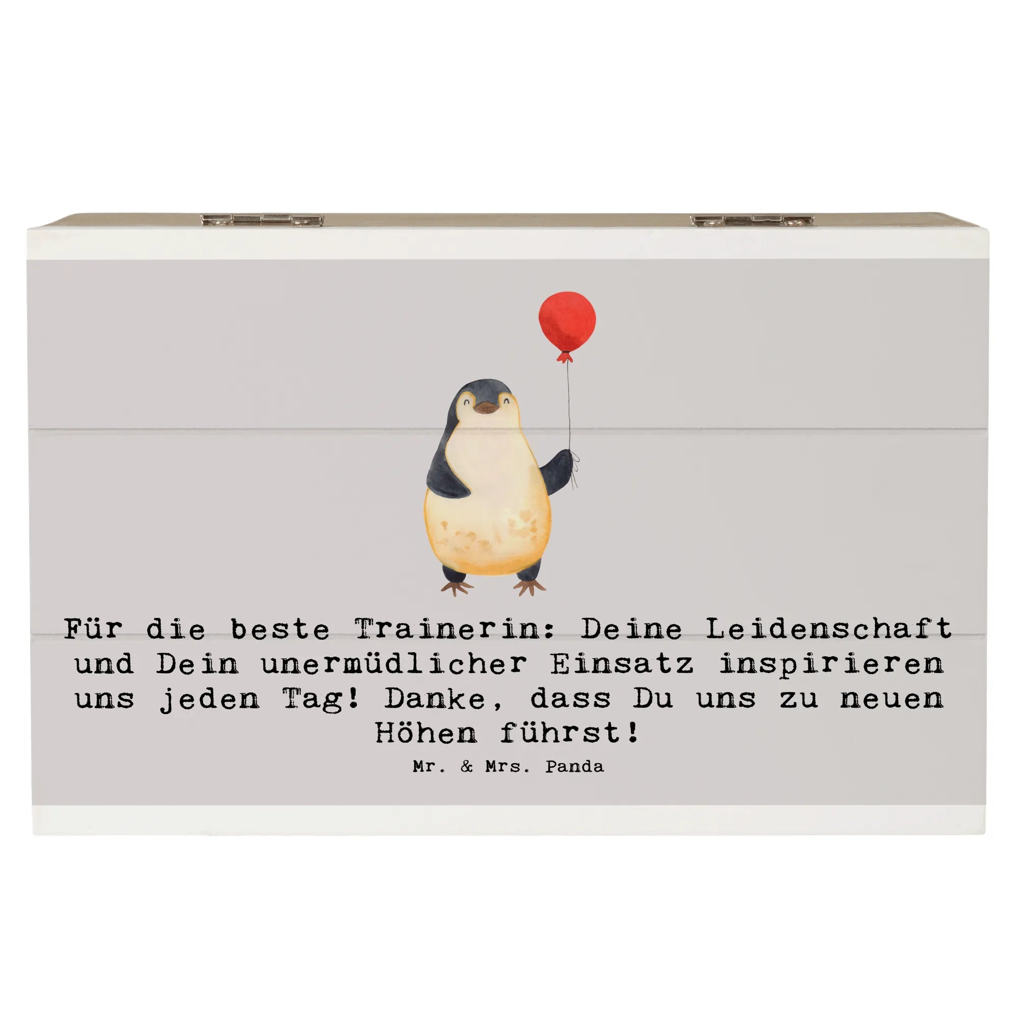 Eine wunderschöne Holzkiste von Mr. & Mrs. Panda – bedruckt mit dem liebevollen Motiv "Turnen Trainerin" und dem herzlichen Spruch: „Für die beste Trainerin: Deine Leidenschaft und Dein unermüdlicher Einsatz inspirieren uns jeden Tag! Danke, dass Du uns zu neuen Höhen führst!“ Diese Erinnerungskiste verbindet Stil und Gefühl und ist das ideale Geschenk, um einer Trainerin Danke zu sagen.