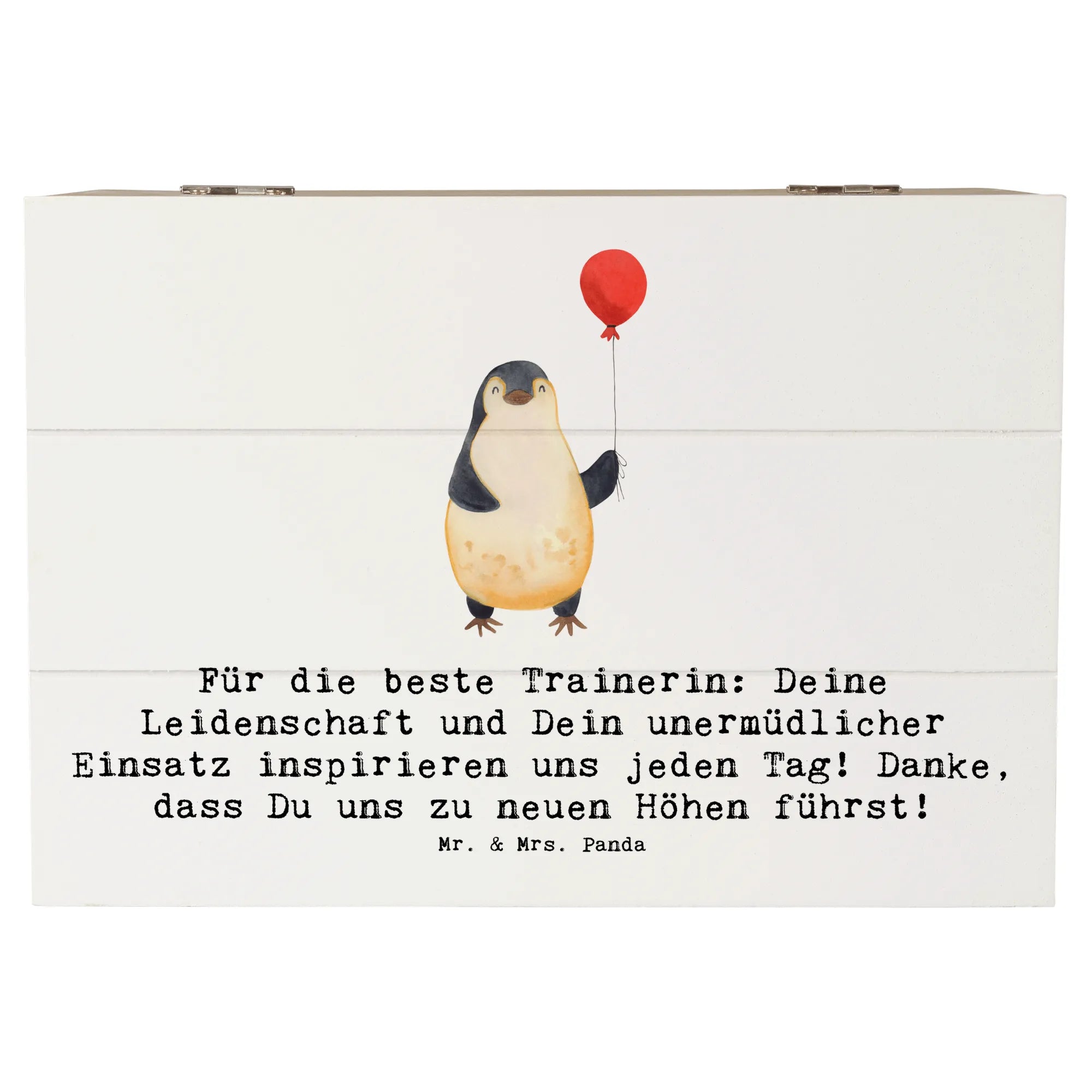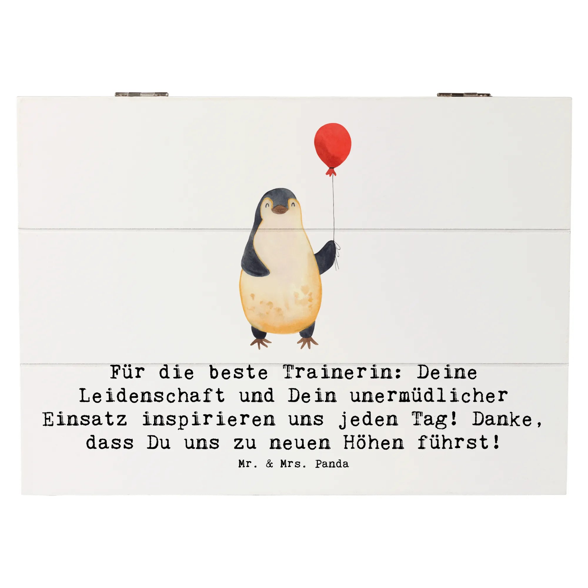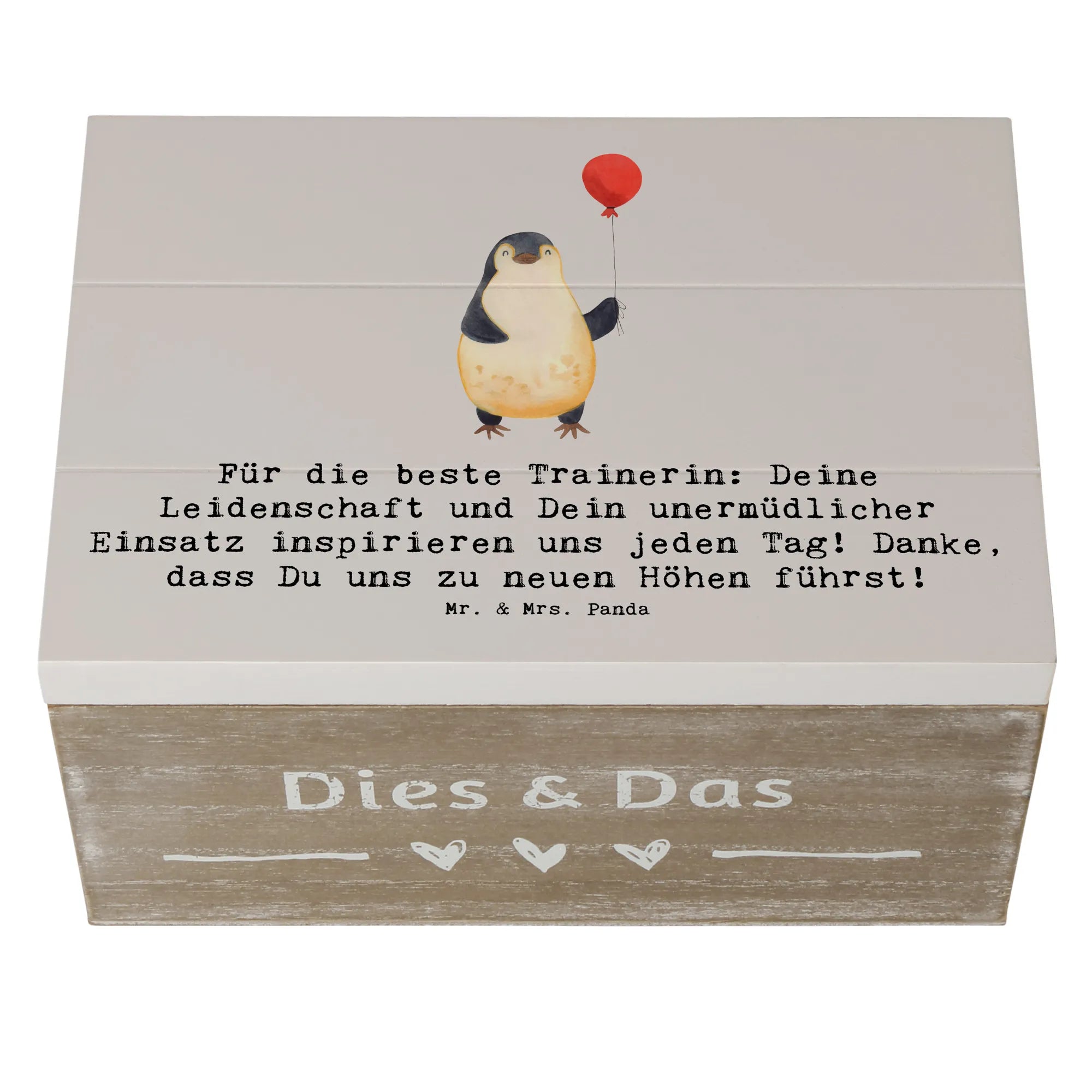 Die perfekte Holzkiste für Deine Trainerin ist endlich da! Diese wunderschöne Holzkiste von Mr. & Mrs. Panda ist nicht nur praktisch, sondern auch eine liebevolle Geste der Anerkennung. Bedruckt mit dem herzlichen Slogan "Für die beste Trainerin: Deine Leidenschaft und Dein unermüdlicher Einsatz inspirieren uns jeden Tag! Danke, dass Du uns zu neuen Höhen führst!", ist diese Erinnerungskiste ein tolles Dankeschön für all die Mühe, die sie in ihr Training steckt. Ob als Abschiedsgeschenk, Dankeschön oder einfach nur so – diese Schatzkiste wird Deine Trainerin garantiert berühren.