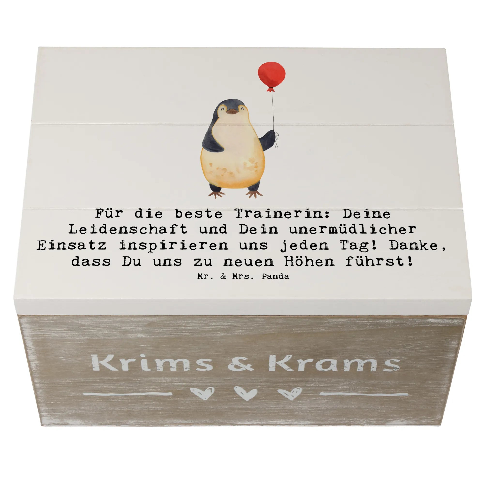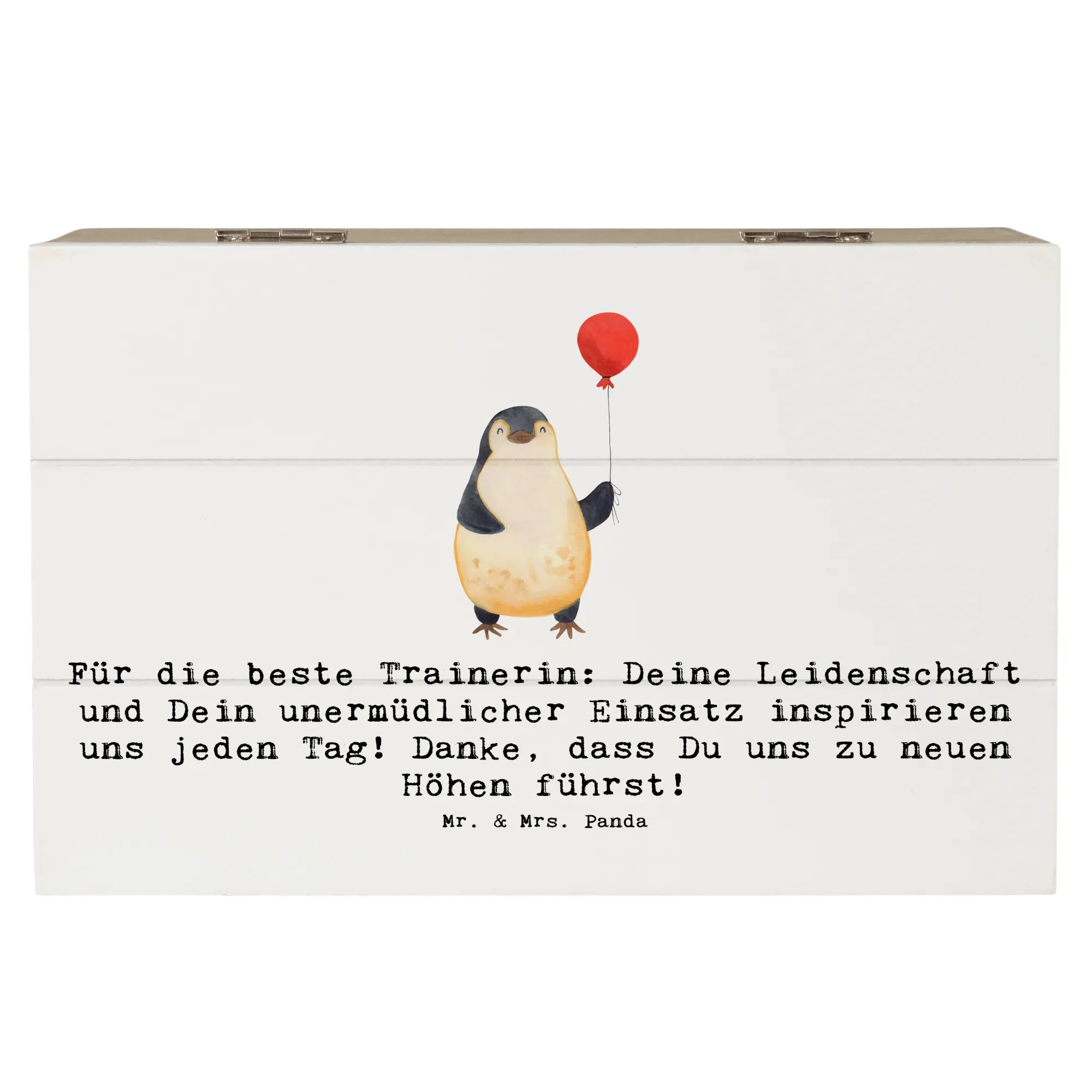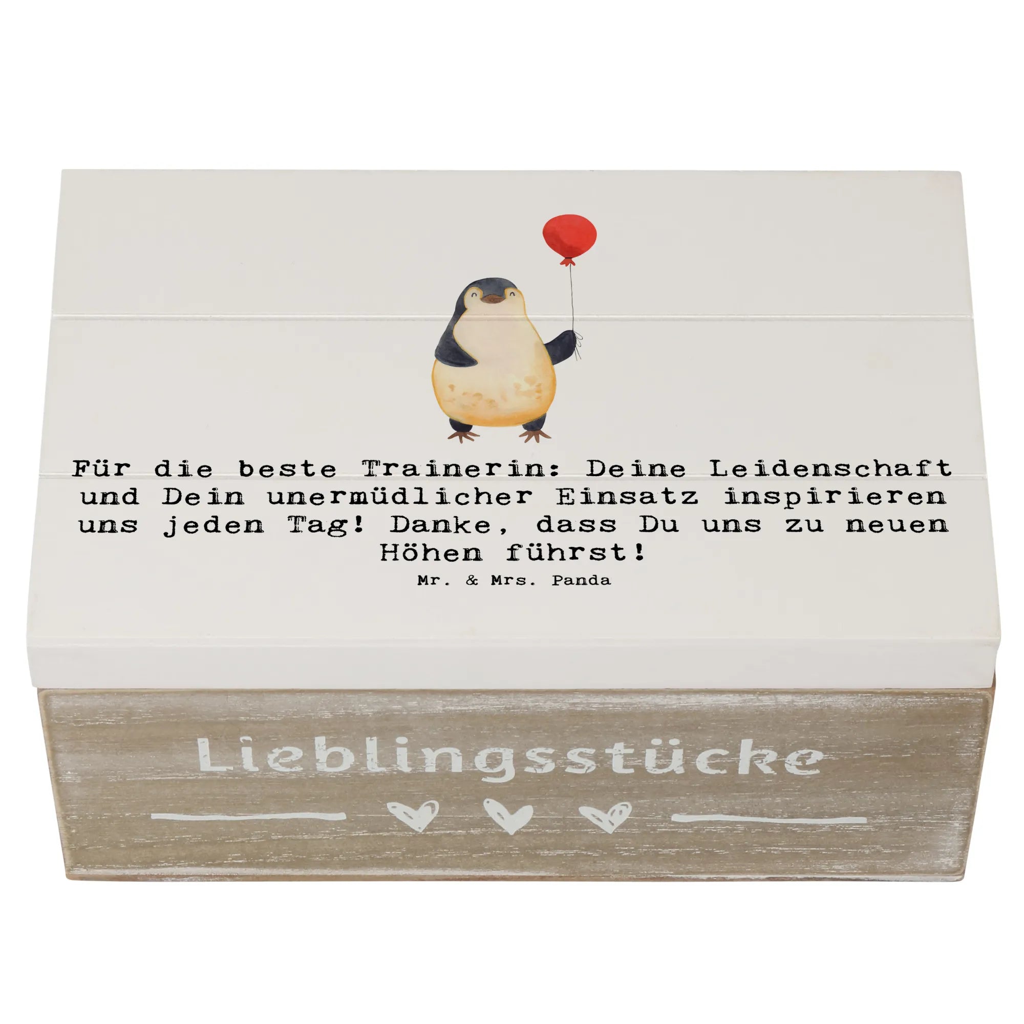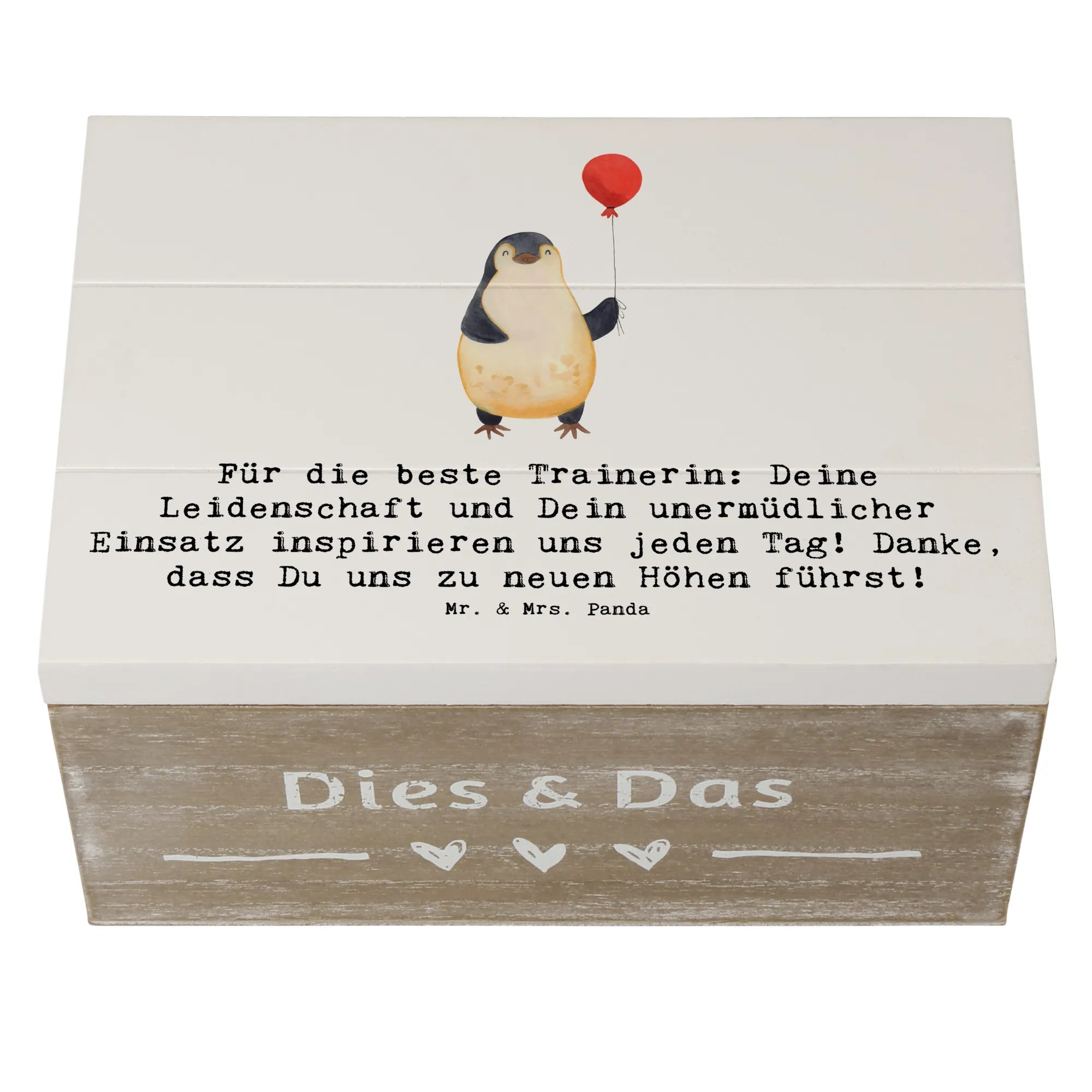 Die perfekte Holzkiste für Deine Trainerin ist endlich da! Diese wunderschöne Holzkiste von Mr. & Mrs. Panda ist nicht nur praktisch, sondern auch eine liebevolle Geste der Anerkennung. Bedruckt mit dem herzlichen Slogan "Für die beste Trainerin: Deine Leidenschaft und Dein unermüdlicher Einsatz inspirieren uns jeden Tag! Danke, dass Du uns zu neuen Höhen führst!", ist diese Erinnerungskiste ein tolles Dankeschön für all die Mühe, die sie in ihr Training steckt. Ob als Abschiedsgeschenk, Dankeschön oder einfach nur so – diese Schatzkiste wird Deine Trainerin garantiert berühren.