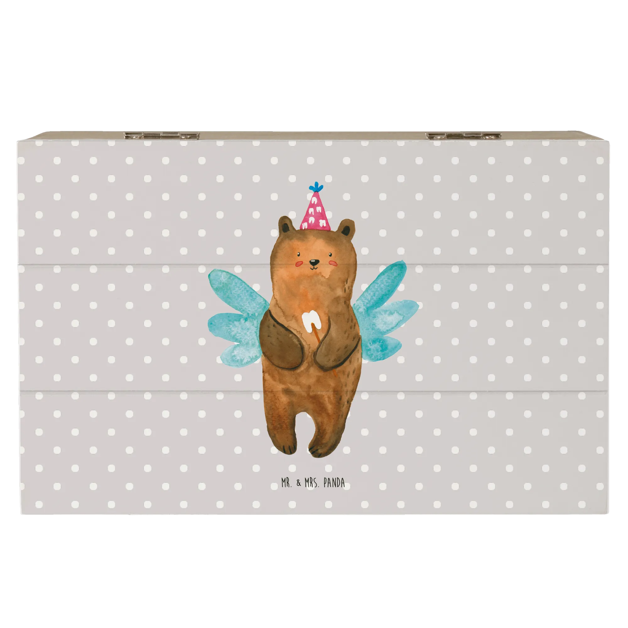 Holzkiste Zahnfee Bär - 22 x 15 cm - mit Spruch - Grau Pastell