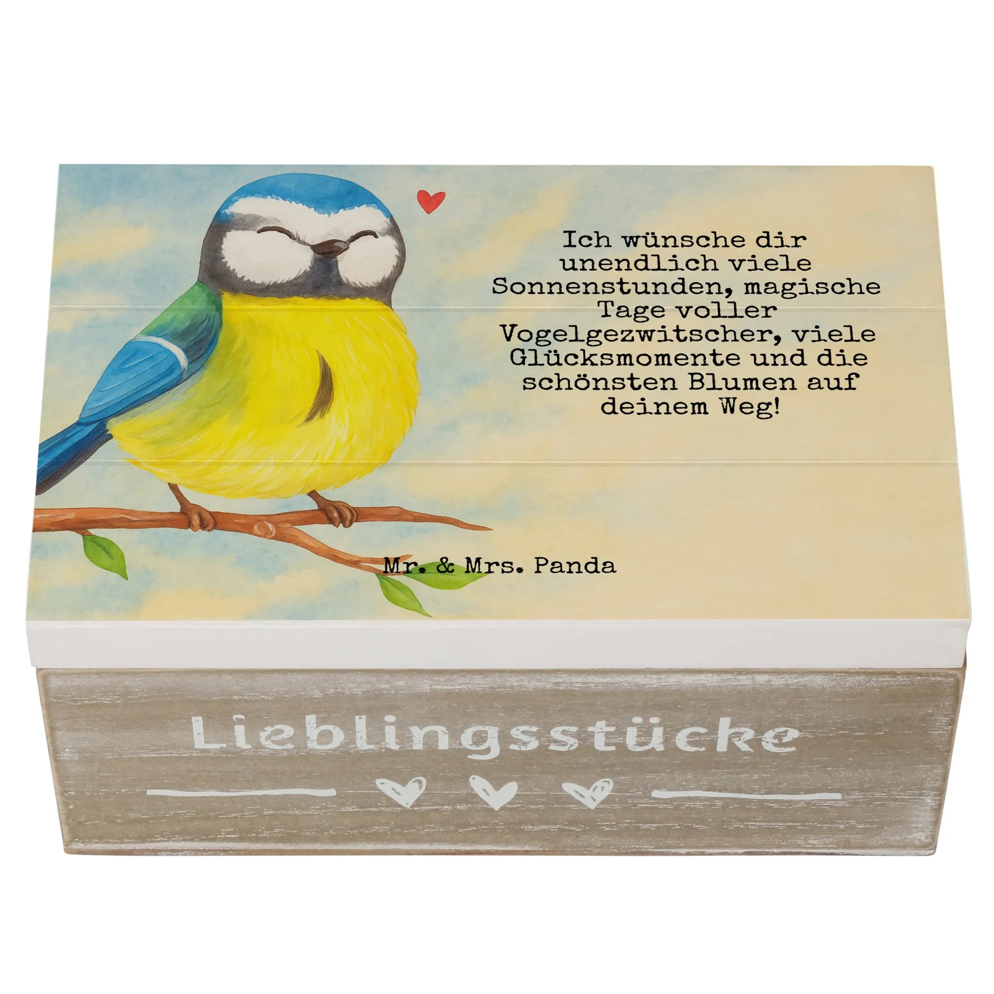 holztruhe Vogel Blaumeise Design - 22 x 15 cm - mit Spruch