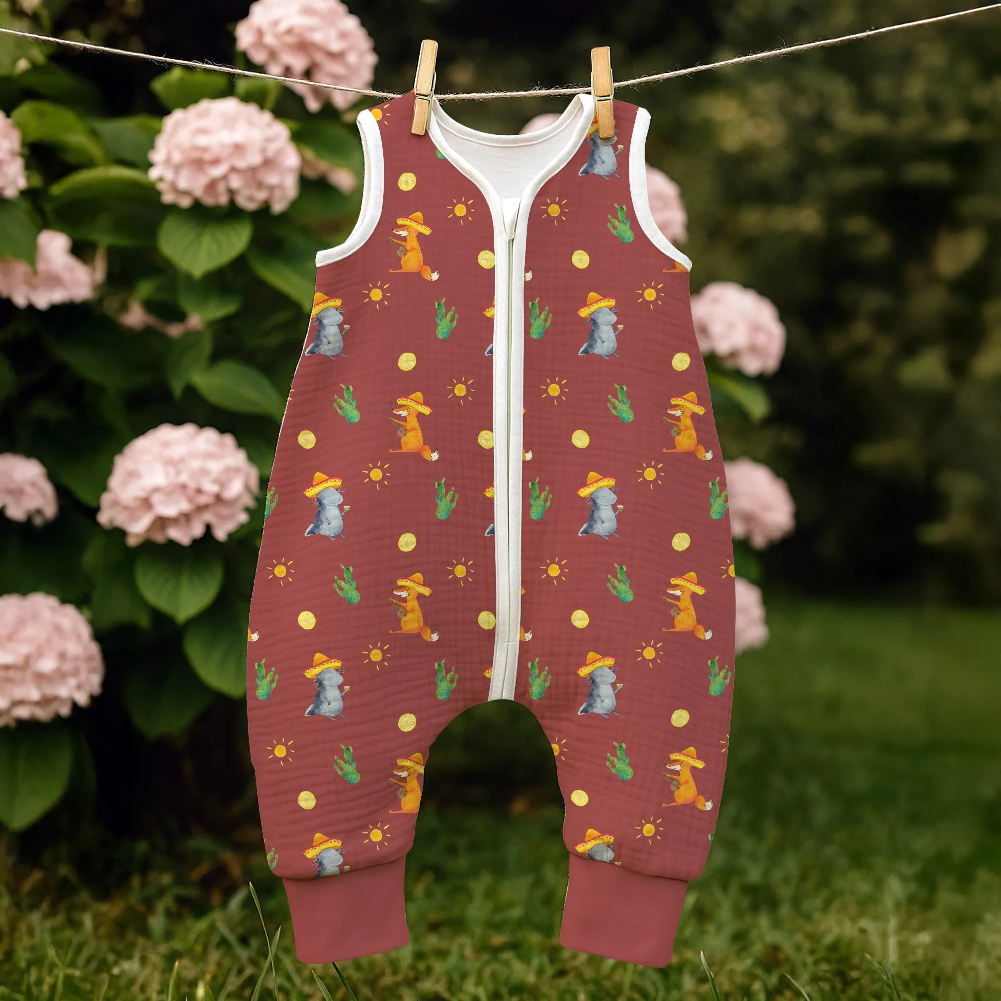 🐼 Bedruckter Schlafanzug/Overall mit niedlichen Motiven, handgefertigt und hautfreundlich.