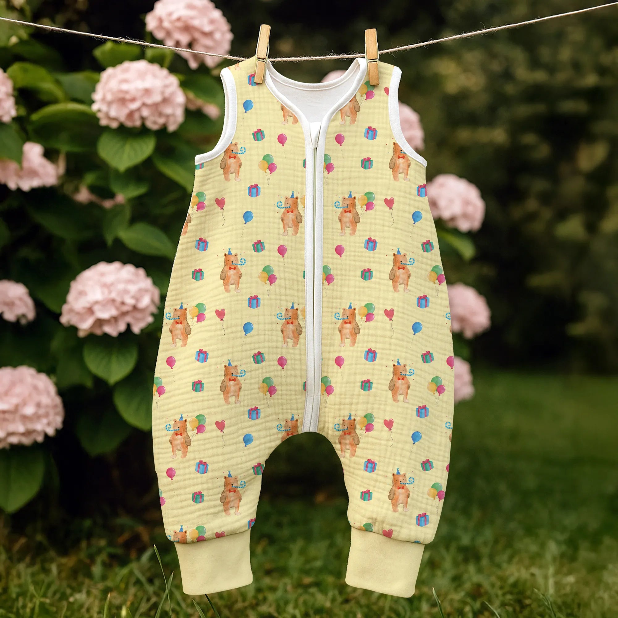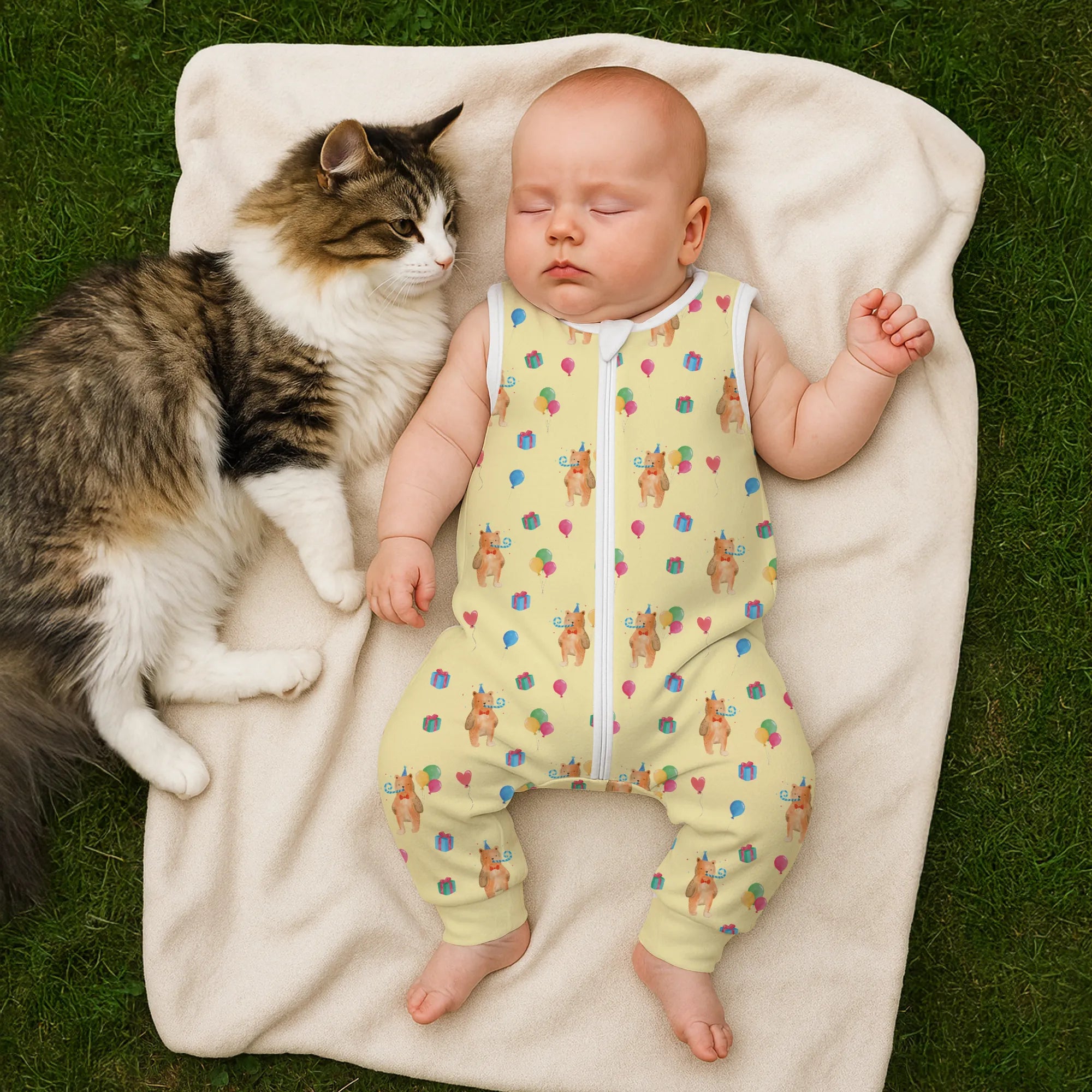 🐼 Kuschliger Baby Jumpsuit mit buntem Druck, atmungsaktivem Stoff und praktischem Reißverschluss.