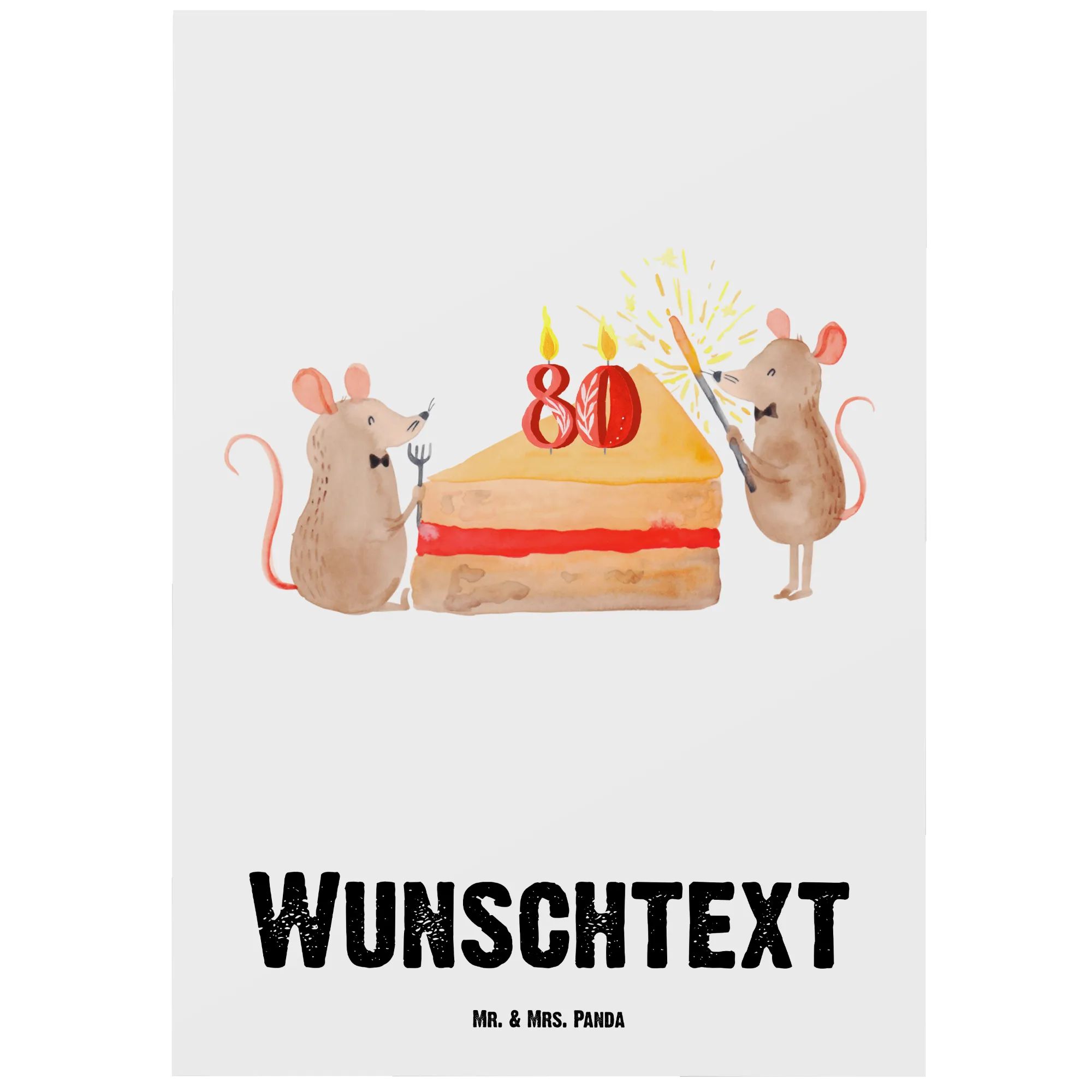 Karte mit Namen 80. Geburtstag Mäuse Kuchen – Mr. & Mrs. Panda