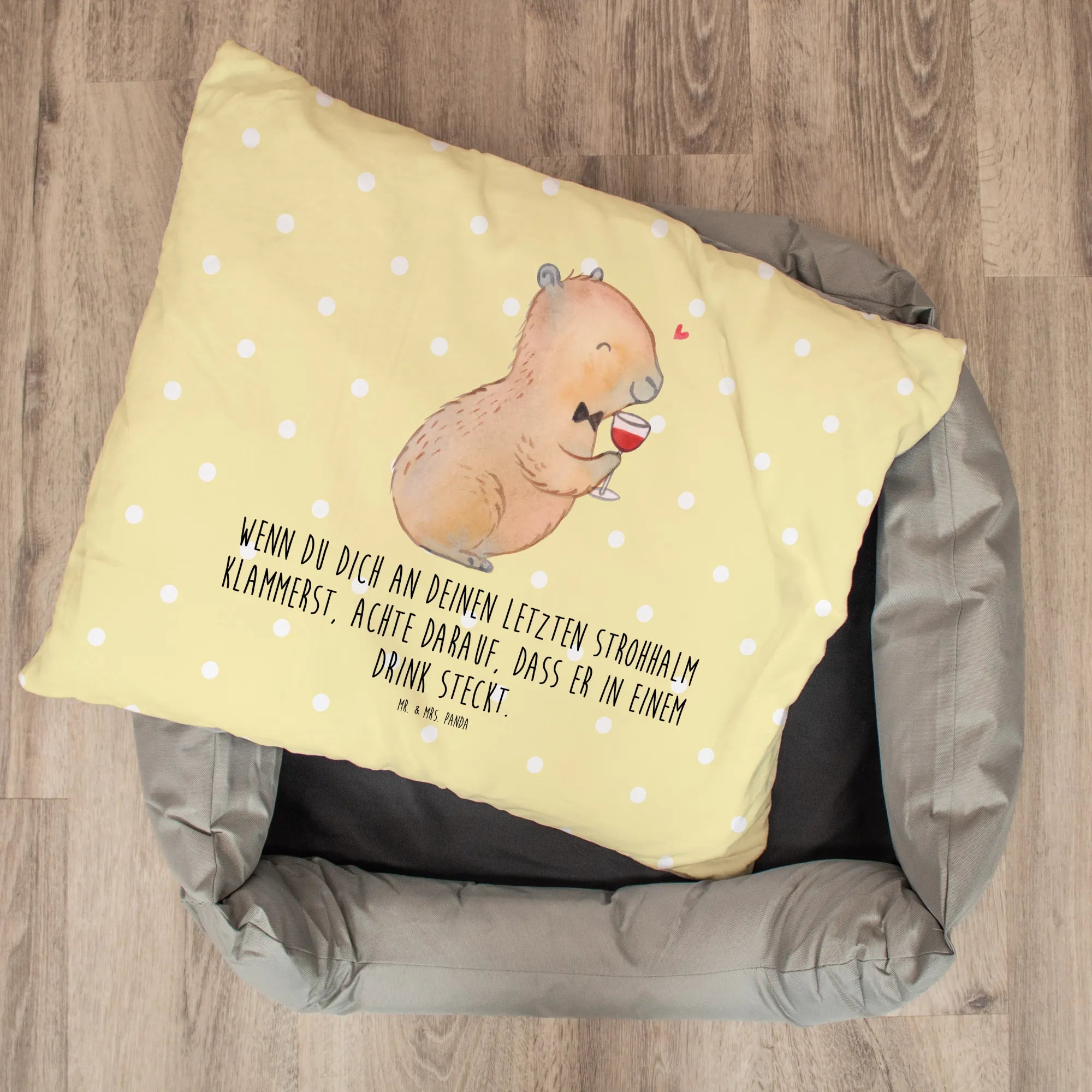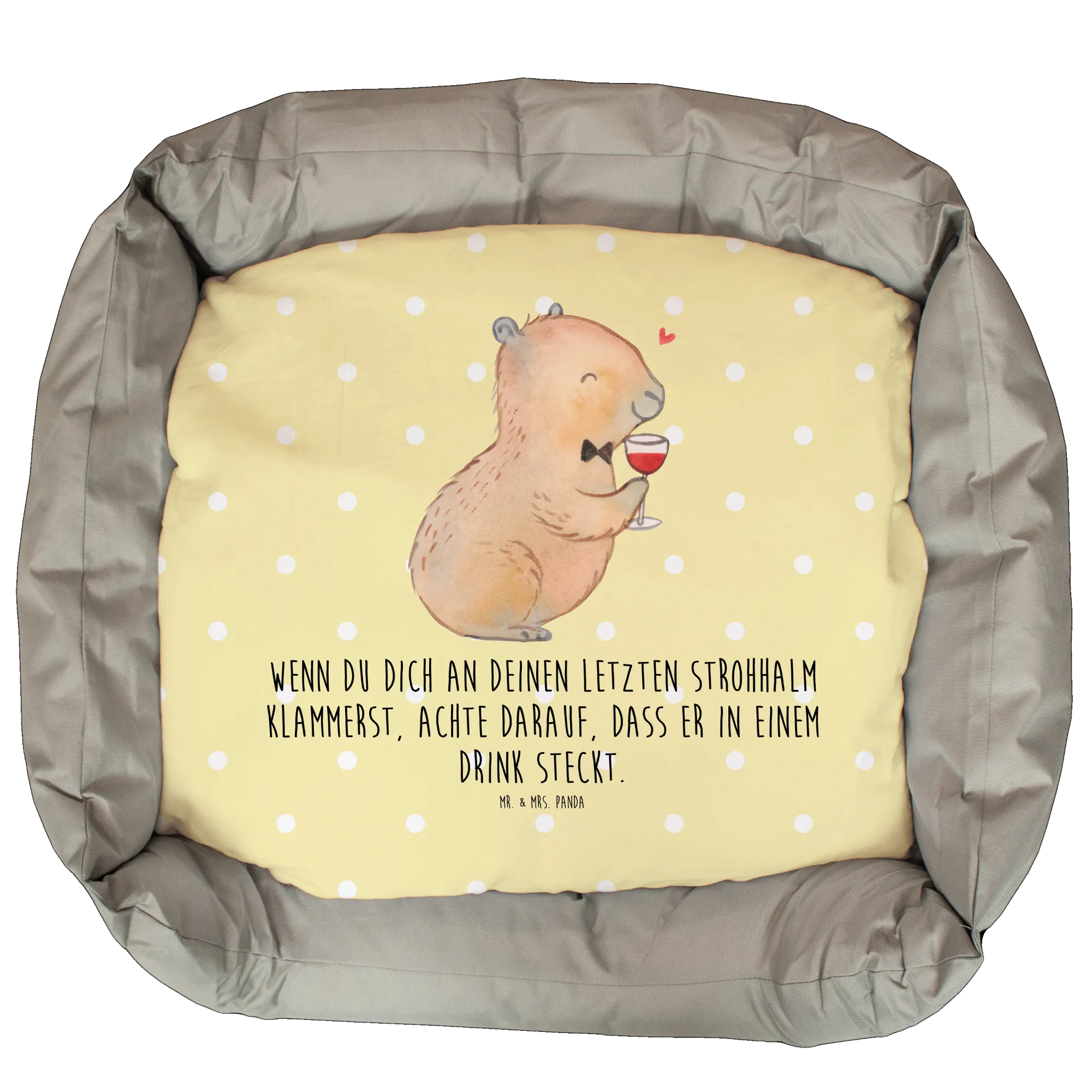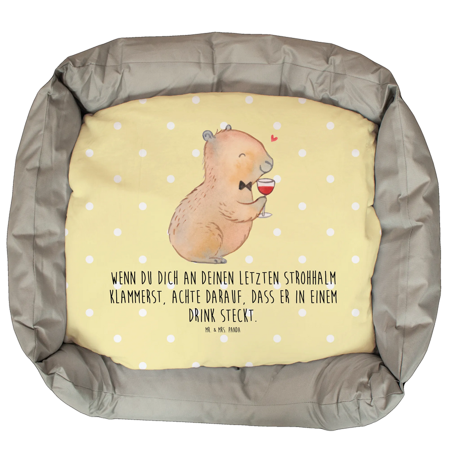 Doch nicht nur das Material überzeugt: Das Motiv zeigt ein charmantes, handgezeichnetes Capybara mit einer Weinflasche – perfekt für alle Weinliebhaber und für diejenigen, die Tiere und gute Laune schätzen. Dazu passt der witzige Spruch: "Wenn du dich an deinen letzten Strohhalm klammerst, achte darauf, dass er in einem Drink steckt." Dieser Spruch zaubert nicht nur deiner Katze ein Lächeln ins Gesicht, sondern auch dir, wenn du dein Zuhause mit diesem liebevollen Design verzauberst.
